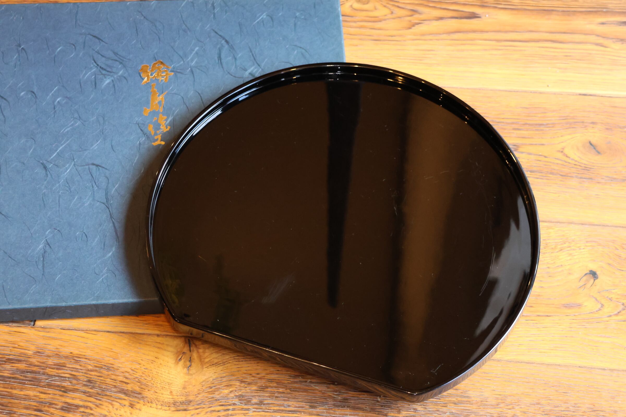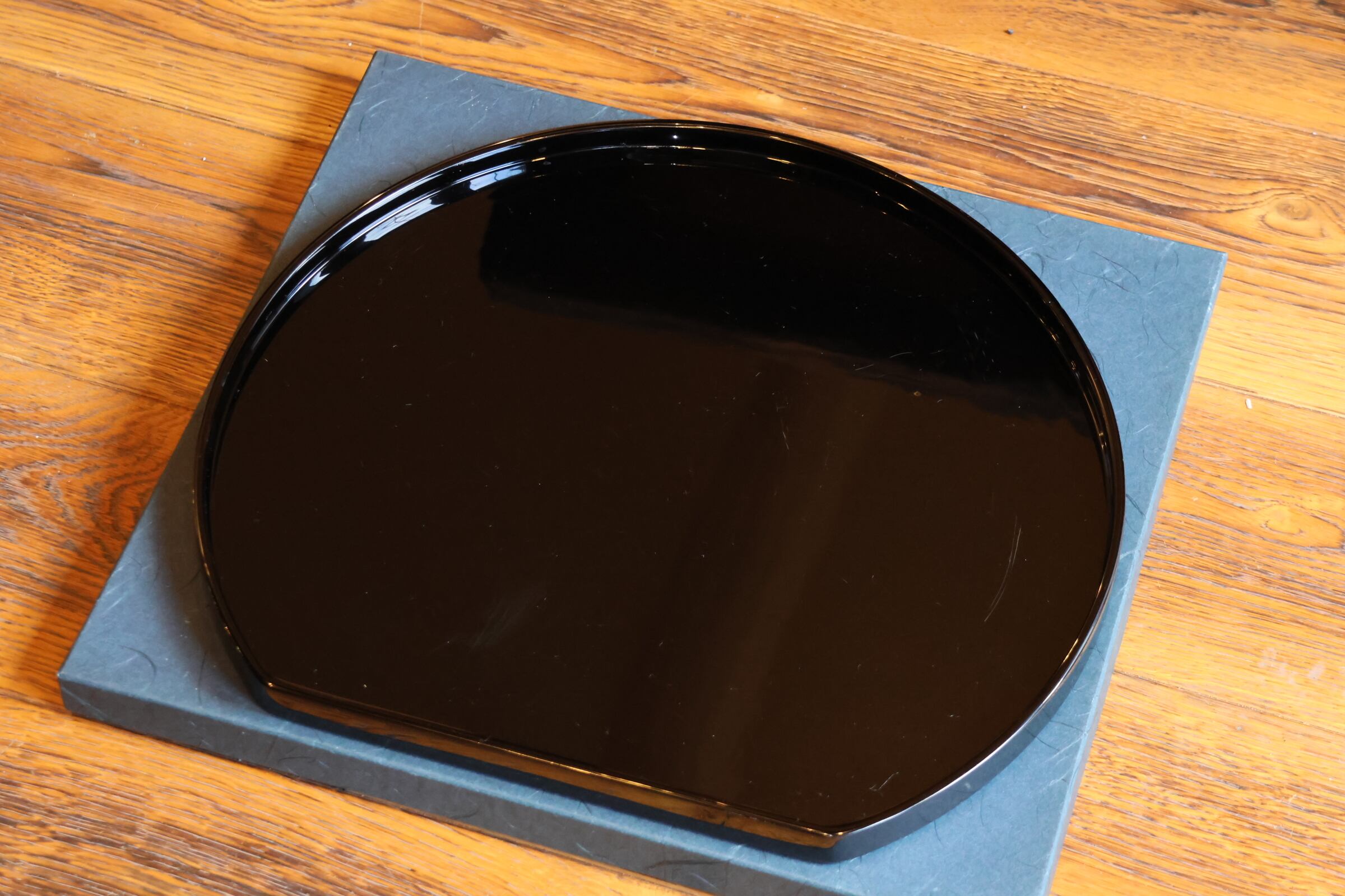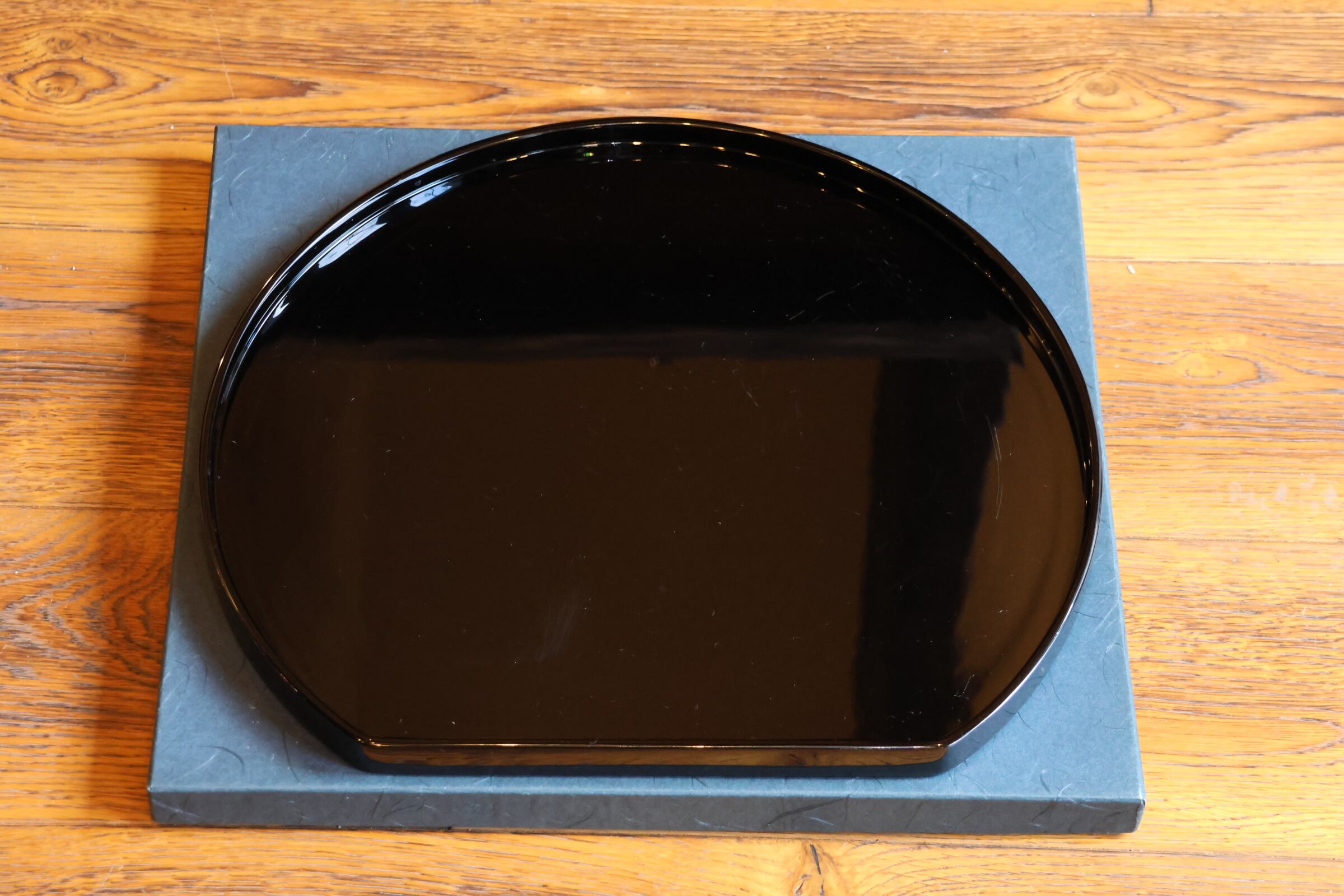 黒塗で全体がつやんとして、半月の形が食卓がに並べると優雅な雰囲気になります♪