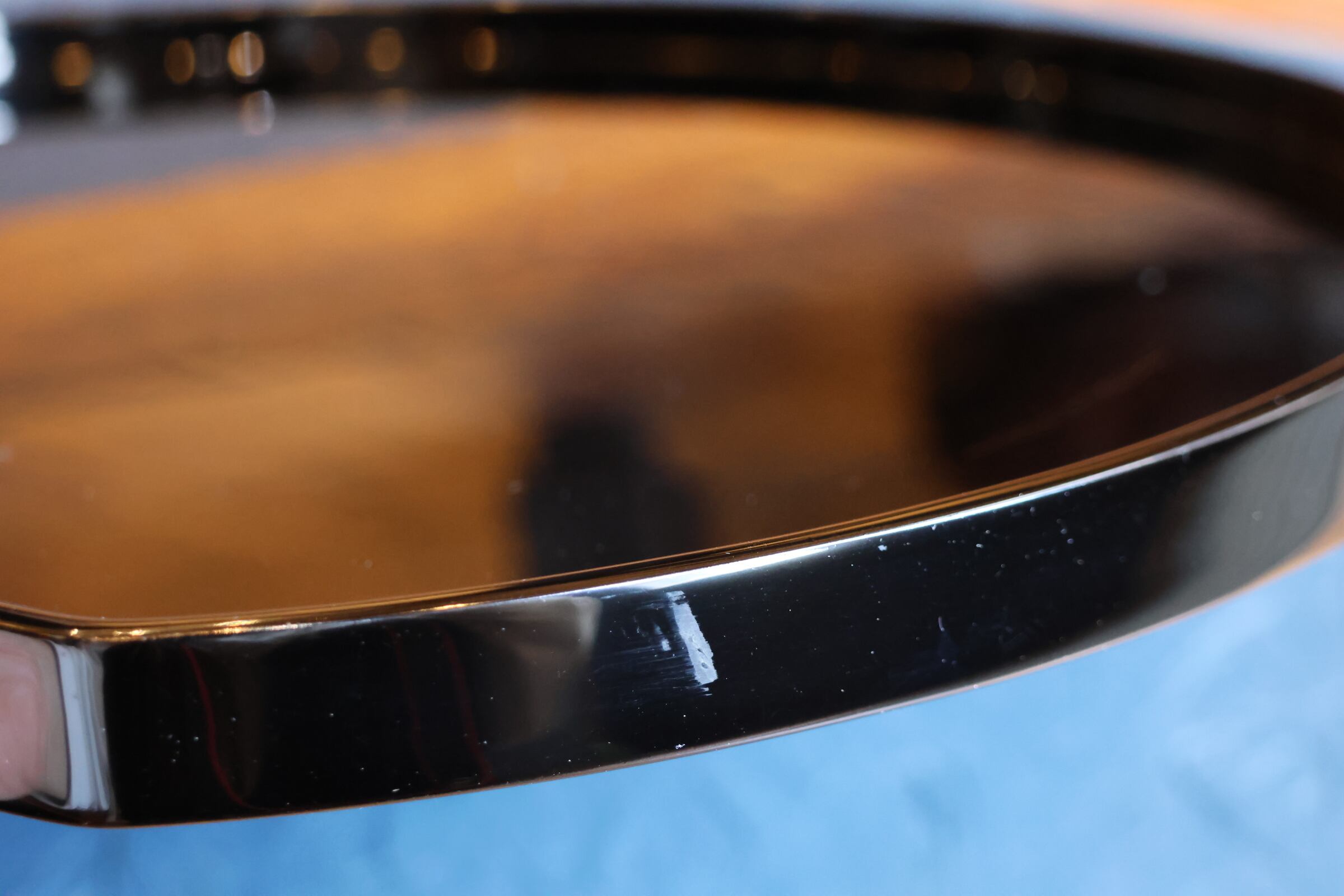 大きな漆の剥がれは見られませんが、経年によるスレ、使用感があるためアウトレット品だと思っていただけますと幸いです。