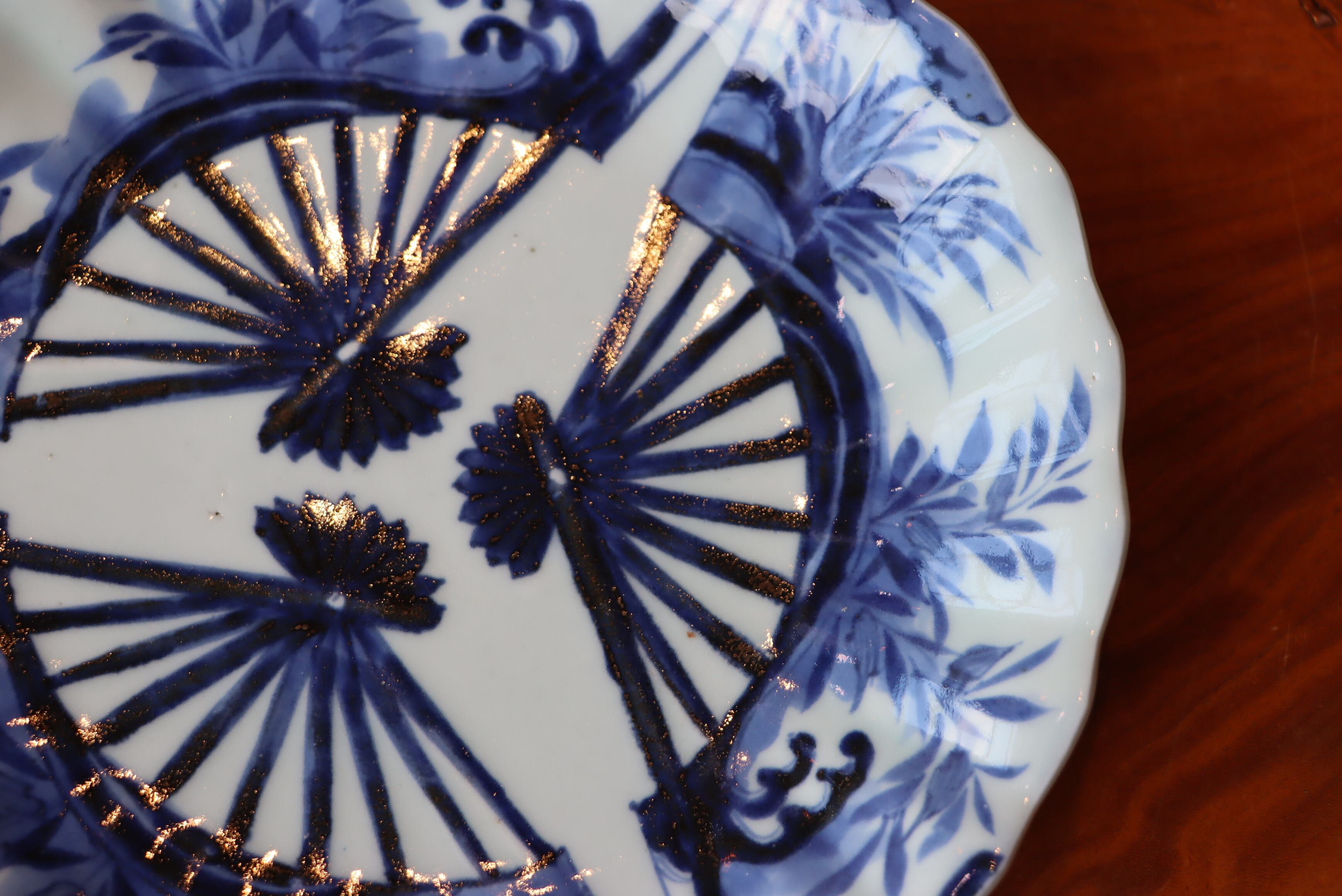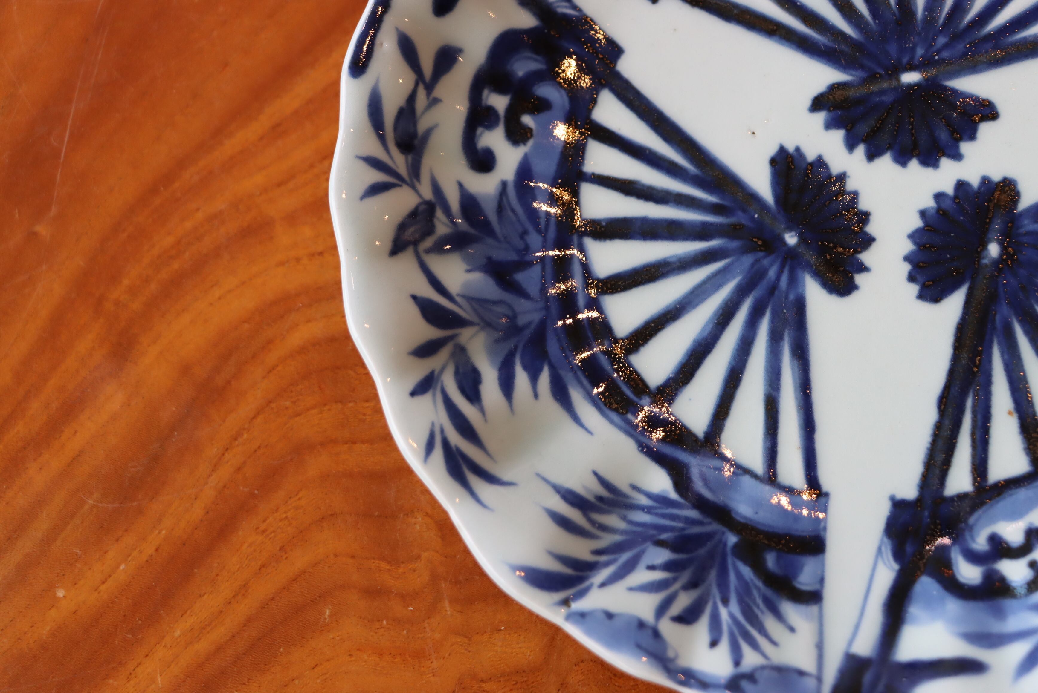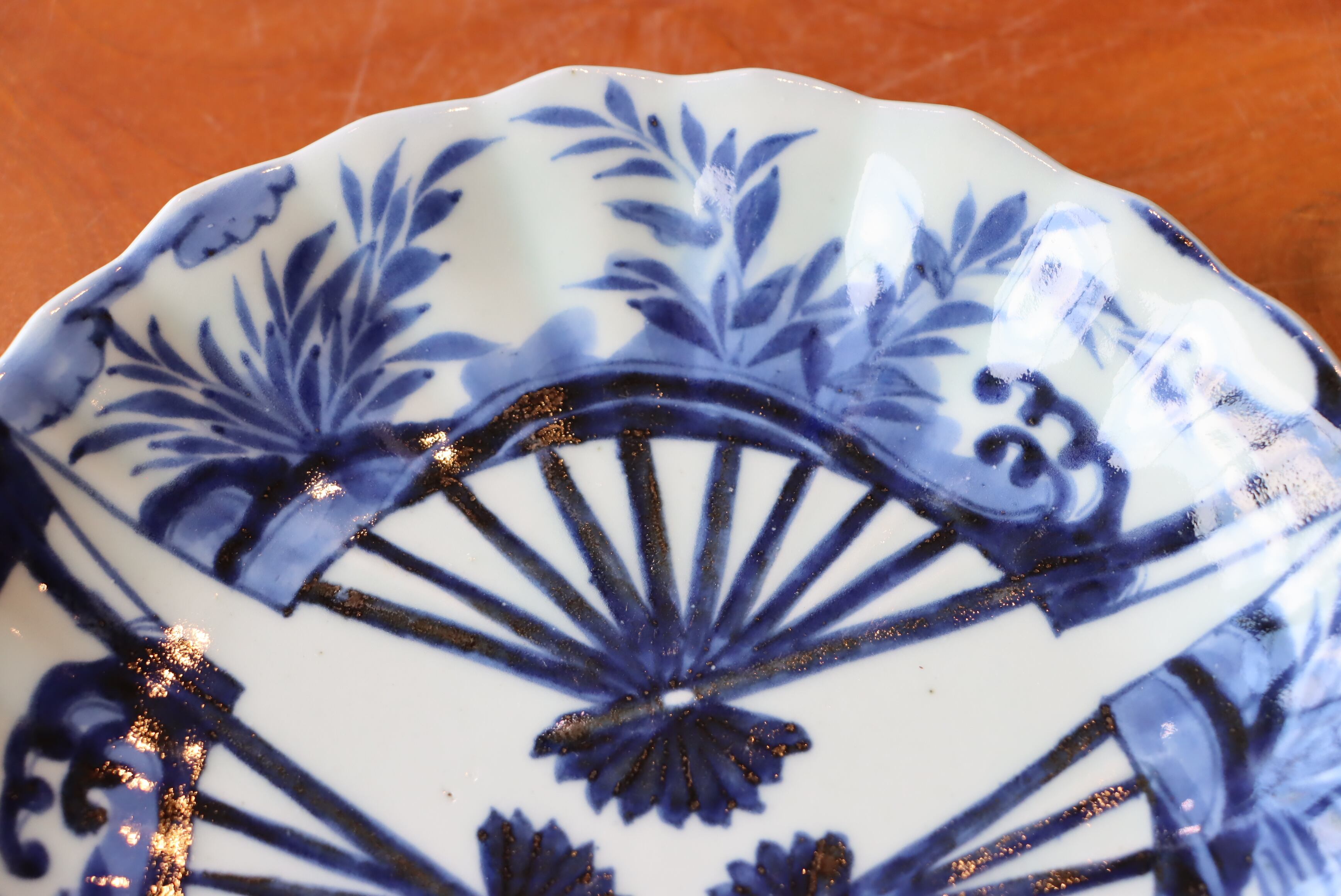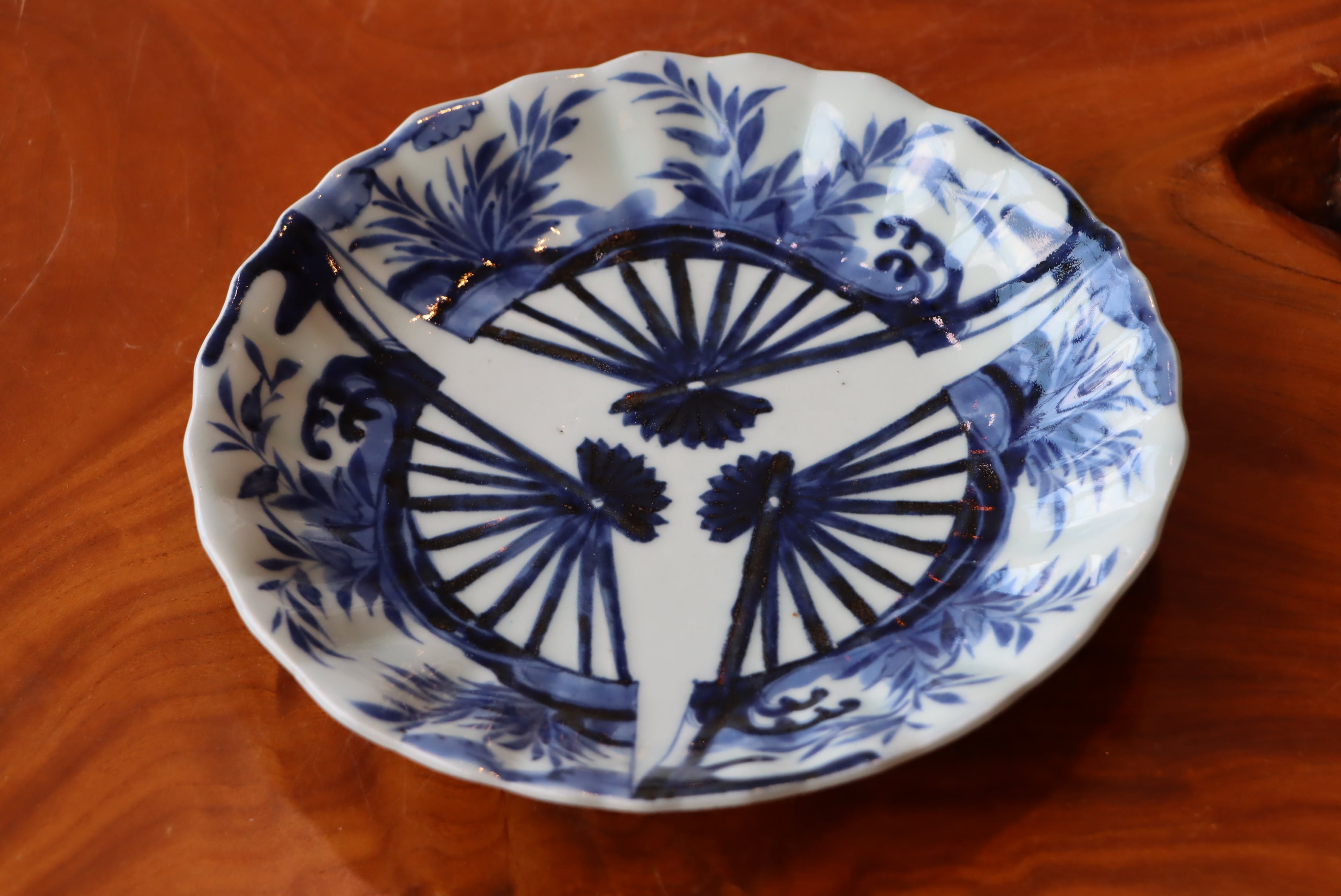 古伊万里 染付 扇面文 中皿 七寸 C/Old Imari medium size plate C