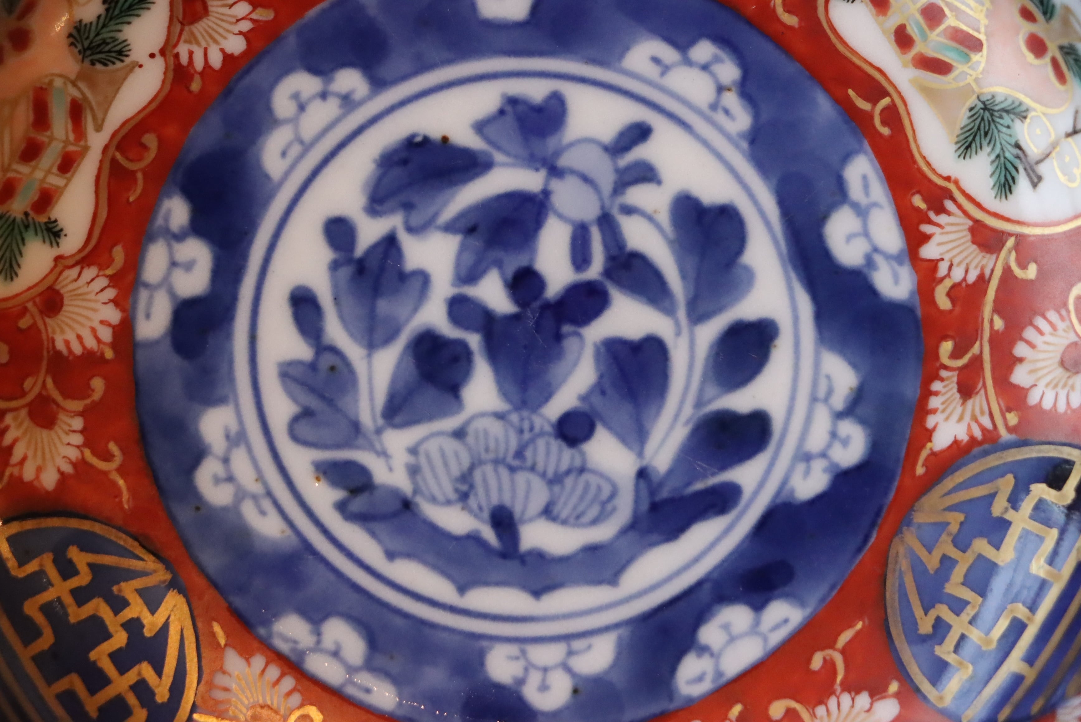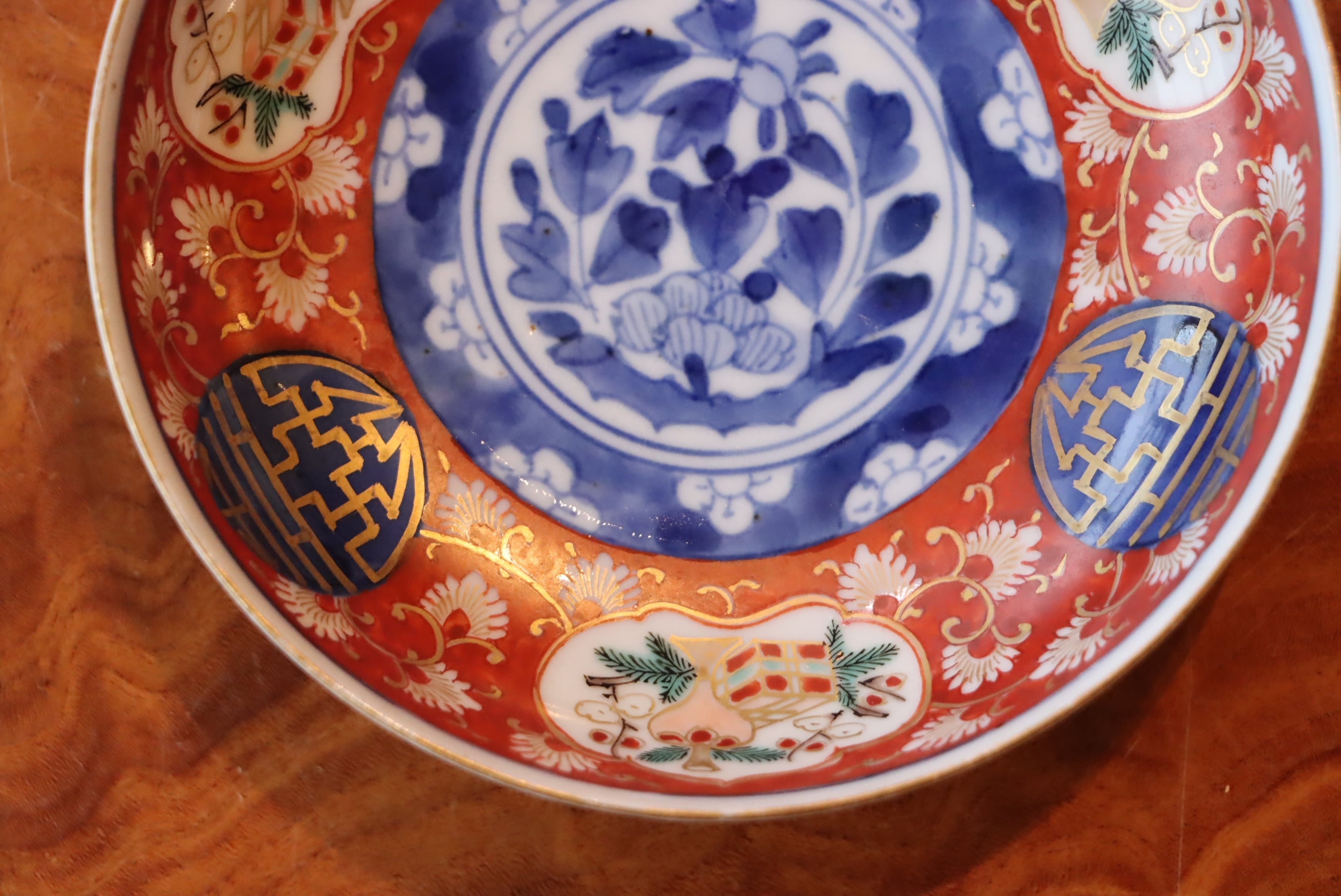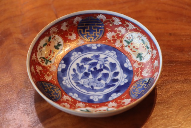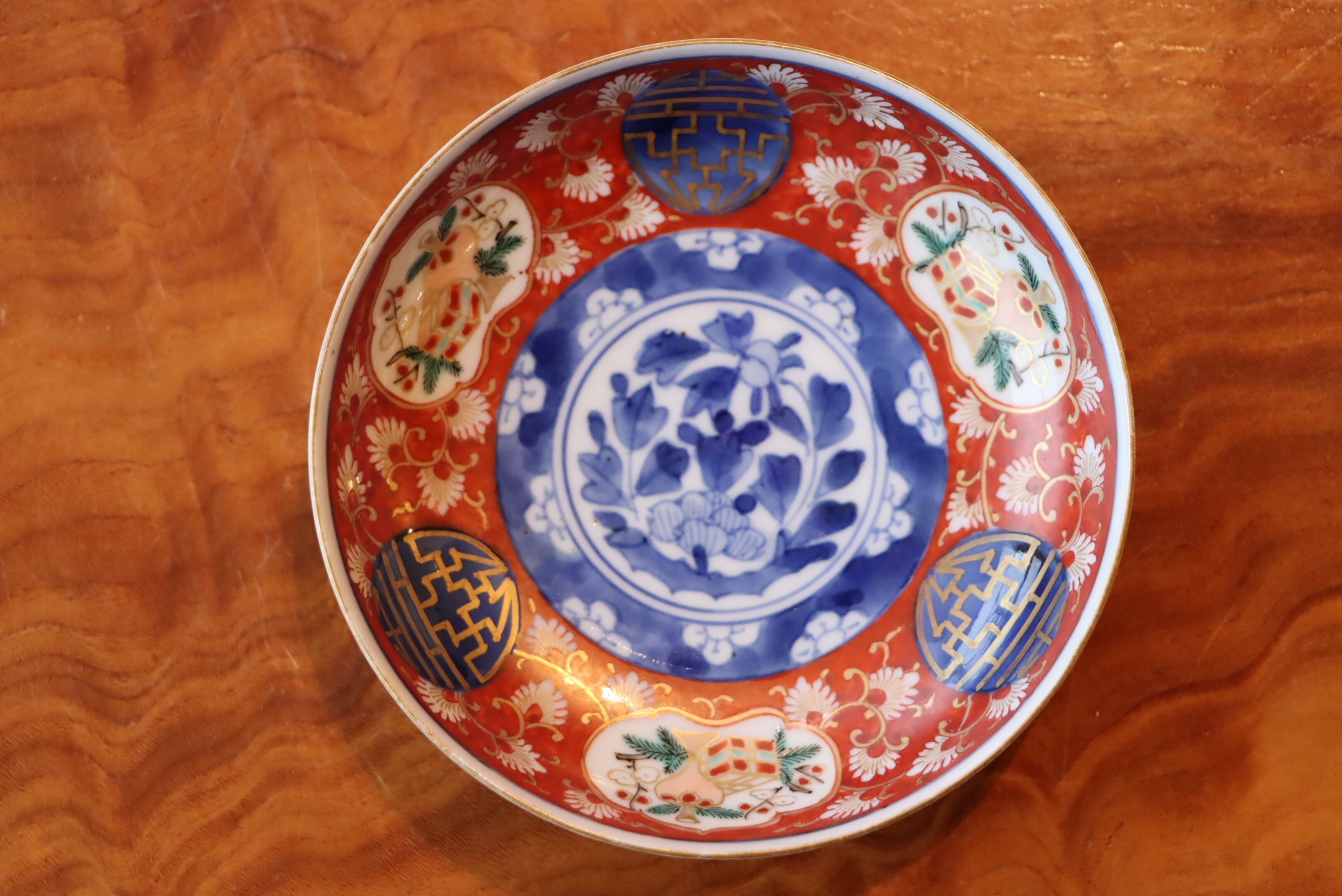 【Daisyo-ji Imari small plate with pine, plum and jar design in overglaze enamels.】