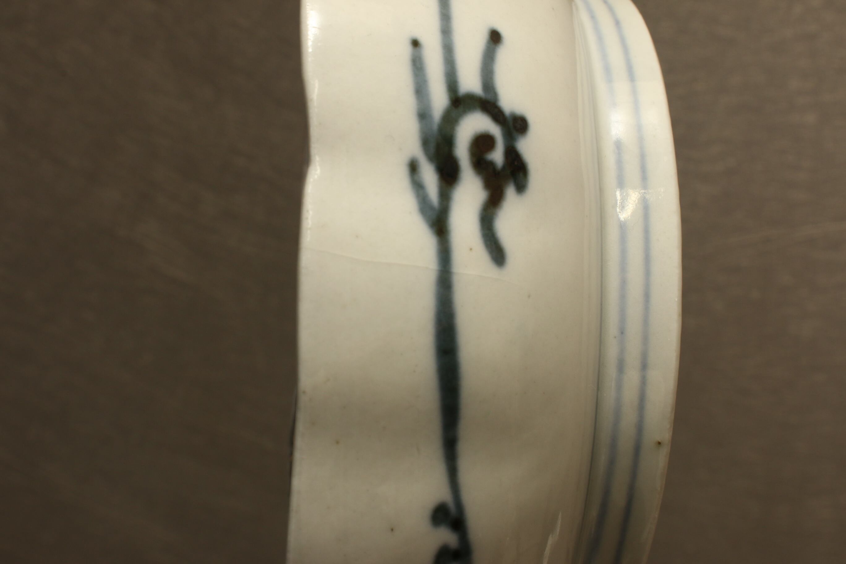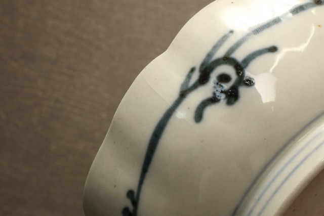 焼成時に窯の中でできる鉄分、くっつき、かまきず、ピンホール、経年による釉薬の薄れがございます。また、一枚一枚手描き、手作りですので器のサイズ(ミリ)、色味、描かれている文様の大きさなど個体差があり、ひとつとして同じものはございません。そういった時代感、個性をご理解いただき、楽しんでくだされば幸いです。電子レンジや食器洗い乾燥機のご使用はお控えください。