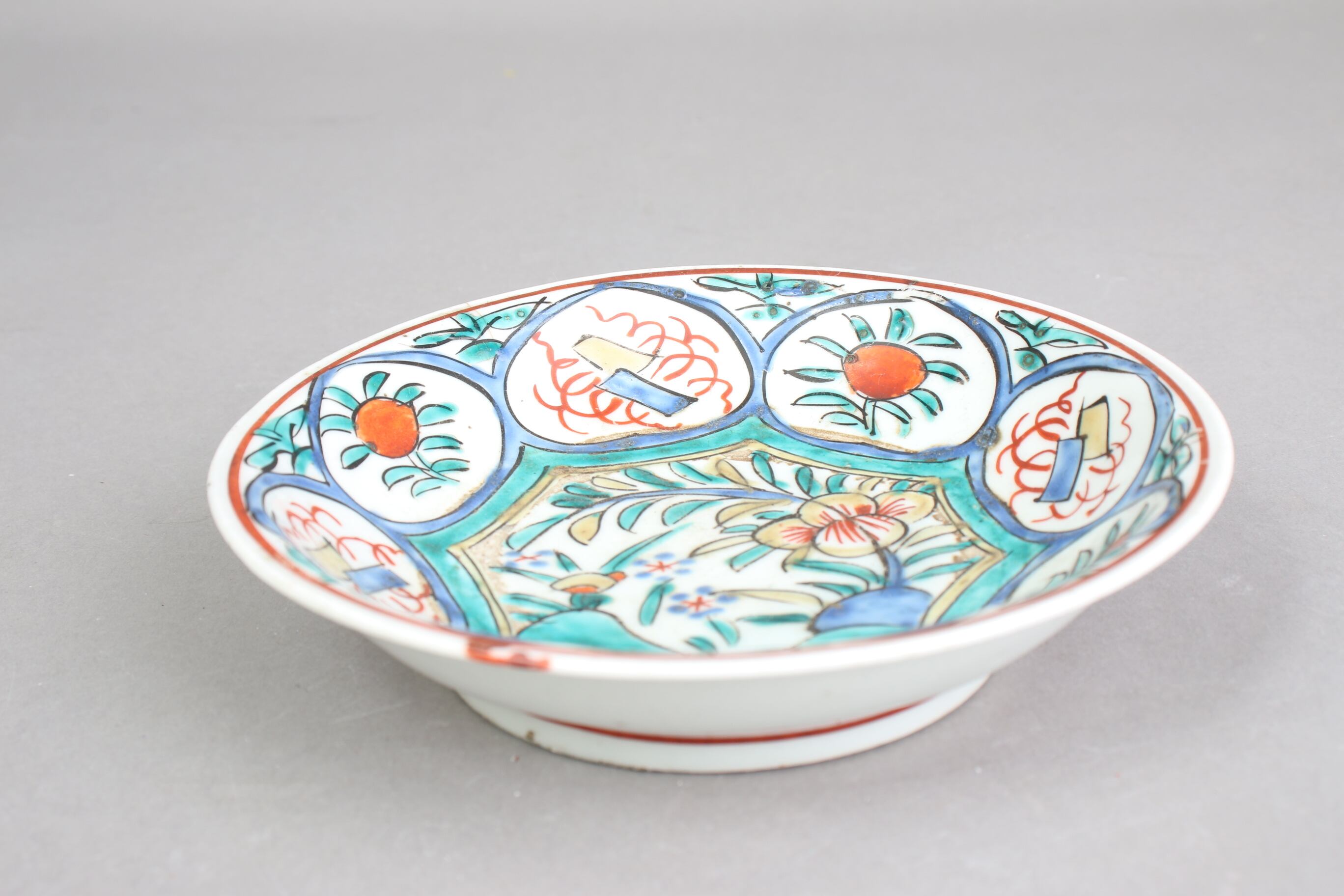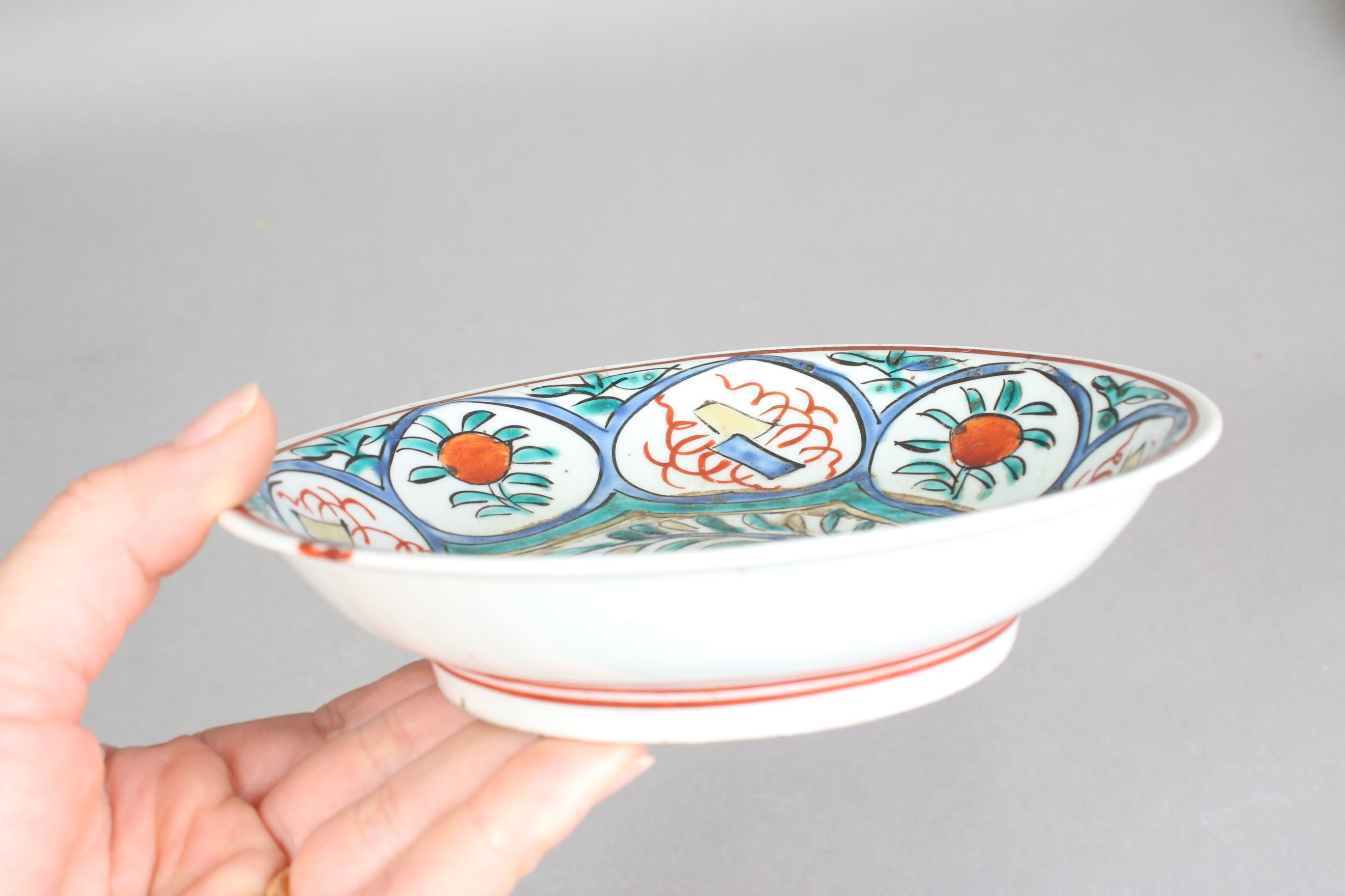 焼成時に窯の中でできる鉄分、くっつき、かまきず、ピンホール、経年による釉薬の薄れがございます。また、一枚一枚手描き、手作りですので器のサイズ(ミリ)、色味、描かれている文様の大きさなど個体差があり、ひとつとして同じものはございません。そういった時代感、個性をご理解いただき、楽しんでくだされば幸いです。電子レンジや食器洗い乾燥機のご使用はお控えください。