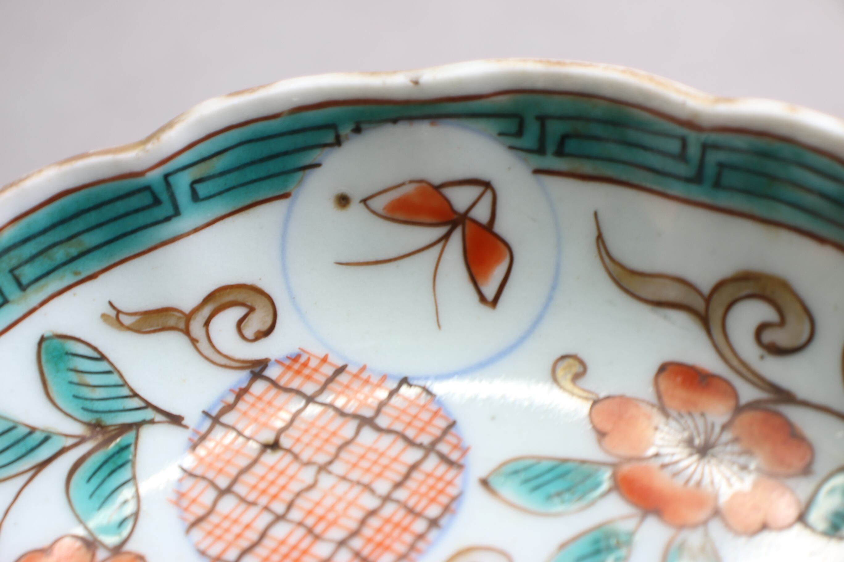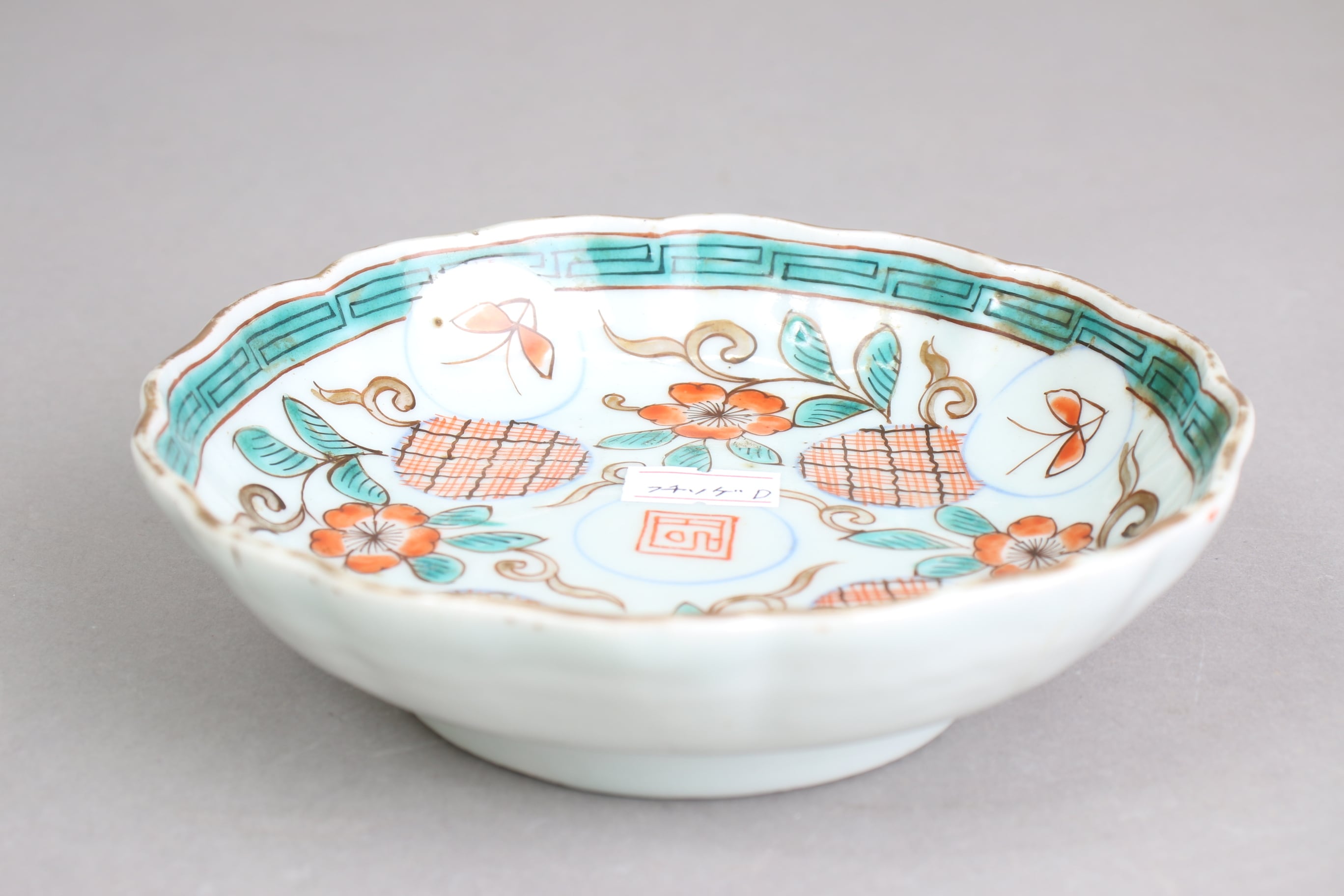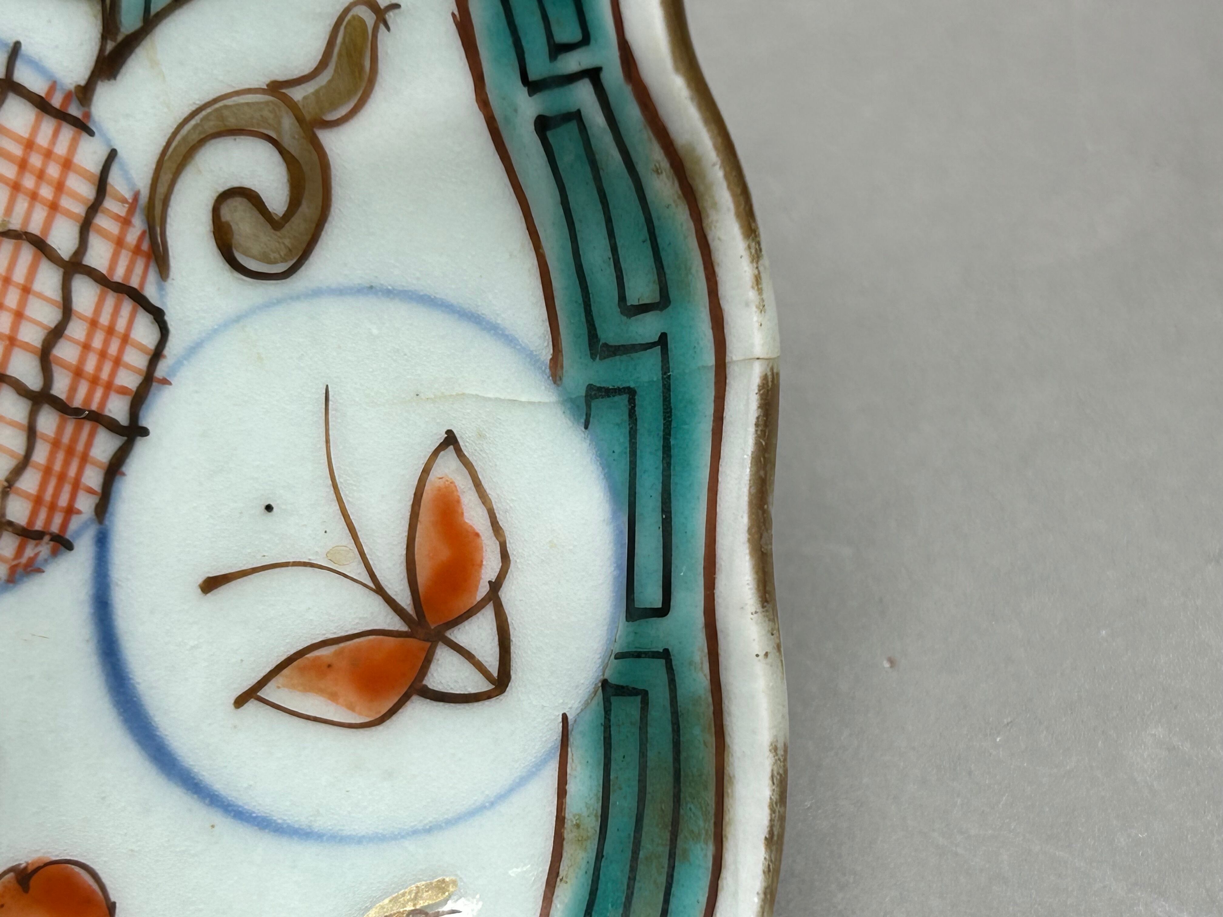 ニュウ 縁ソゲ 伊万里焼 色絵 花蝶文 膾皿小 D