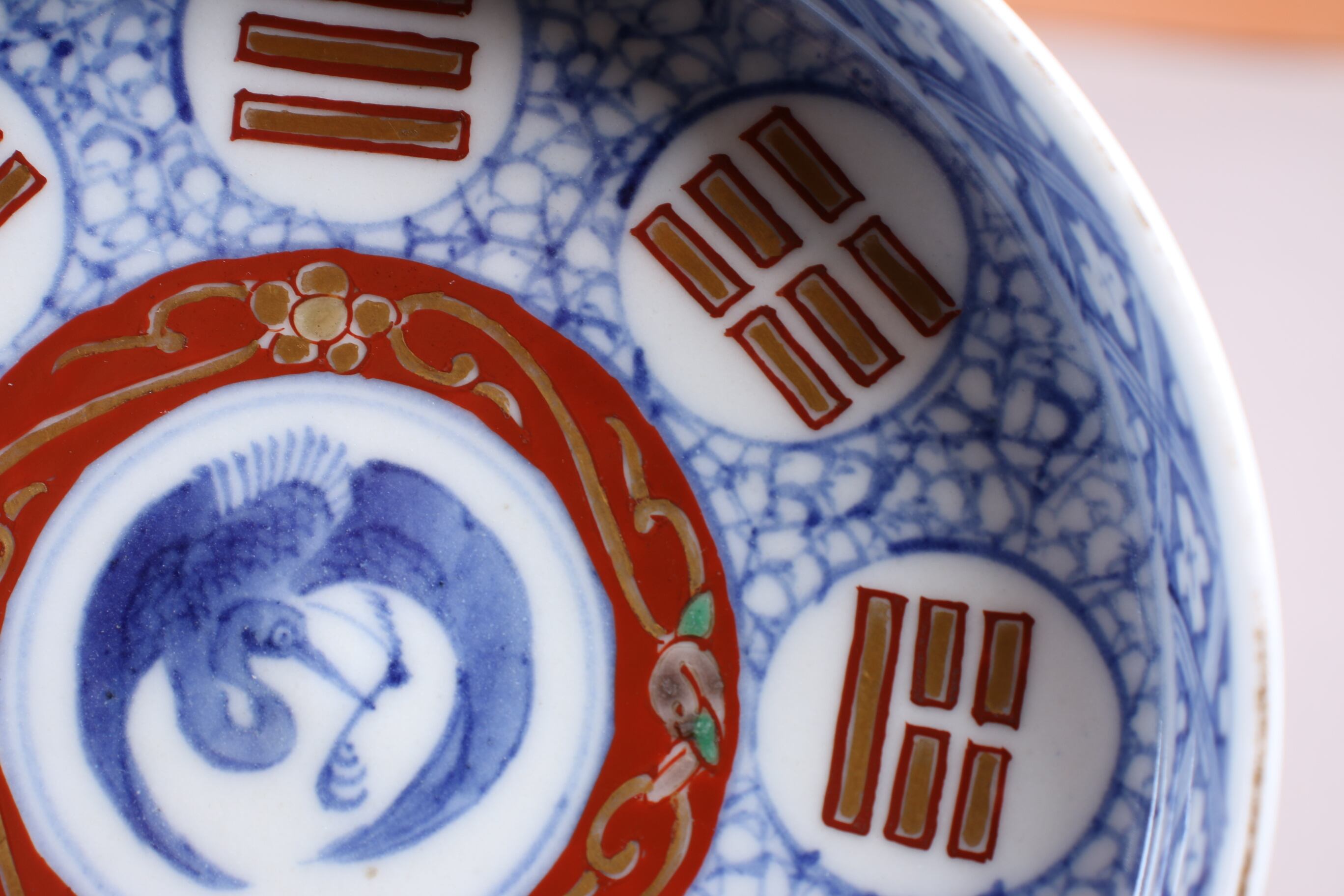 焼成時に窯の中でできる鉄分、くっつき、かまきず、ピンホール、経年による釉薬の薄れがございます。また、一枚一枚手描き、手作りですので器のサイズ(ミリ)、色味、描かれている文様の大きさなど個体差があり、ひとつとして同じものはございません。そういった時代感、個性をご理解いただき、楽しんでくだされば幸いです。電子レンジや食器洗い乾燥機のご使用はお控えください。