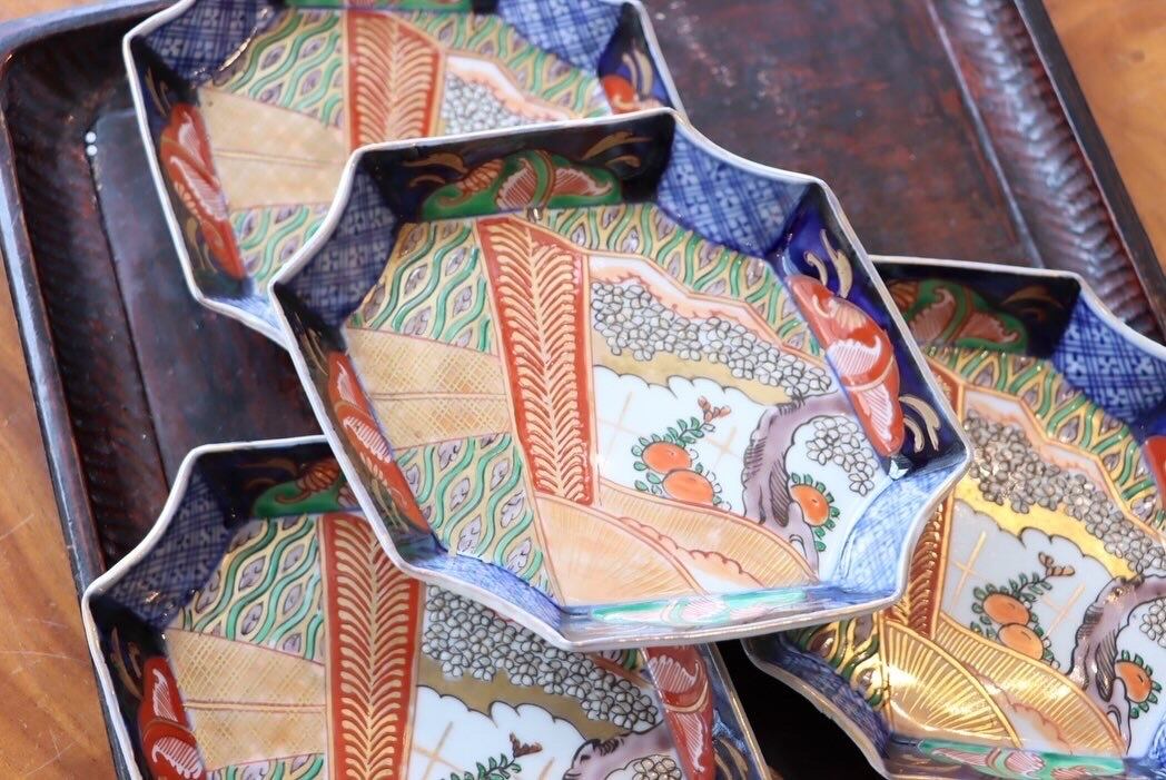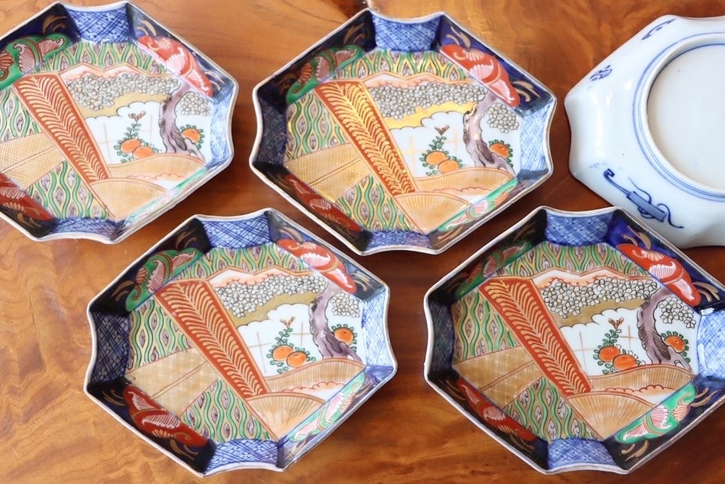 【Imari diamond shaped plate with flower and cloud design in overglaze enamels.】