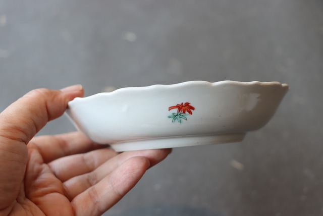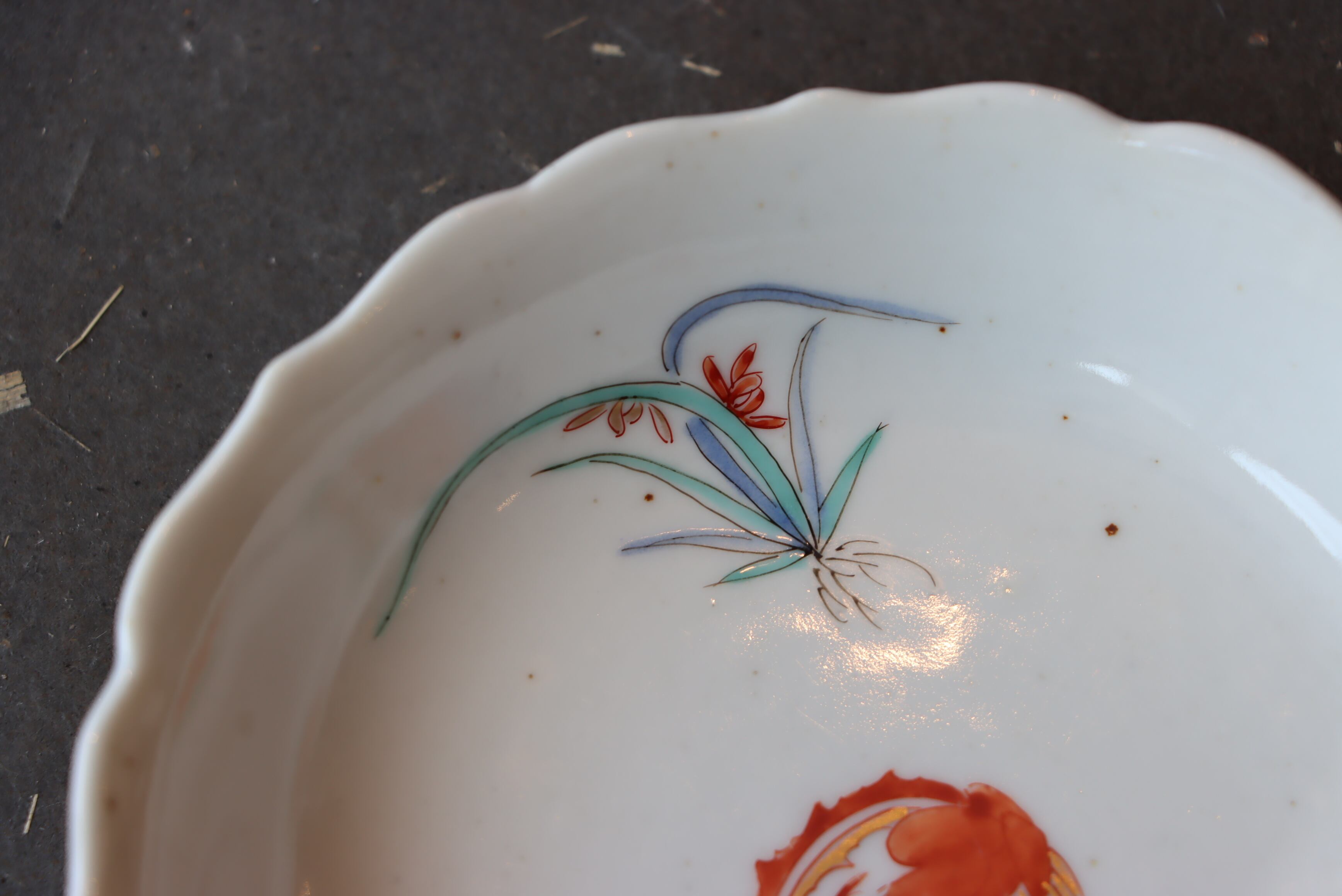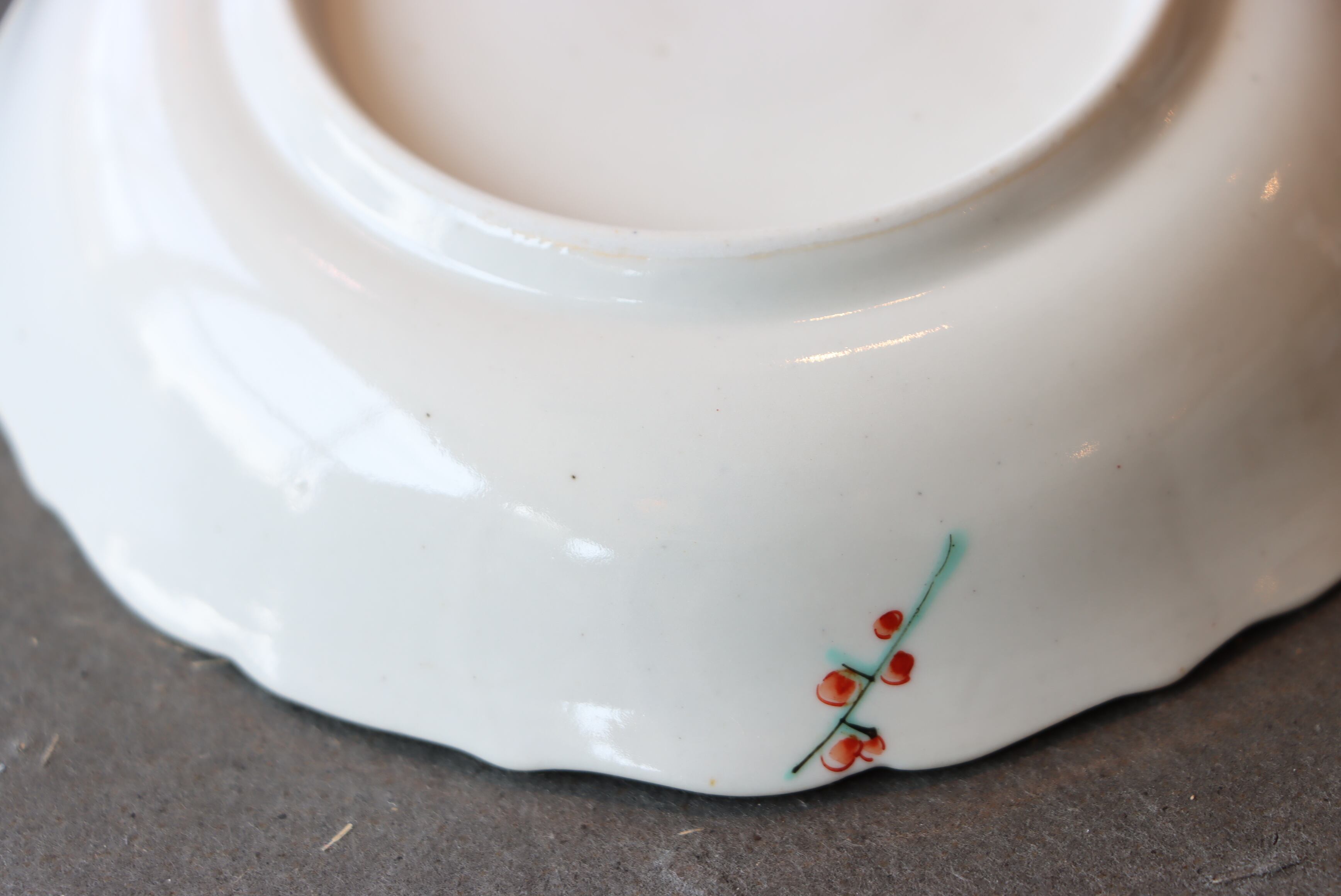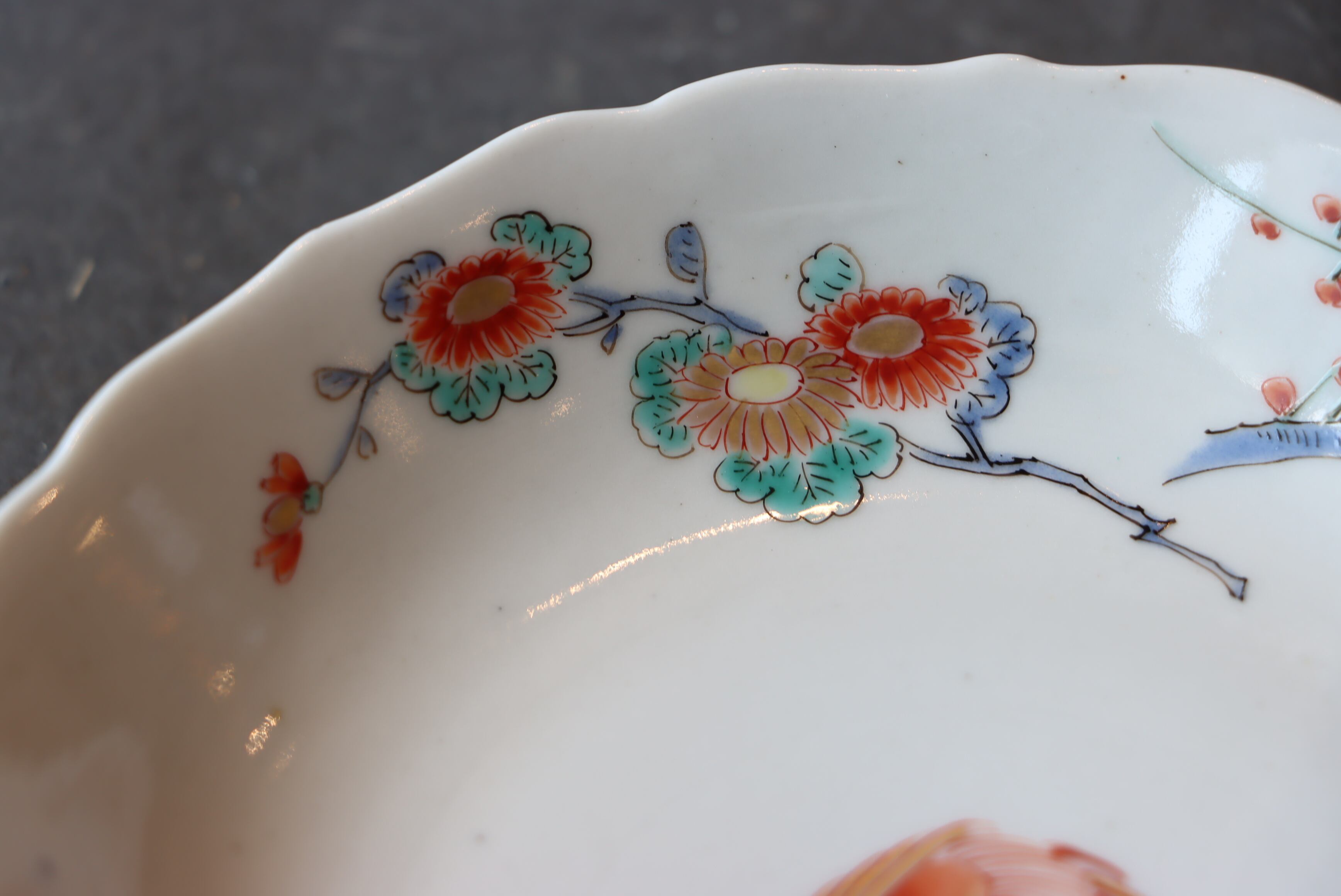 柿右衛門手 色絵 梅水仙菊鳳凰文 輪花 小皿/Kakiemon style small plate