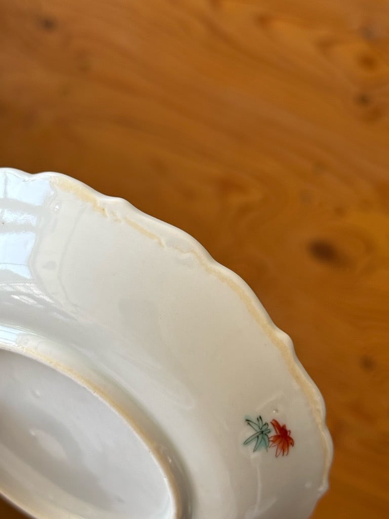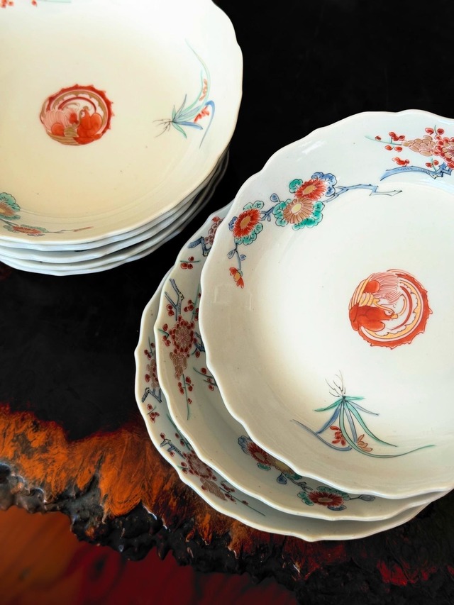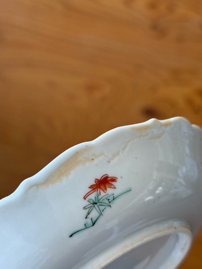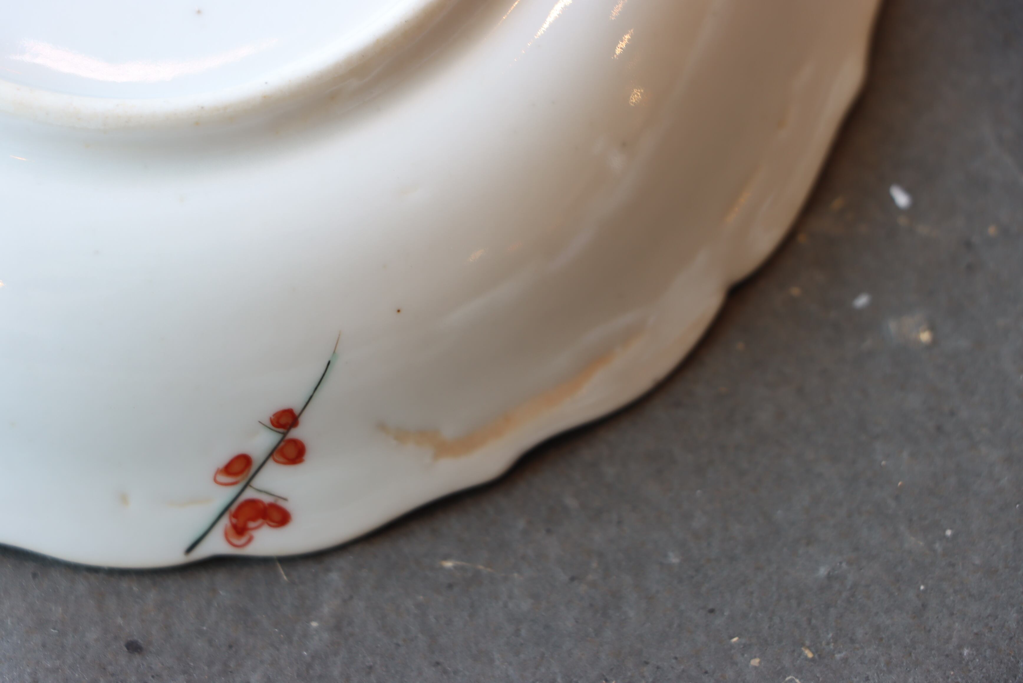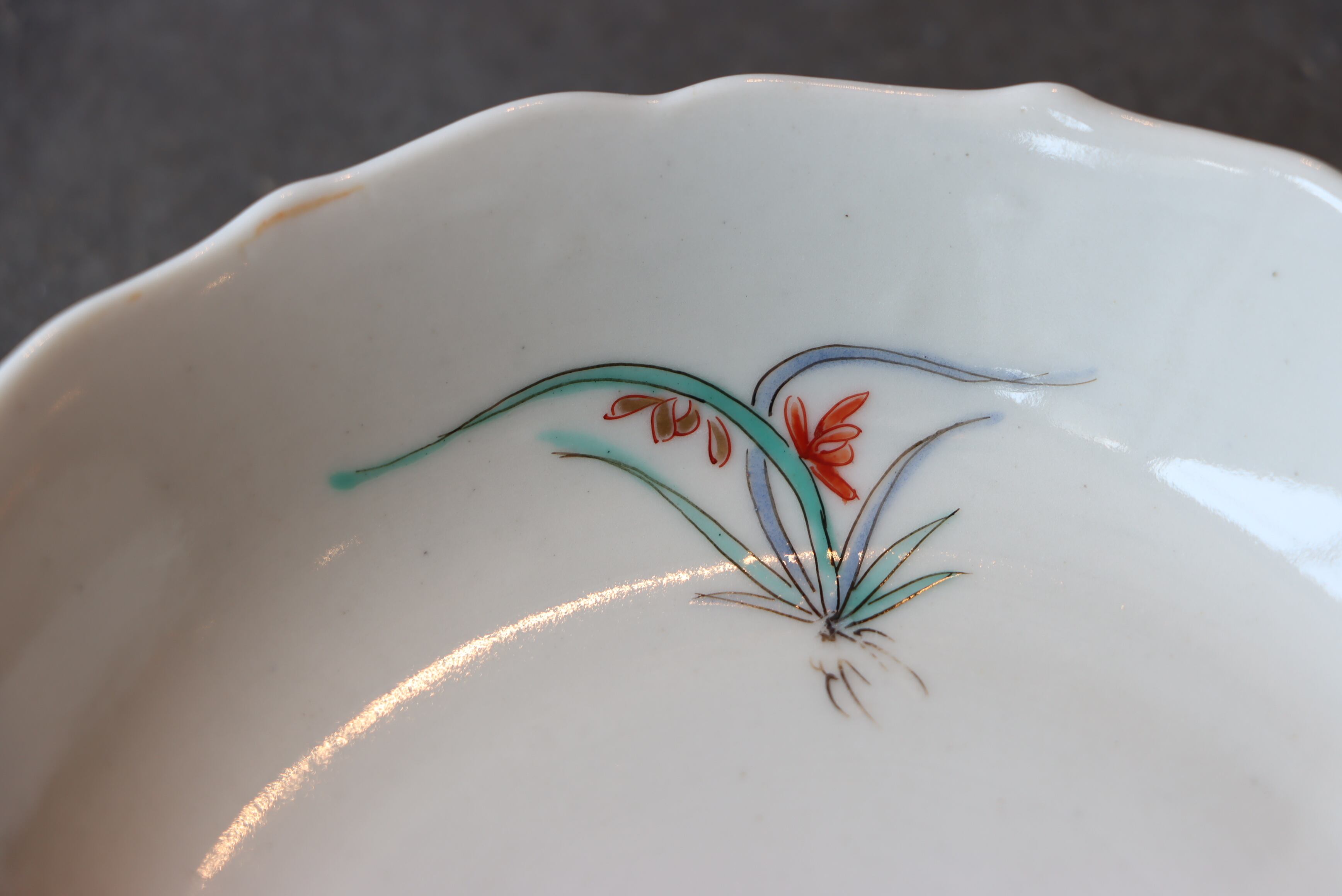 柿右衛門手 色絵 梅水仙菊鳳凰文 輪花 小皿/Kakiemon style small plate