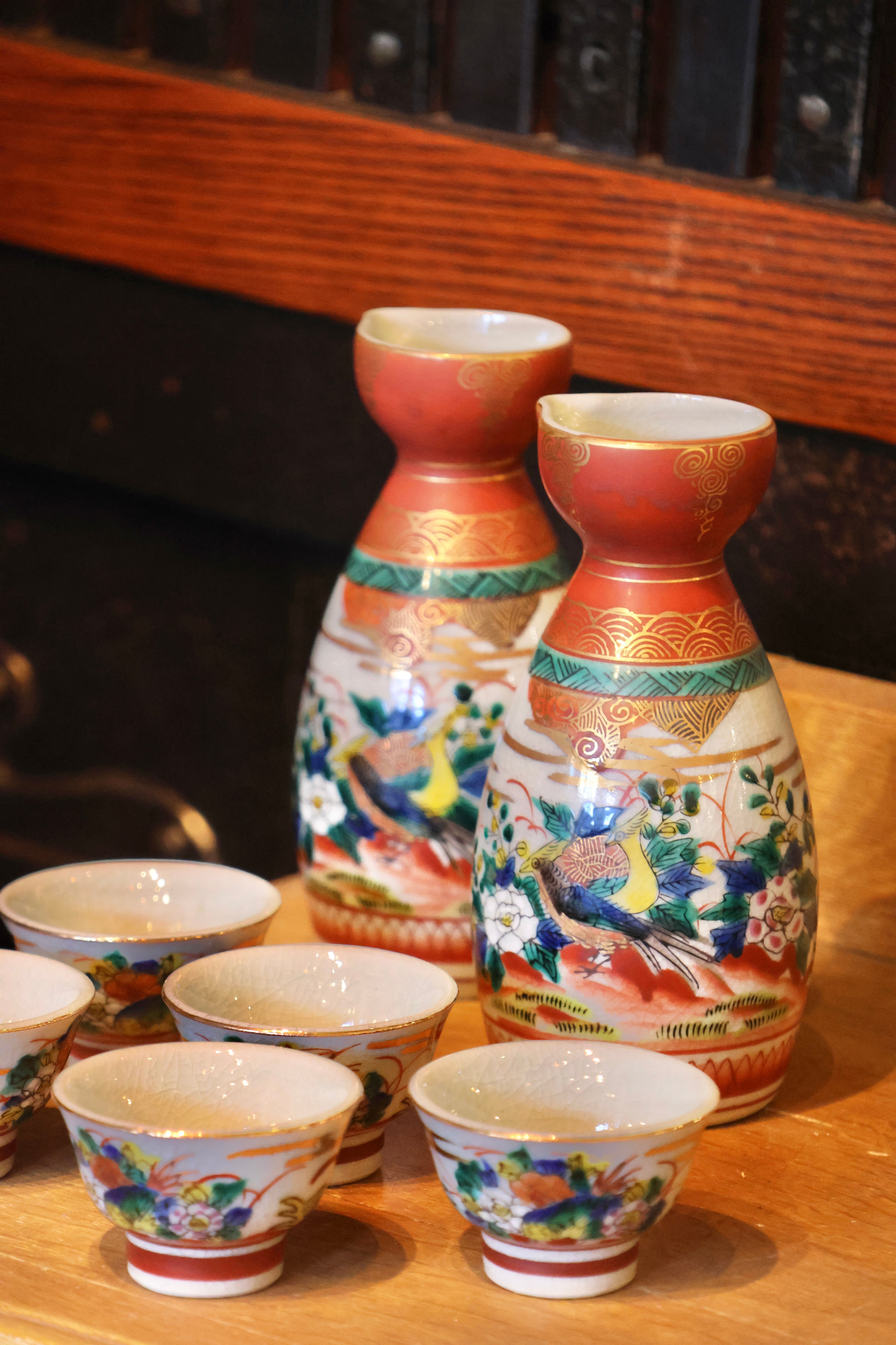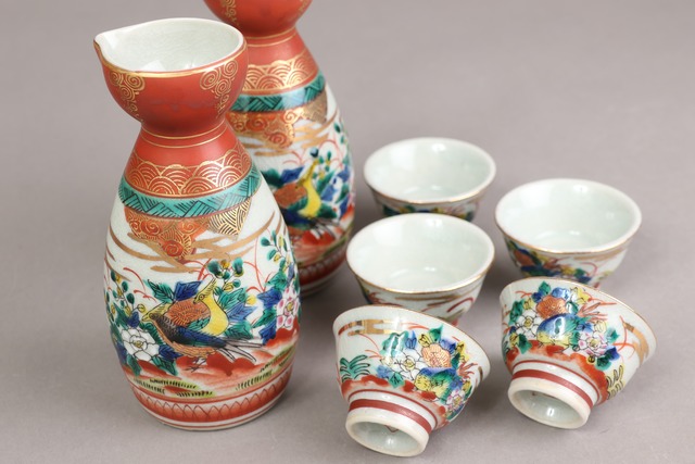 九谷焼 庄三手 花鳥文 酒器セット 徳利一対 猪口五客