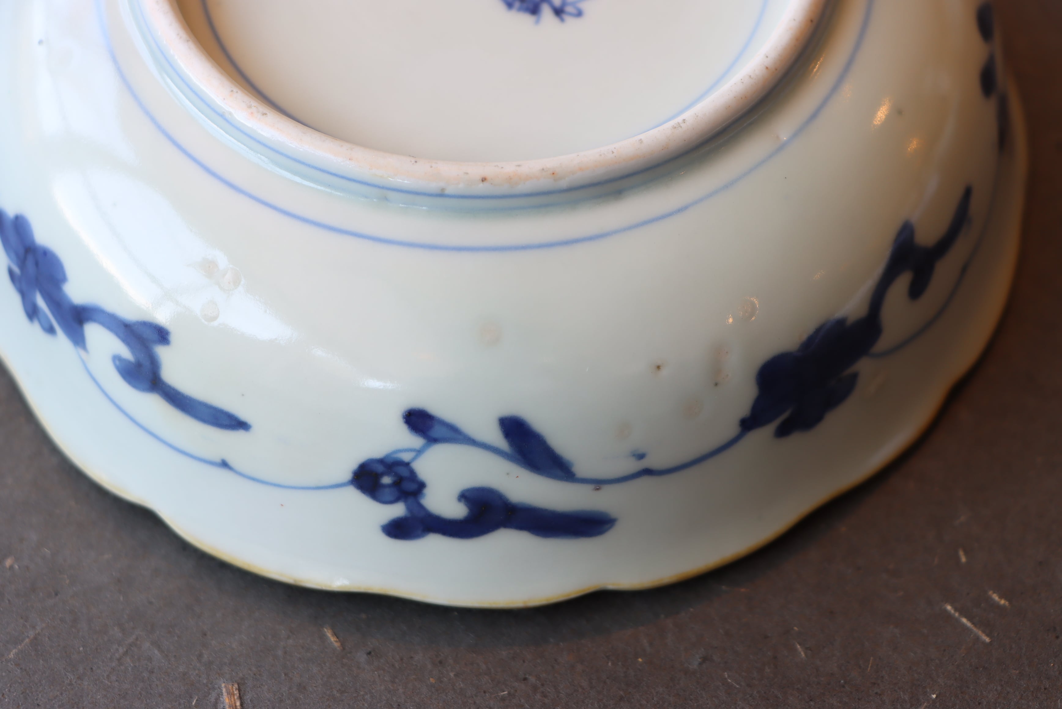 焼成時に窯の中でできる鉄分、くっつき、かまきず、ピンホール、経年による釉薬の薄れがございます。また、一枚一枚手描き、手作りですので器のサイズ(ミリ)、色味、描かれている文様の大きさなど個体差があり、ひとつとして同じものはございません。そういった時代感、個性をご理解いただき、楽しんでくだされば幸いです。電子レンジや食器洗い乾燥機のご使用はお控えください。