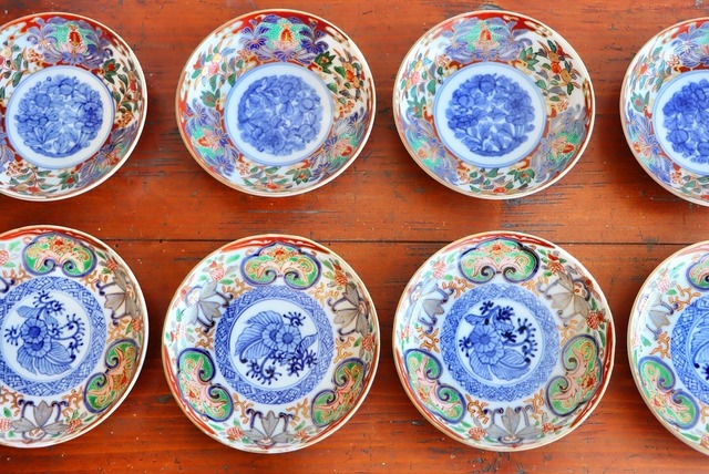 状態:焼成時に窯の中でできる鉄分、くっつき、かまきず、ピンホール、経年による釉薬の薄れがございます。また、一枚一枚手描き、手作りですので器のサイズ(ミリ)、色味、描かれている文様の大きさなど個体差があり、ひとつとして同じものはございません。そういった時代感、個性をご理解いただき、楽しんでくだされば幸いです。電子レンジや食器洗い乾燥機のご使用はお控えください。