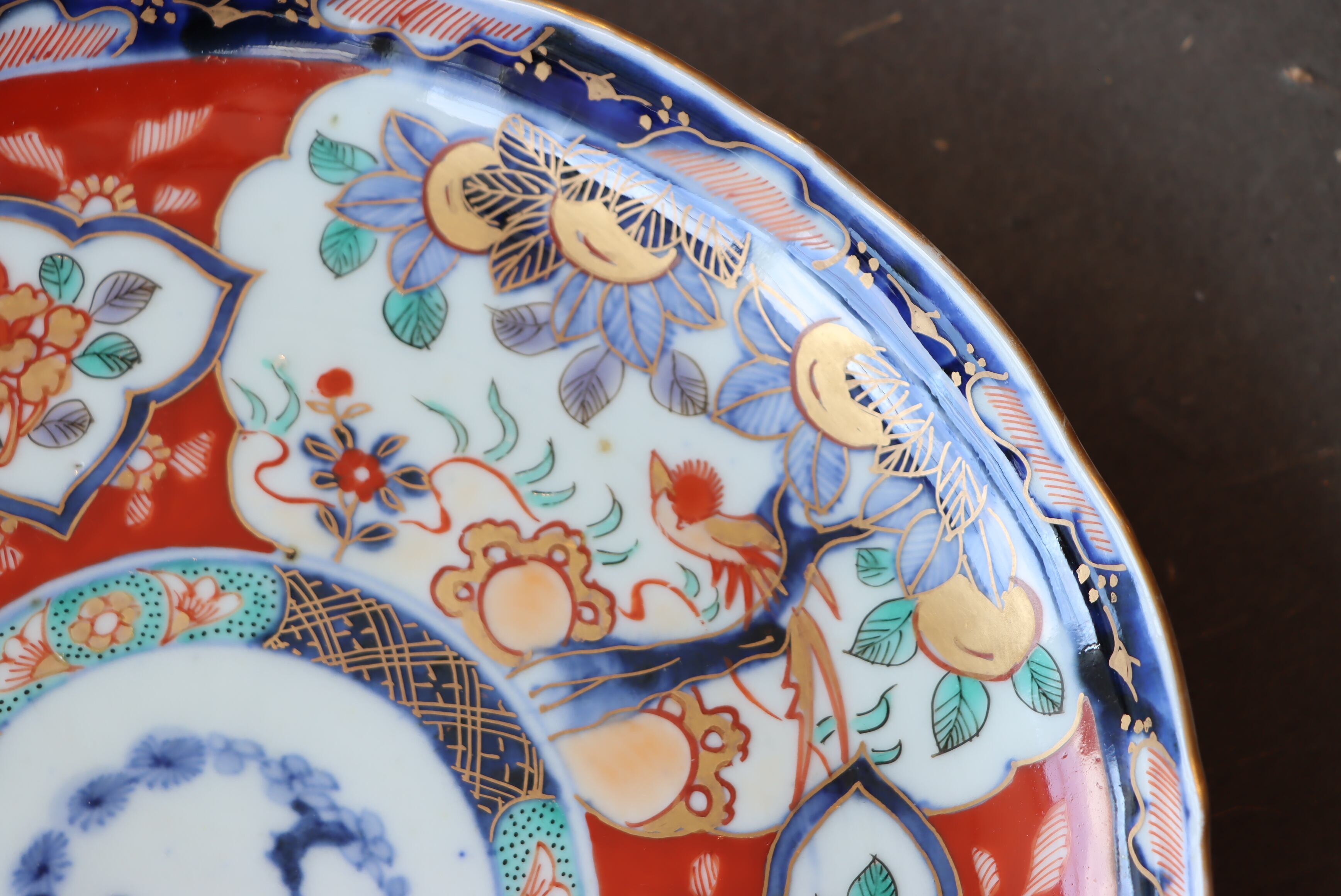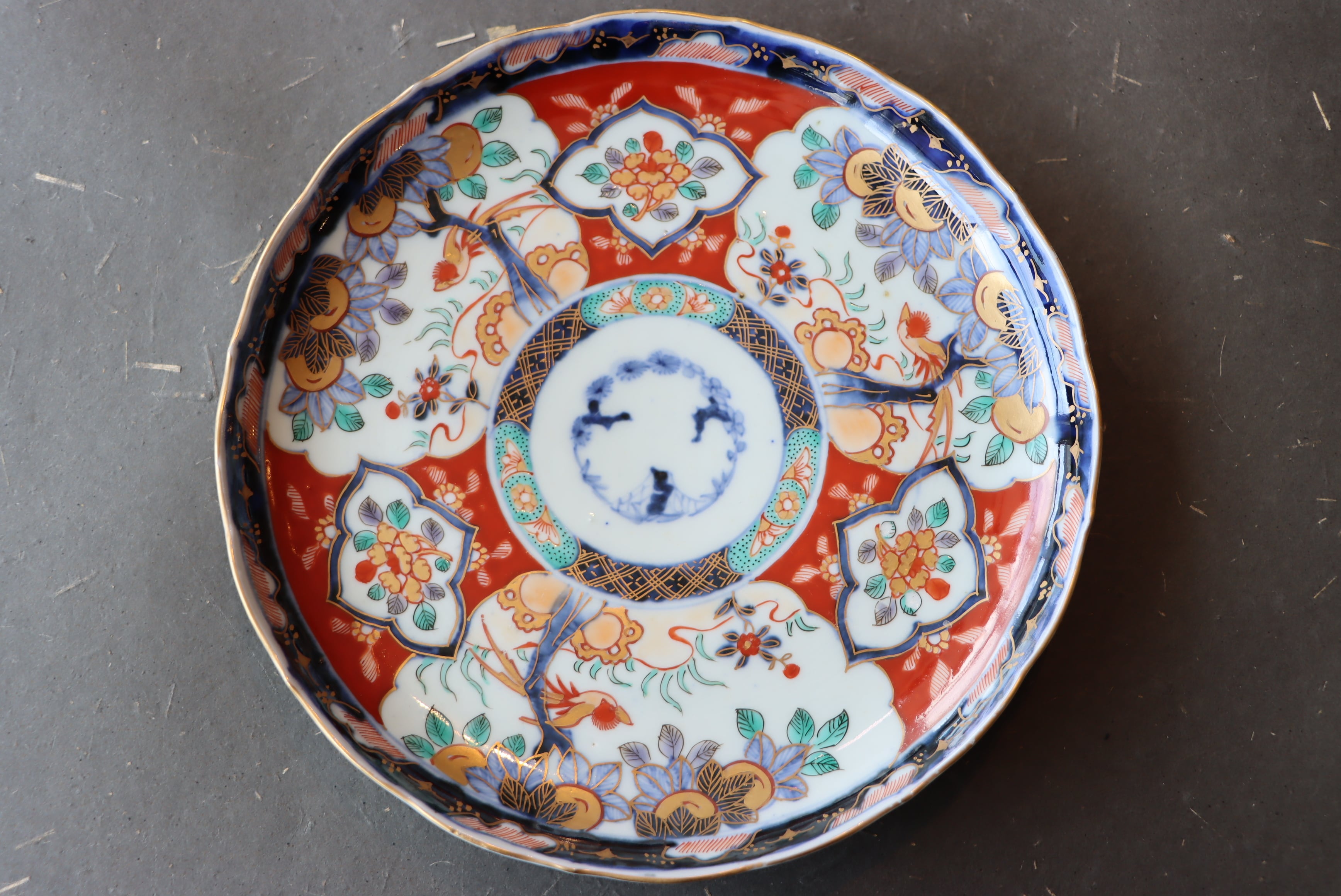 【Imari medium size plate with pomegranate and bird design in overglaze enamels.】