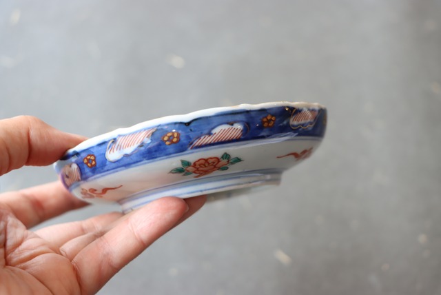 【Imari small plate with pomegranate and bird design in overglaze enamels.】