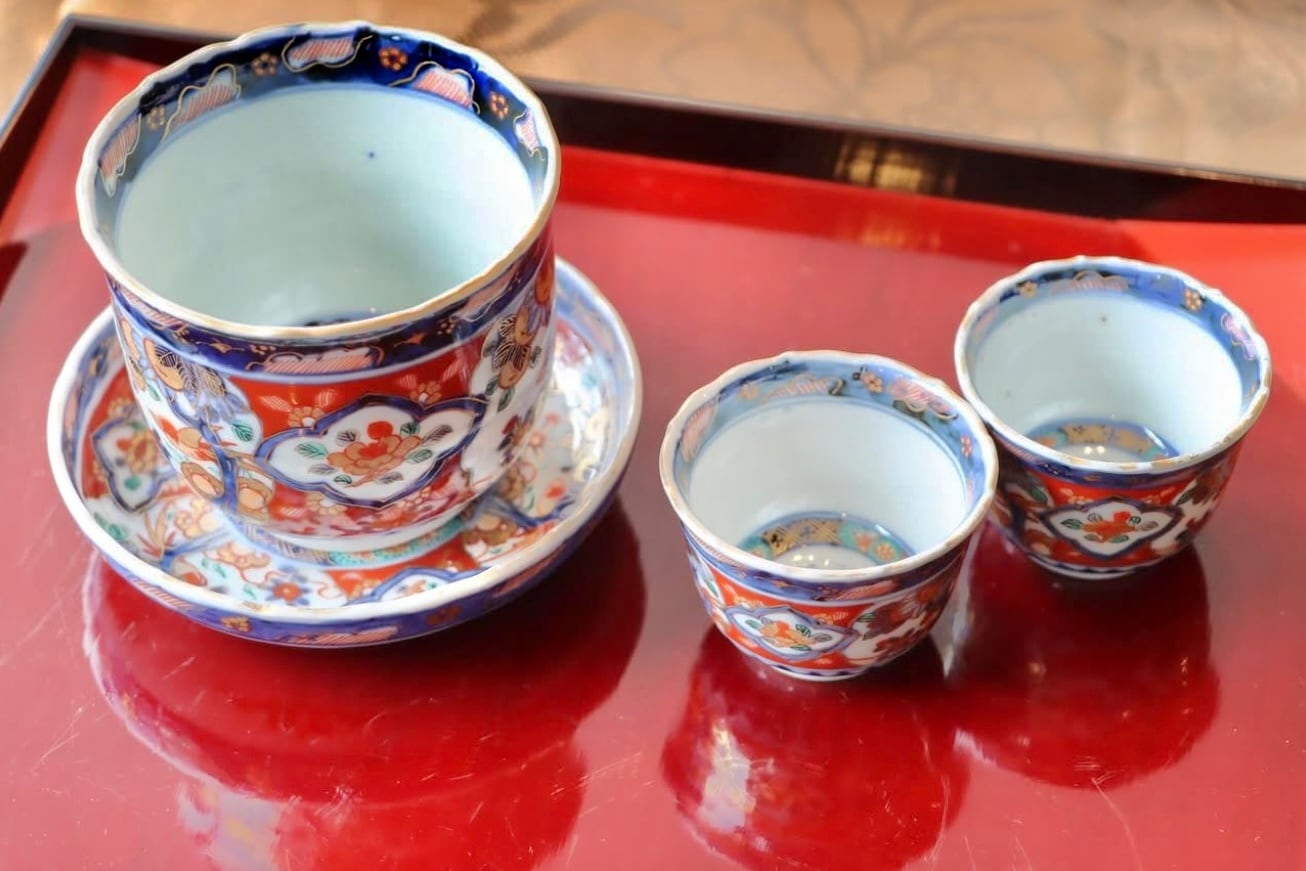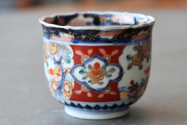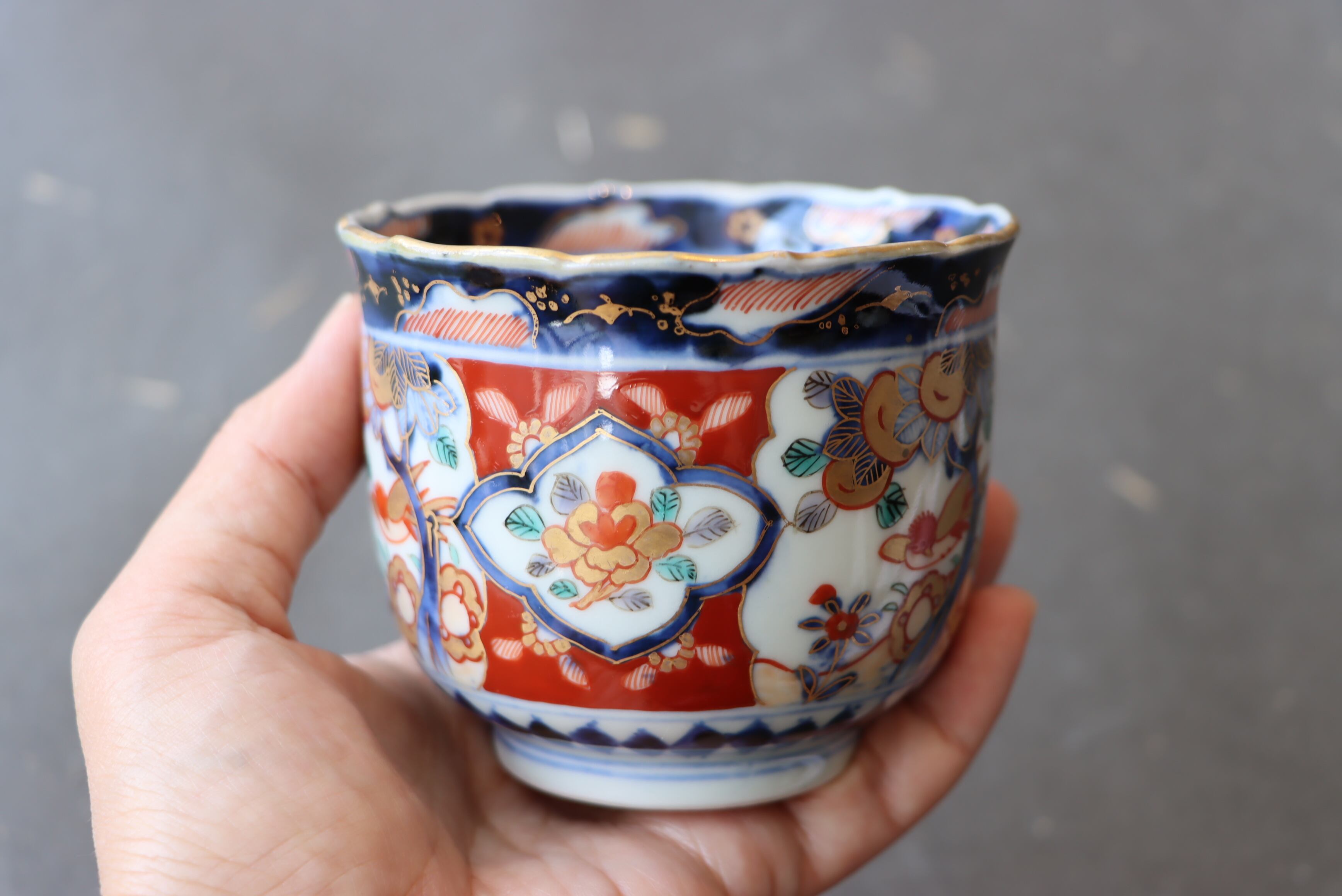 伊万里焼 色絵 柘榴鳥文 湯呑 向付 通りもの/Imari cup