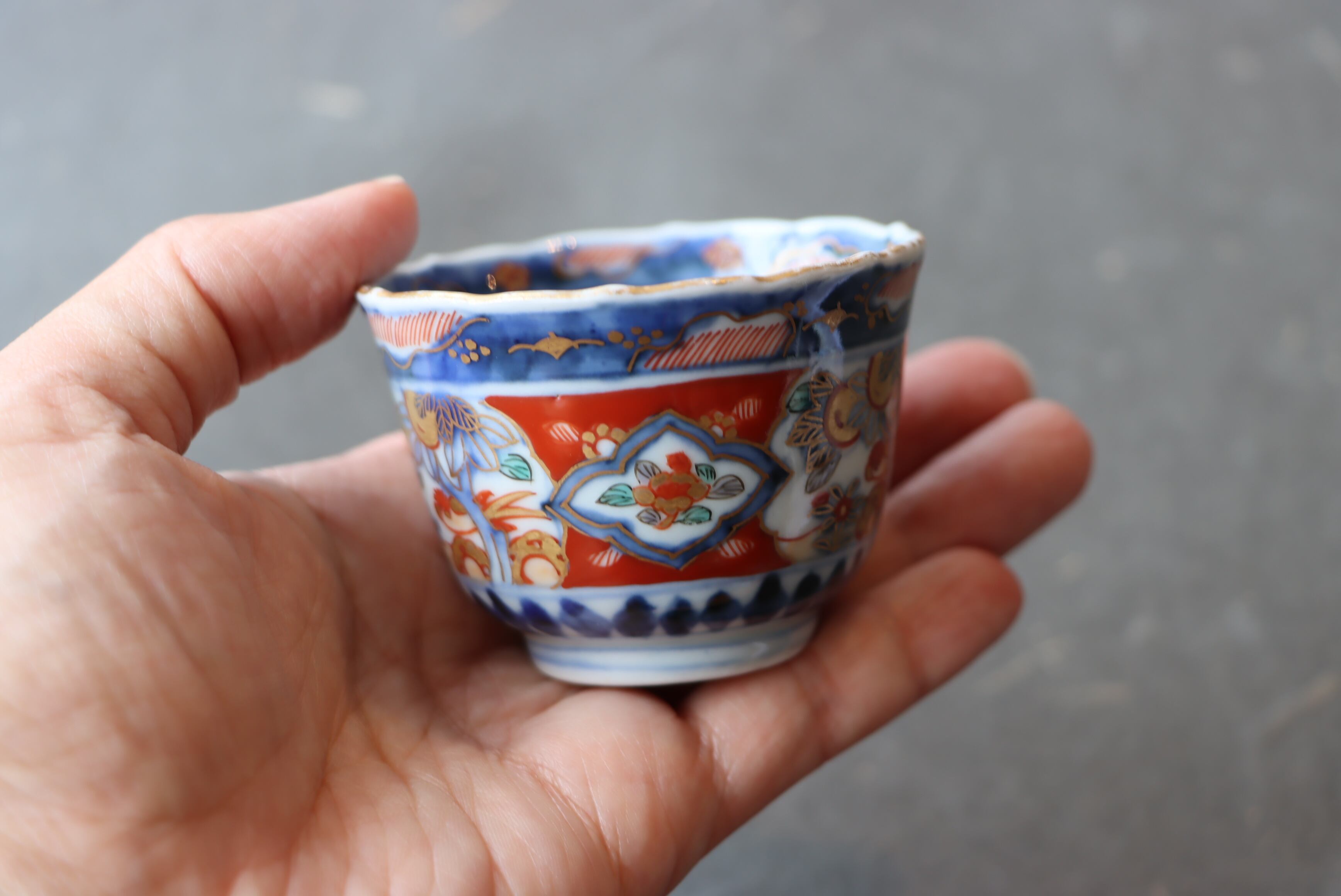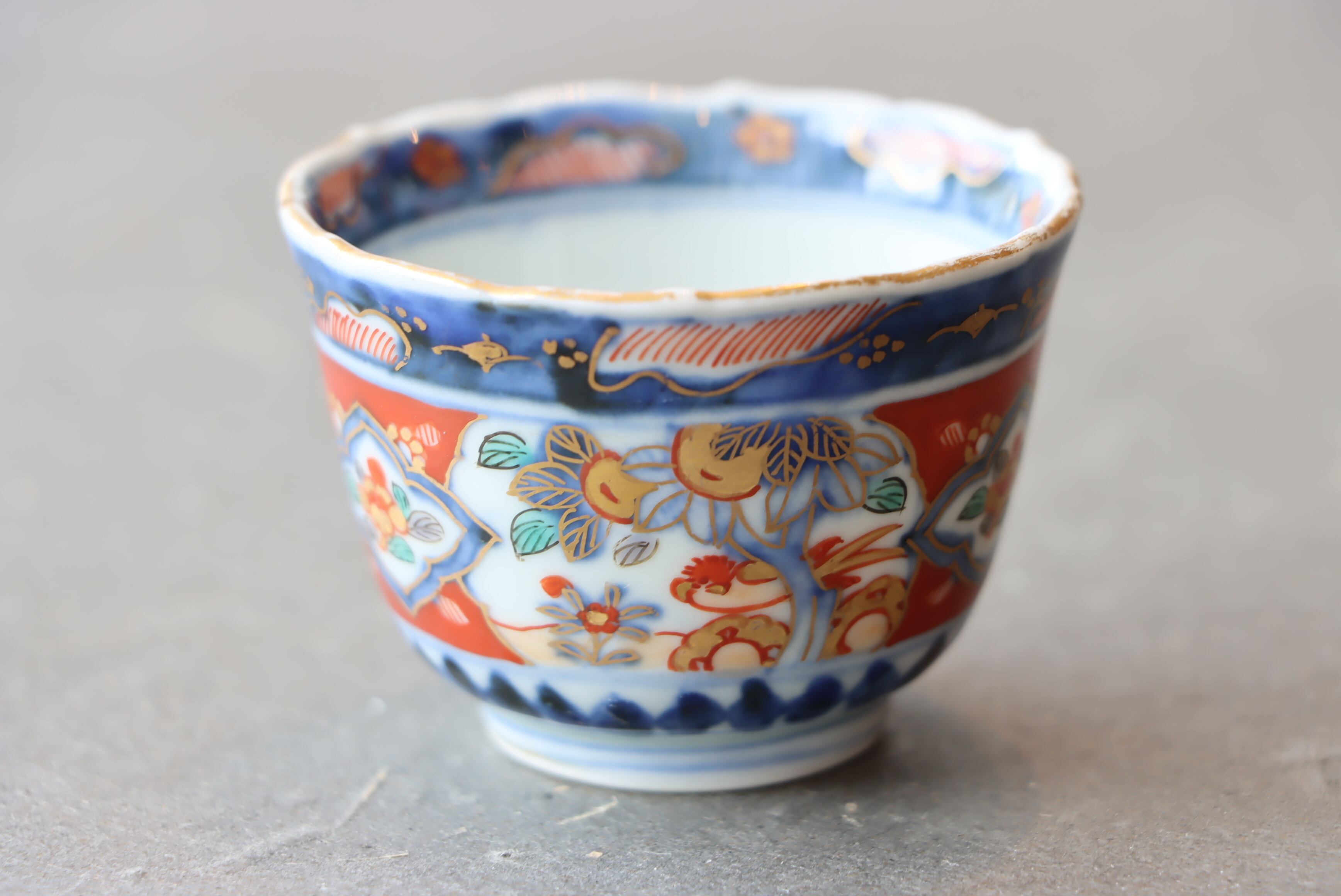 【Imari small cup with pomegranate and bird design in overglaze enamels.】