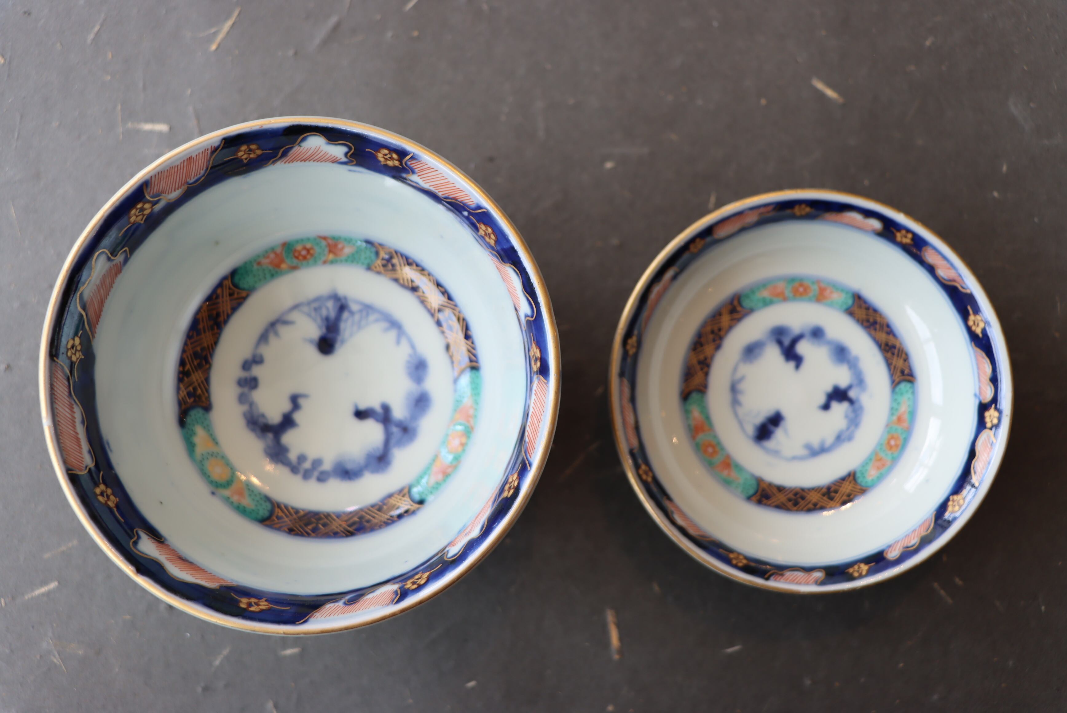 焼成時に窯の中でできる鉄分、くっつき、かまきず、ピンホール、経年による釉薬の薄れがございます。また、一枚一枚手描き、手作りですので器のサイズ(ミリ)、色味、描かれている文様の大きさなど個体差があり、ひとつとして同じものはございません。そういった時代感、個性をご理解いただき、楽しんでくだされば幸いです。電子レンジや食器洗い乾燥機のご使用はお控えください。