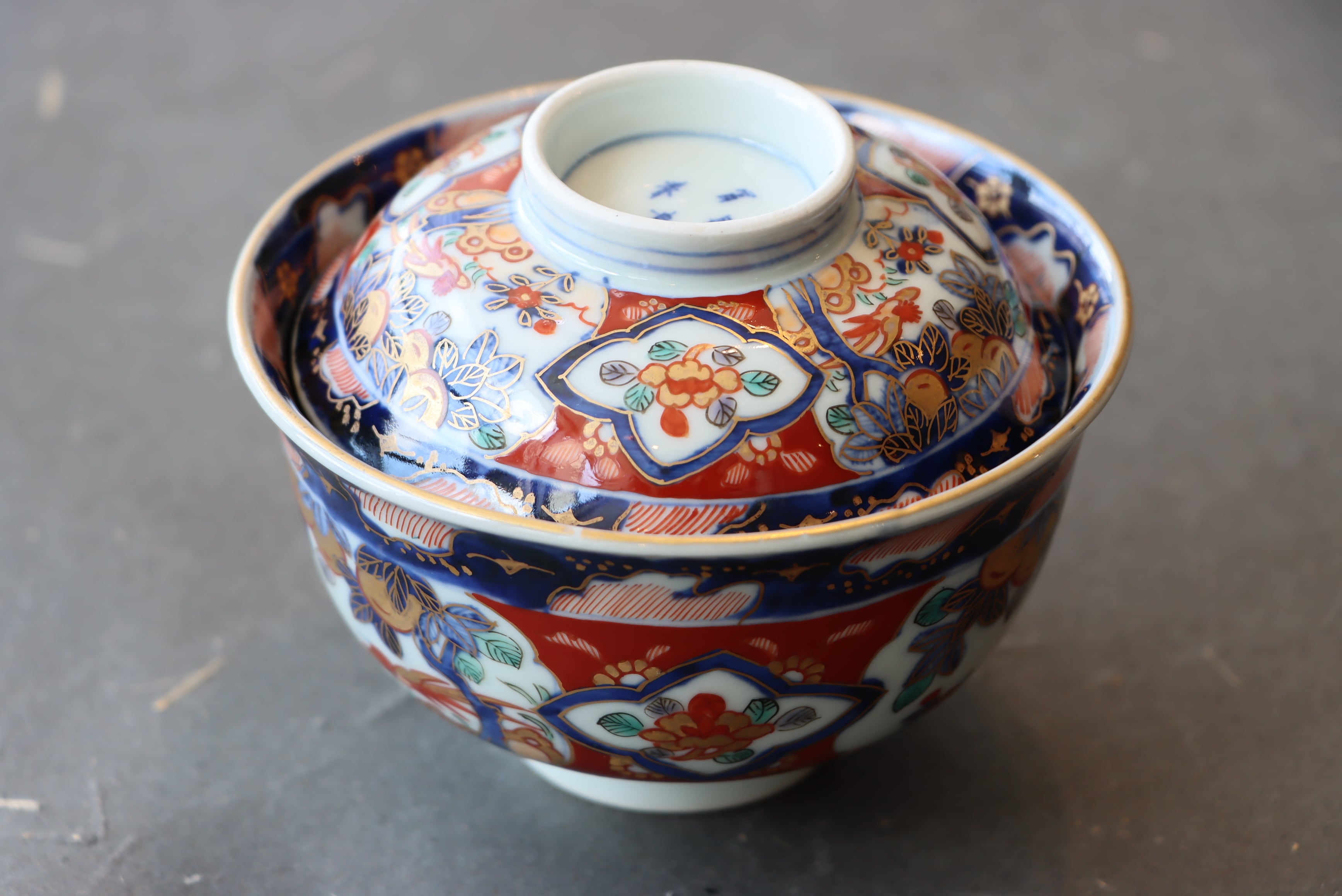 伊万里焼 色絵 柘榴鳥文 蓋茶碗 通りもの/Imari covered bowl.