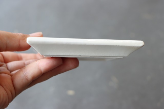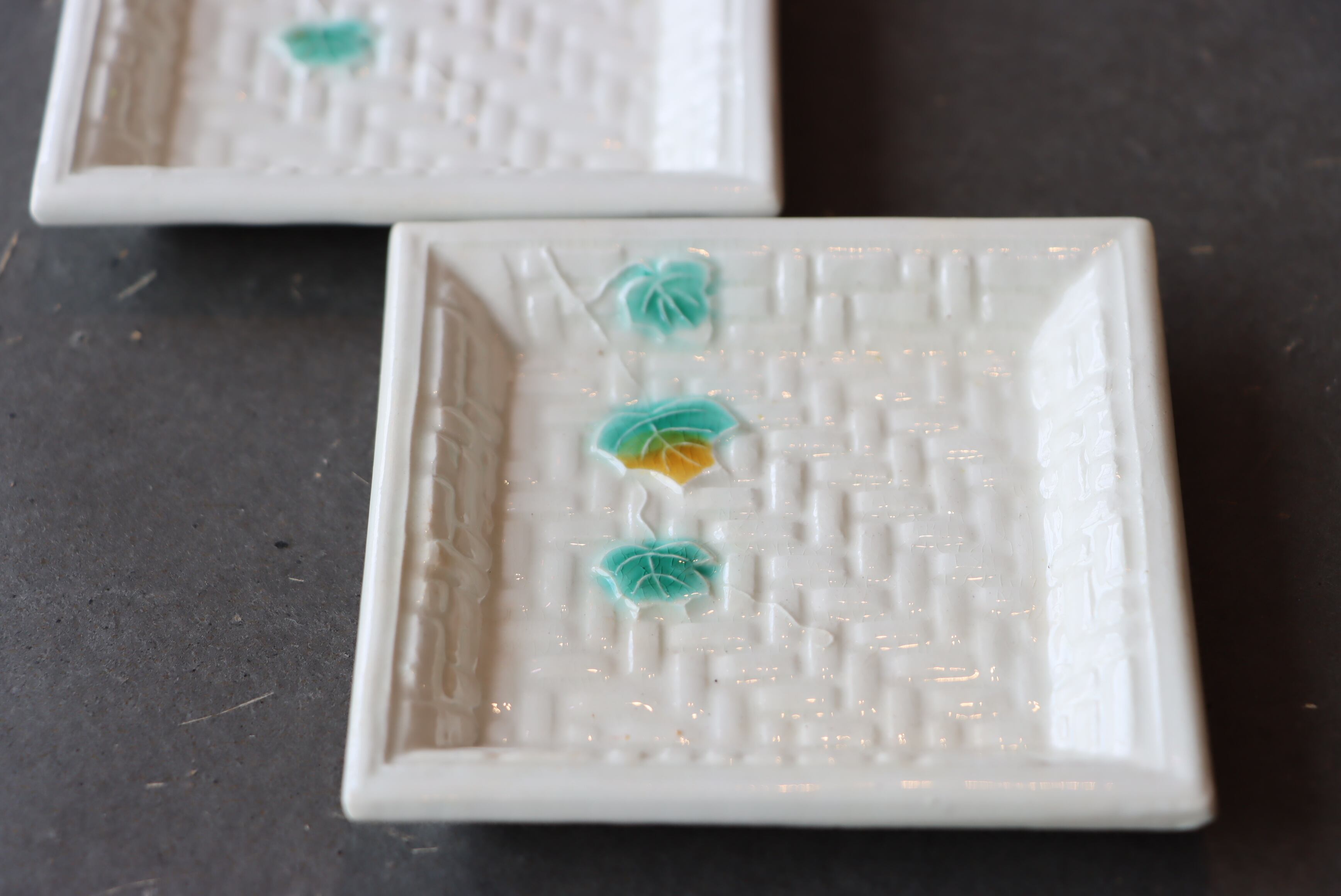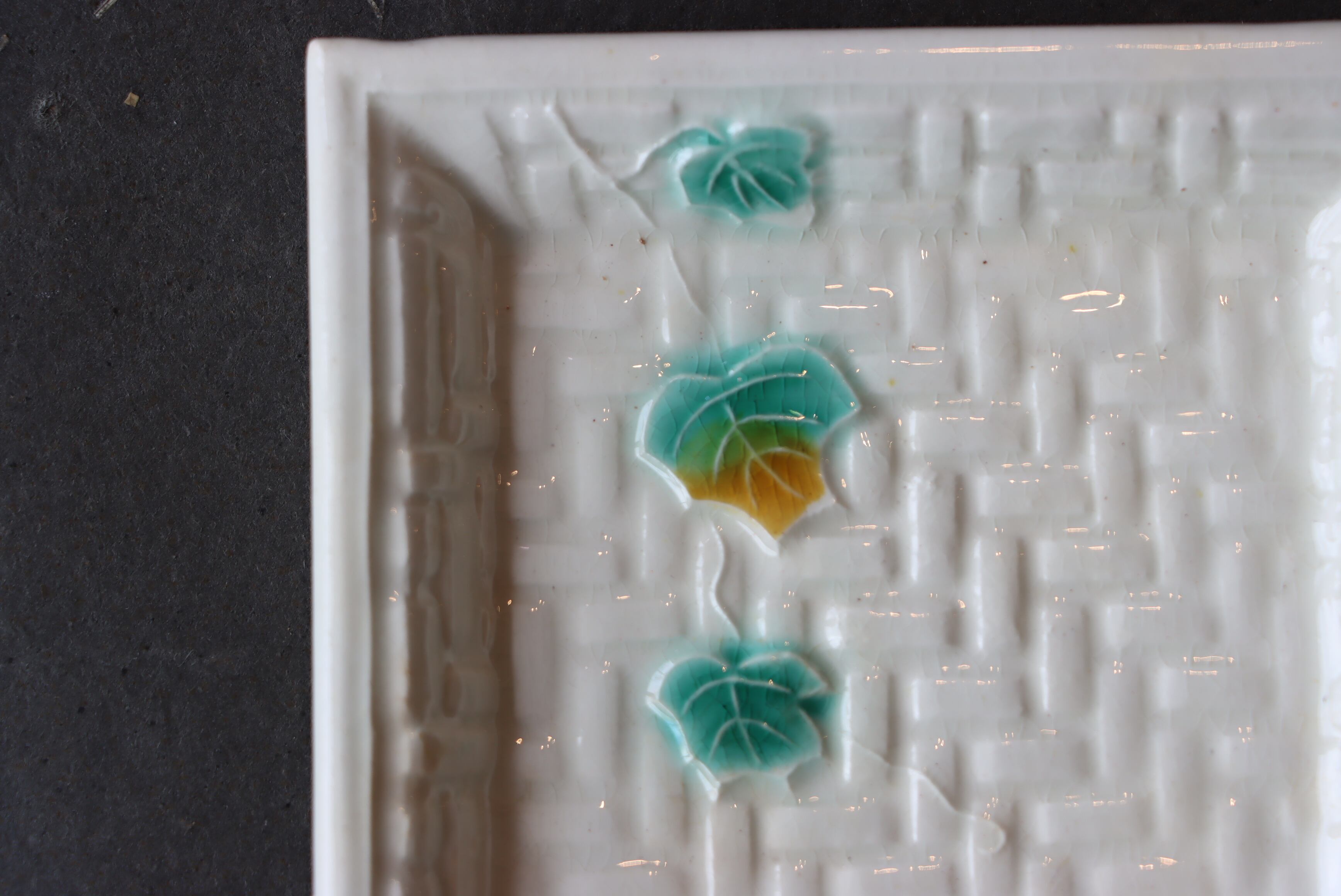 珉平焼 白釉 蔦文 角小皿/Minpei ware small plate.