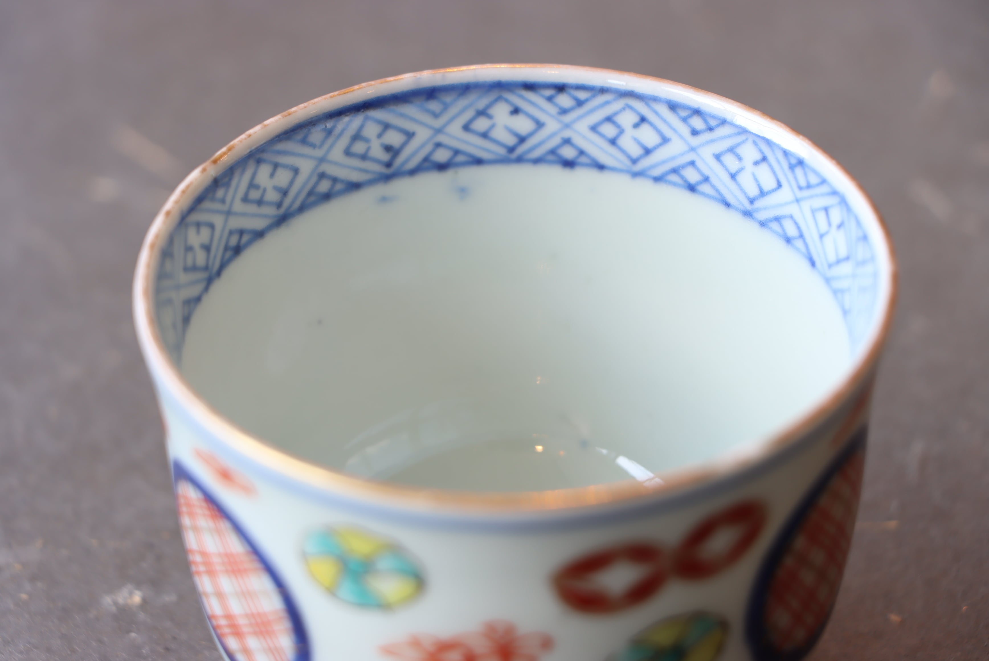 伊万里焼 色絵 七宝花丸文 湯呑/Imari cup