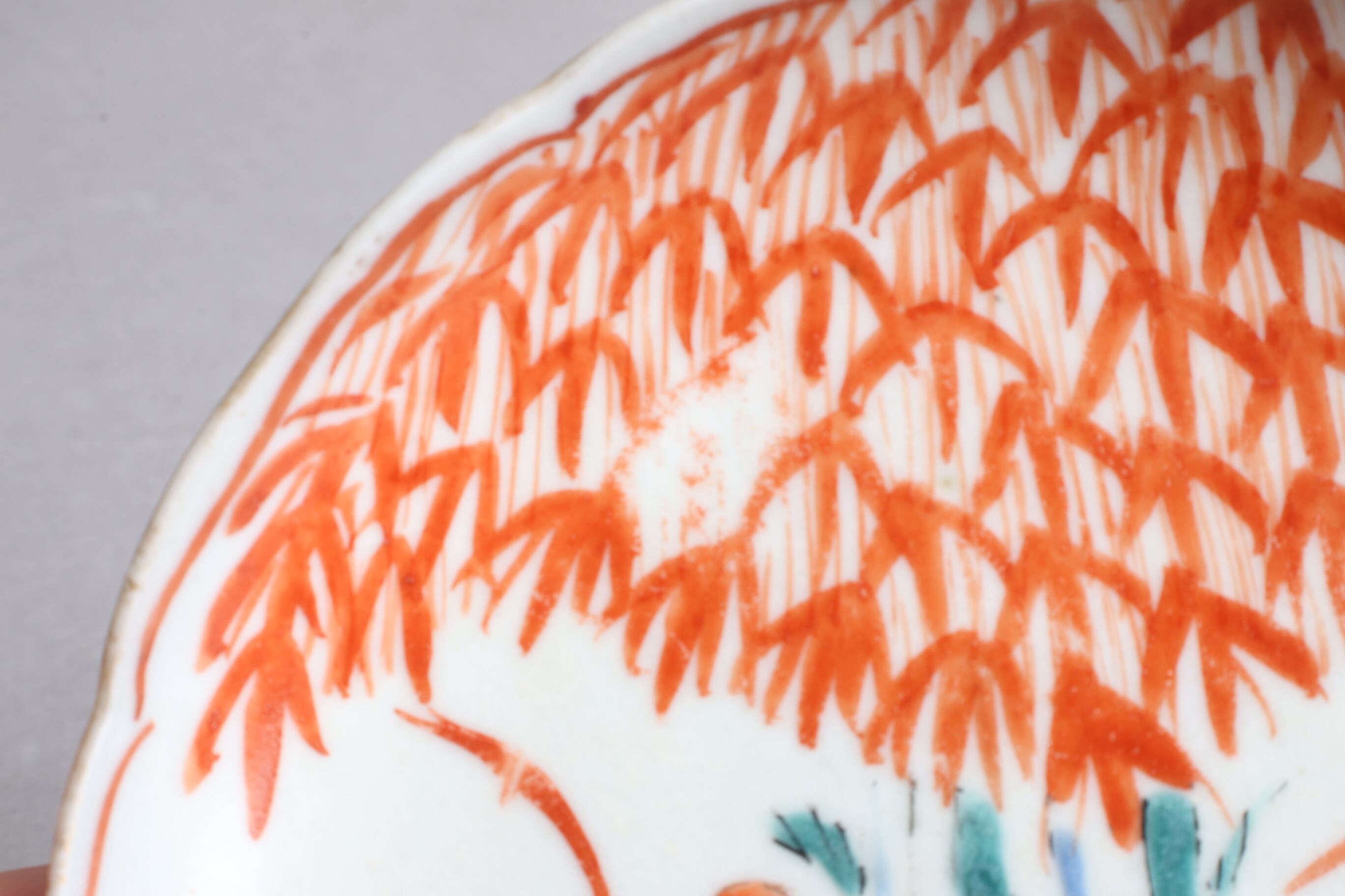 焼成時に窯の中でできる鉄分、くっつき、かまきず、ピンホール、経年による釉薬の薄れ、剥がれがございます。また、一枚一枚手描き、手作りですので器のサイズ(ミリ)、色味、描かれている文様の大きさなど個体差があり、ひとつとして同じものはございません。そういった時代感、個性をご理解いただき、楽しんでくだされば幸いです。電子レンジや食器洗い乾燥機のご使用はお控えください。