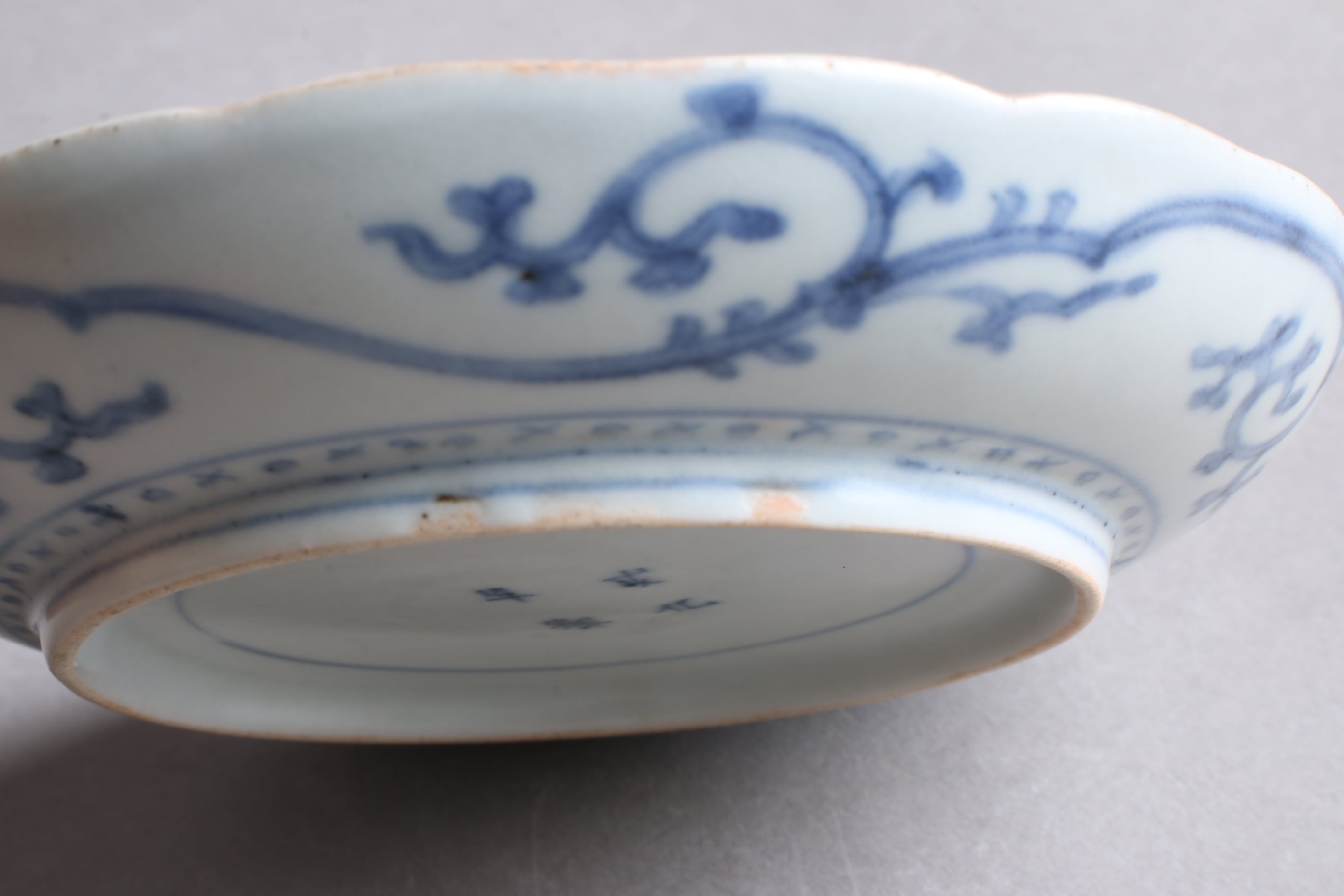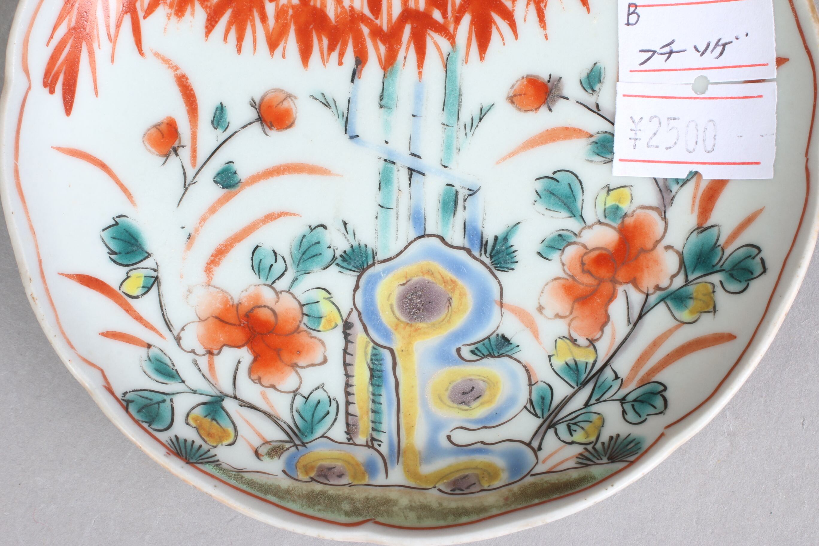 焼成時に窯の中でできる鉄分、くっつき、かまきず、ピンホール、経年による釉薬の薄れ、剥がれがございます。また、一枚一枚手描き、手作りですので器のサイズ(ミリ)、色味、描かれている文様の大きさなど個体差があり、ひとつとして同じものはございません。そういった時代感、個性をご理解いただき、楽しんでくだされば幸いです。電子レンジや食器洗い乾燥機のご使用はお控えください。