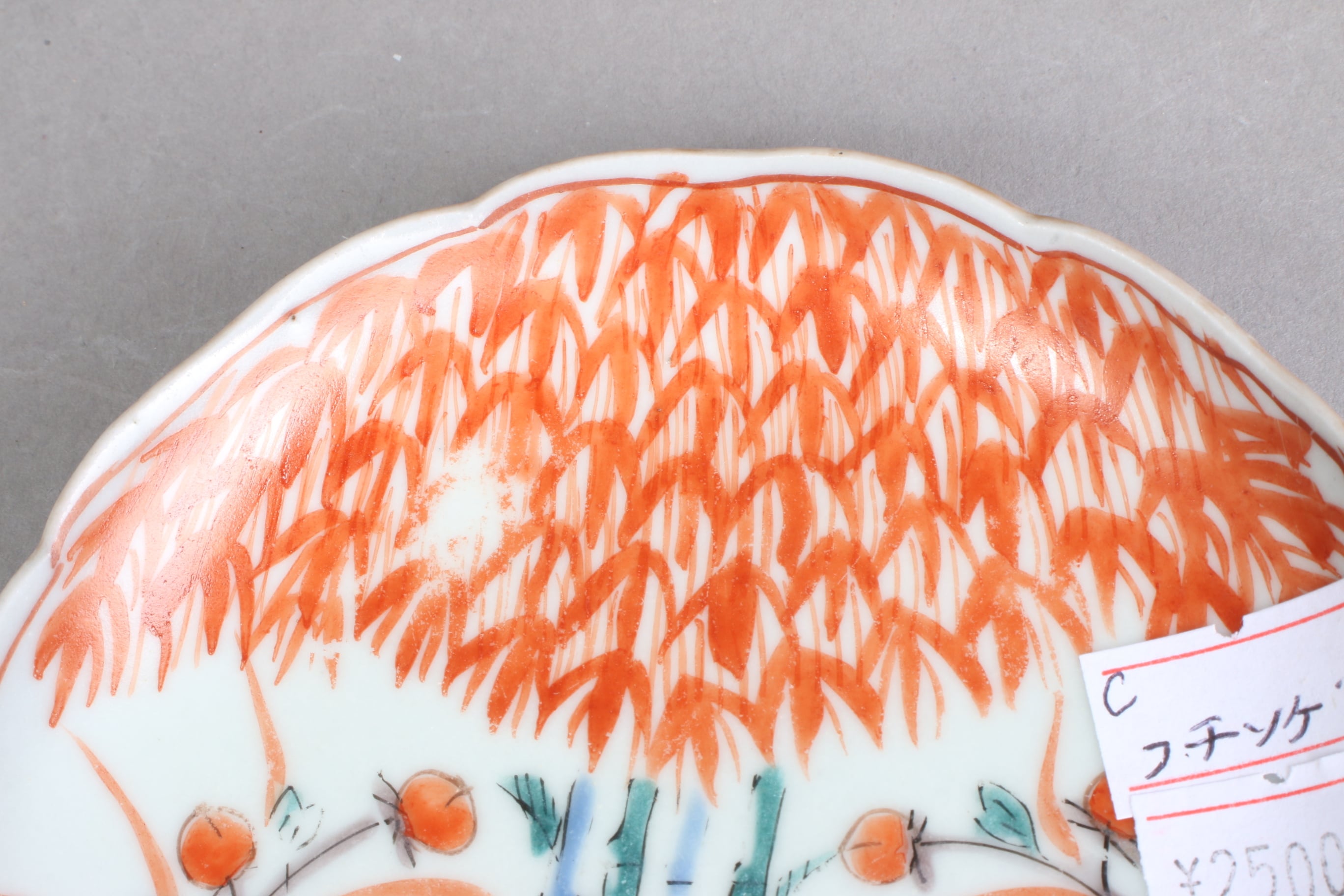 焼成時に窯の中でできる鉄分、くっつき、かまきず、ピンホール、経年による釉薬の薄れ、剥がれがございます。また、一枚一枚手描き、手作りですので器のサイズ(ミリ)、色味、描かれている文様の大きさなど個体差があり、ひとつとして同じものはございません。そういった時代感、個性をご理解いただき、楽しんでくだされば幸いです。電子レンジや食器洗い乾燥機のご使用はお控えください。