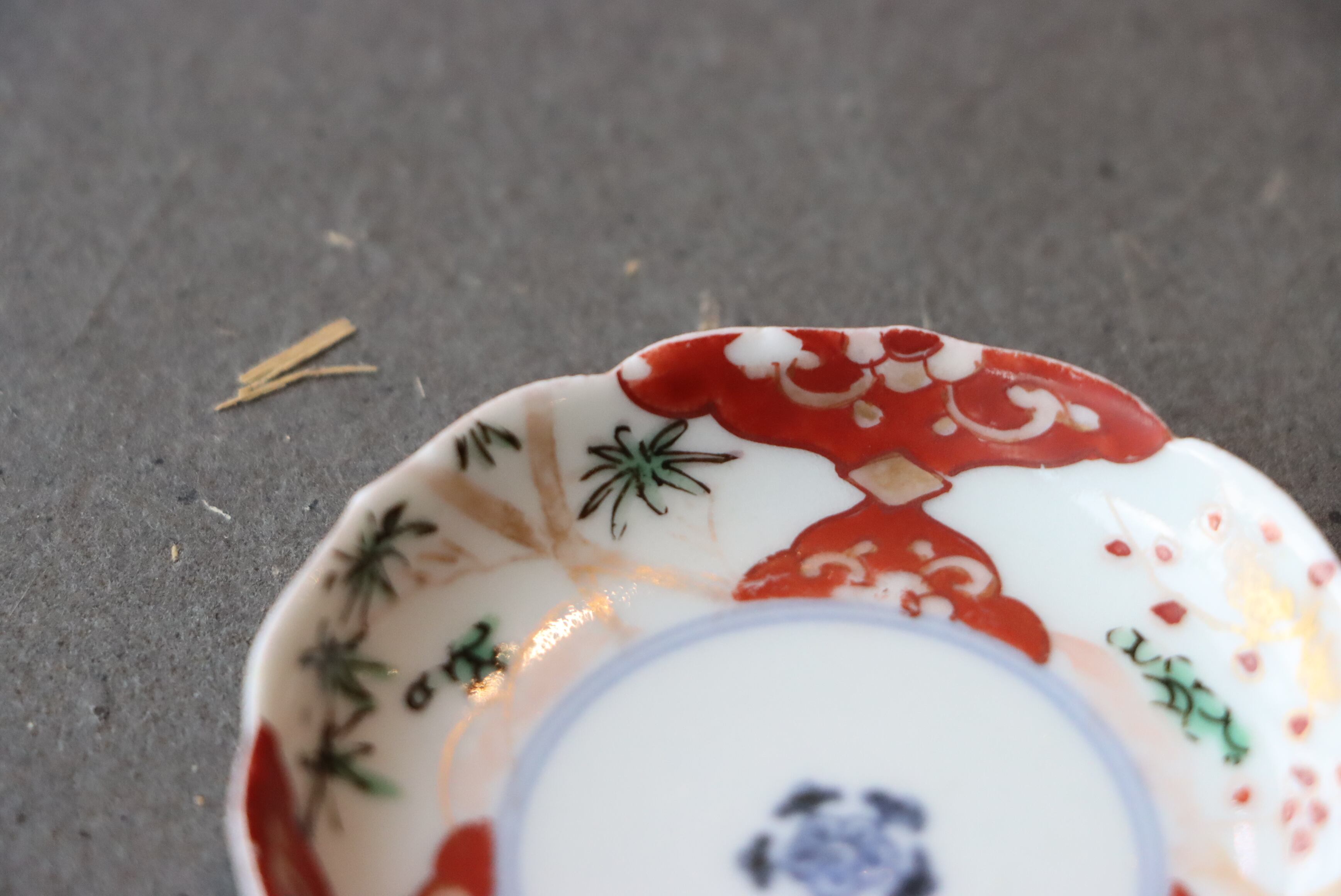 【Old Imari small plate with pine, bamboo and plum design in overglaze enamels, set of 5 with box.】