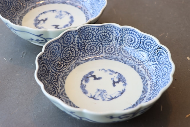 古伊万里 染付 蛸唐草文 膾皿/Old Imari "Namasu" bowl