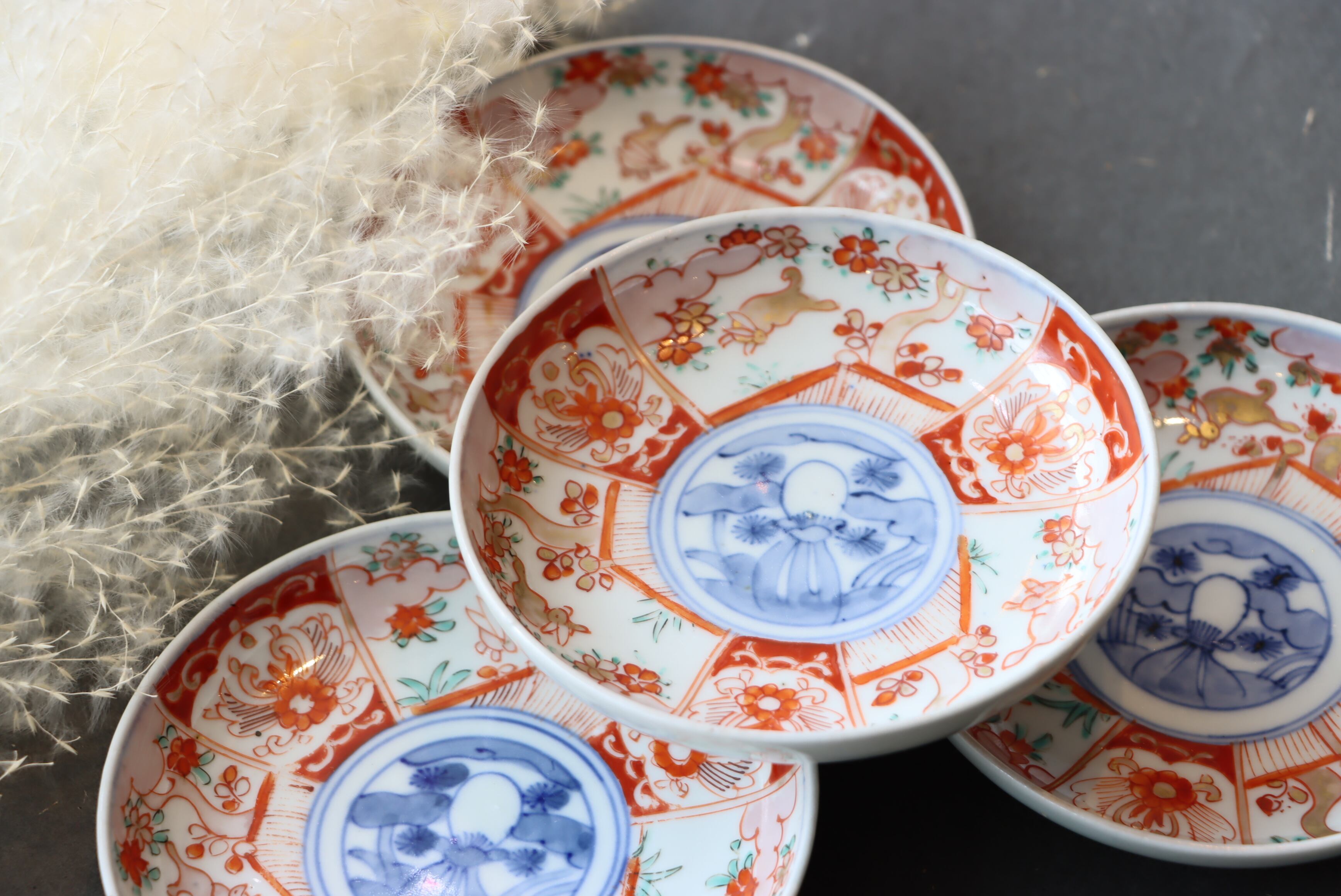 【Imari small size plate with flower and rabbit design in overglaze enamels.】
