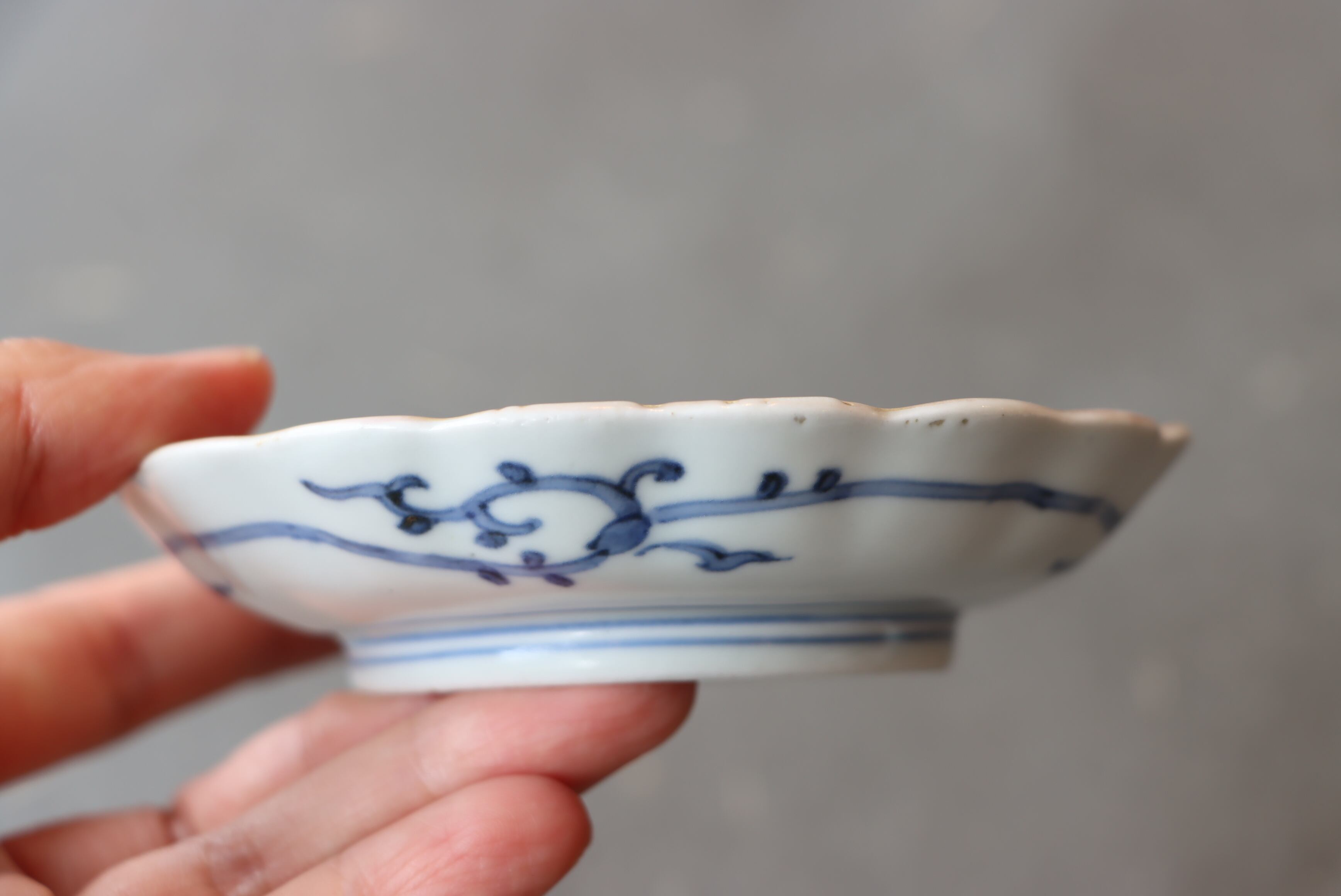 古伊万里 色絵 花青海波文 輪花 小皿/Old Imari small plate