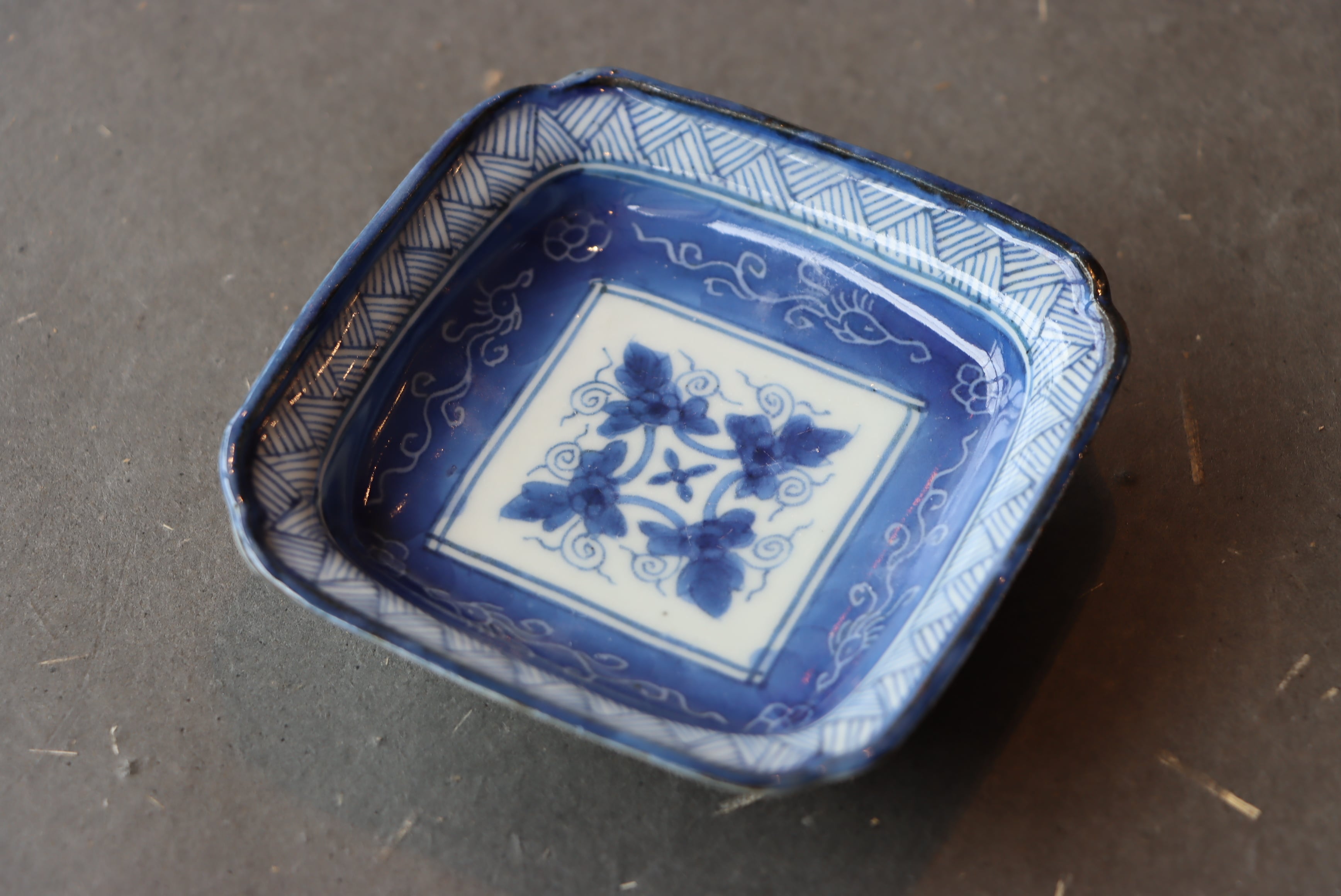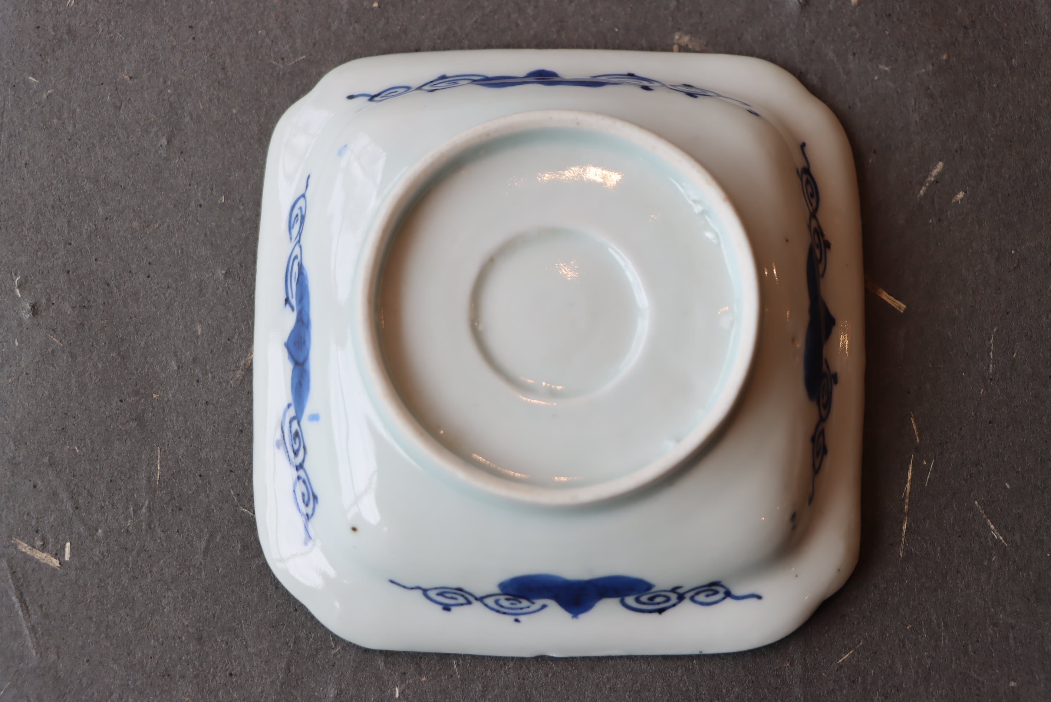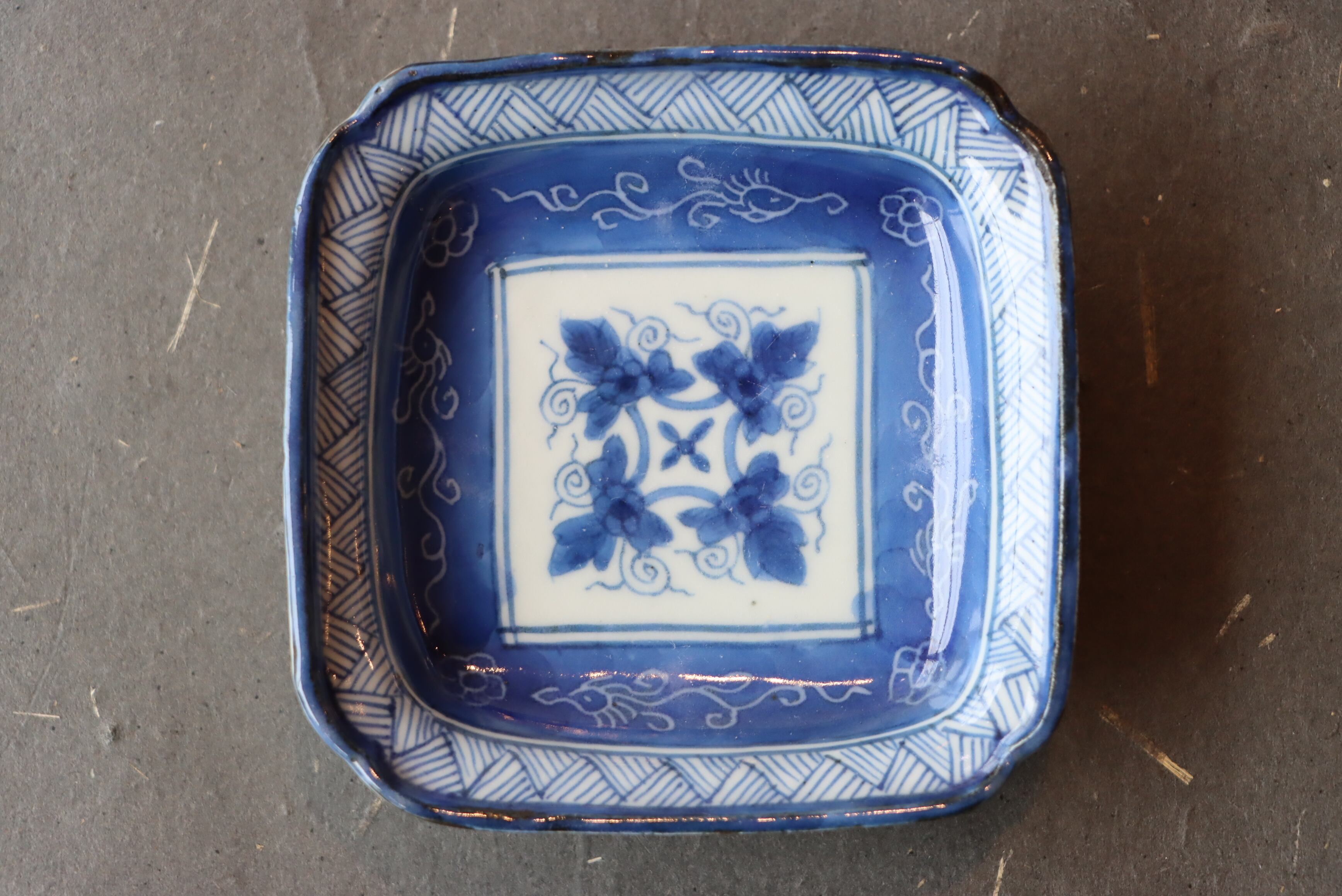 古伊万里 染付 花文 隅切 四方皿/Imari square shaped plate