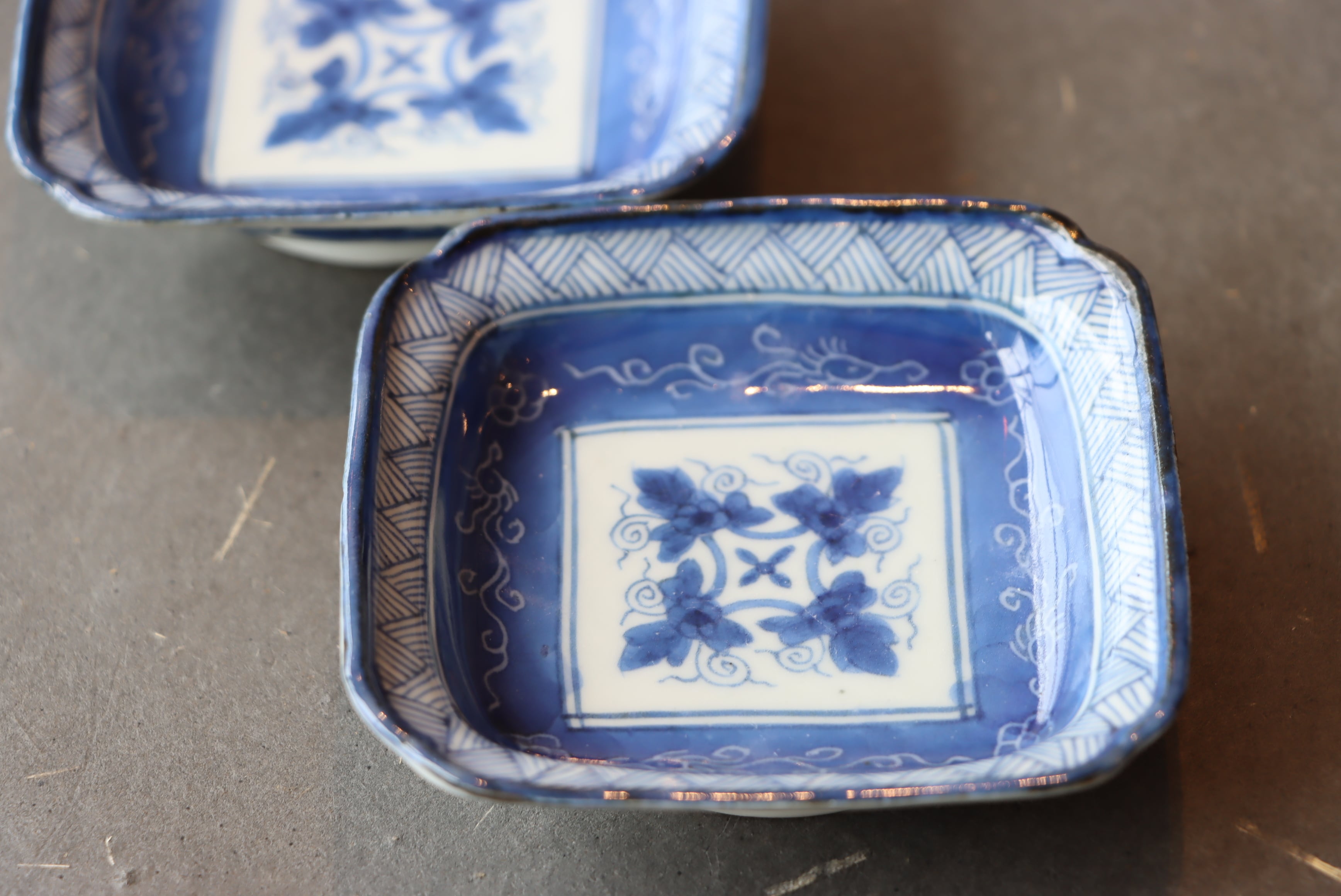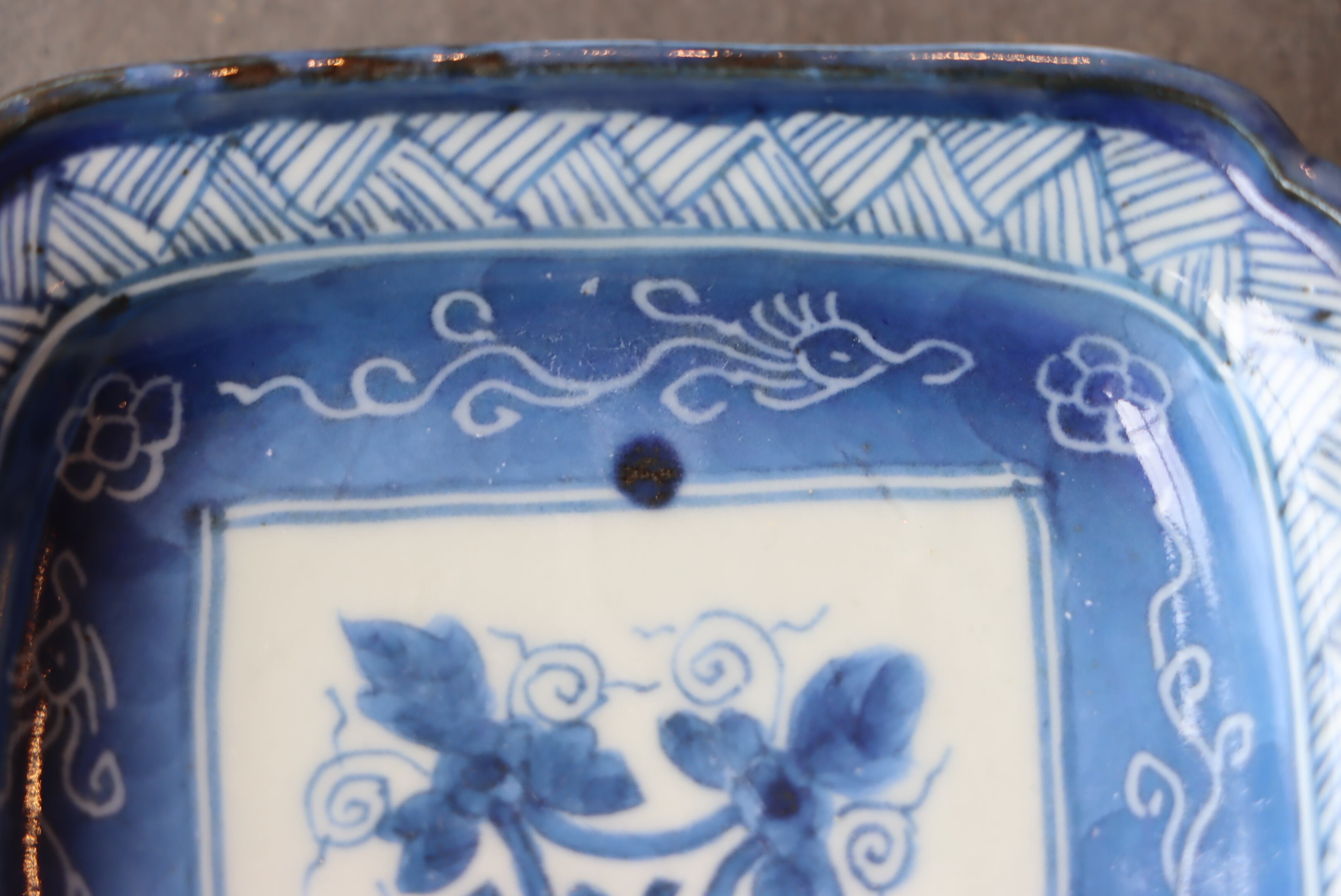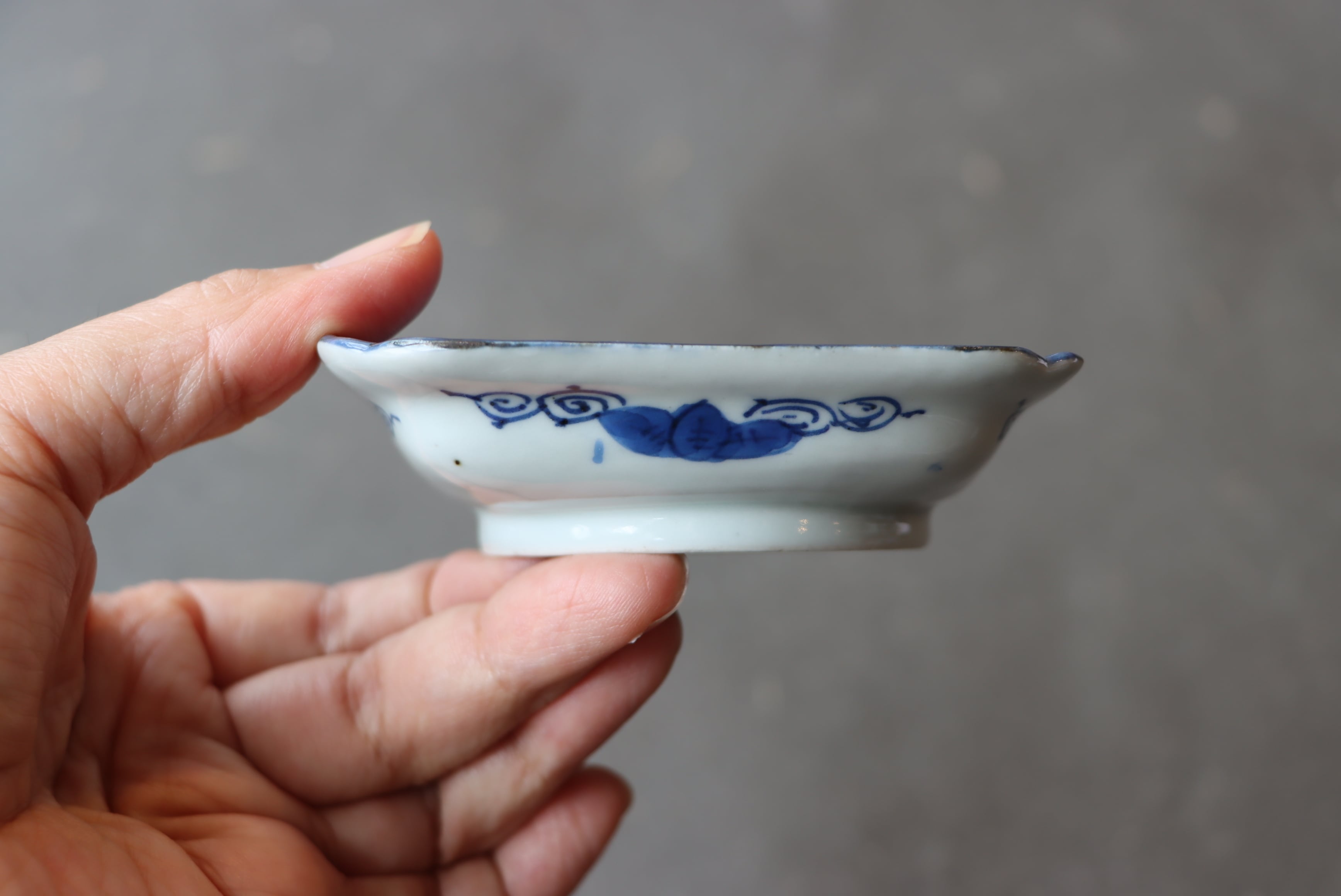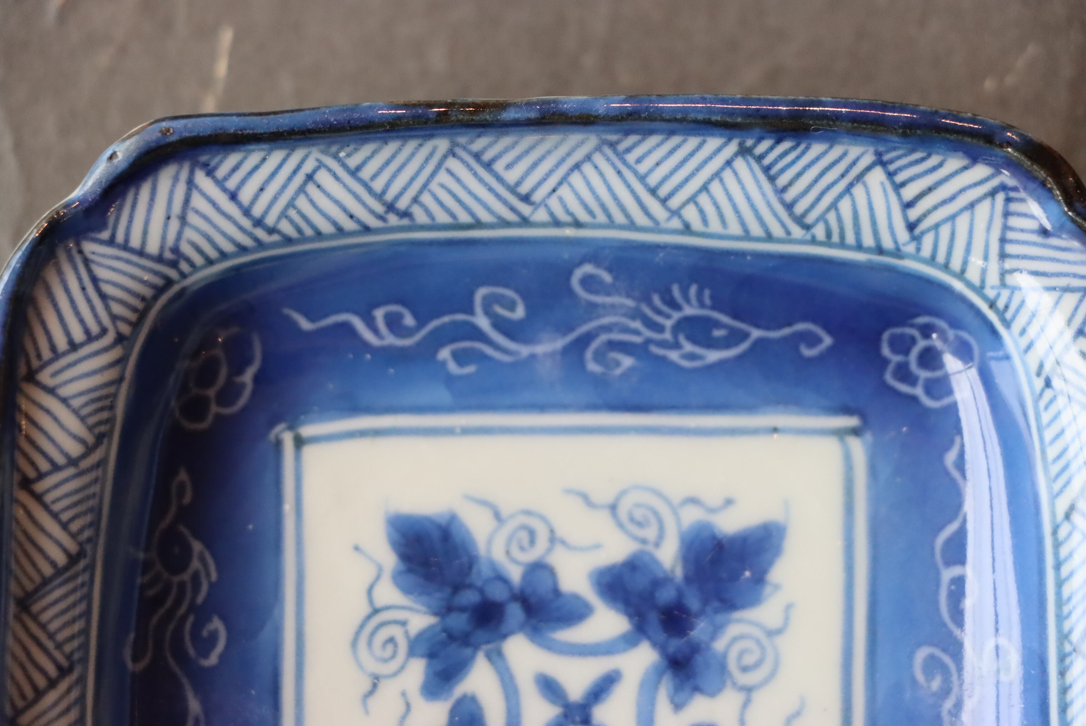 古伊万里 染付 花文 隅切 四方皿/Imari square shaped plate