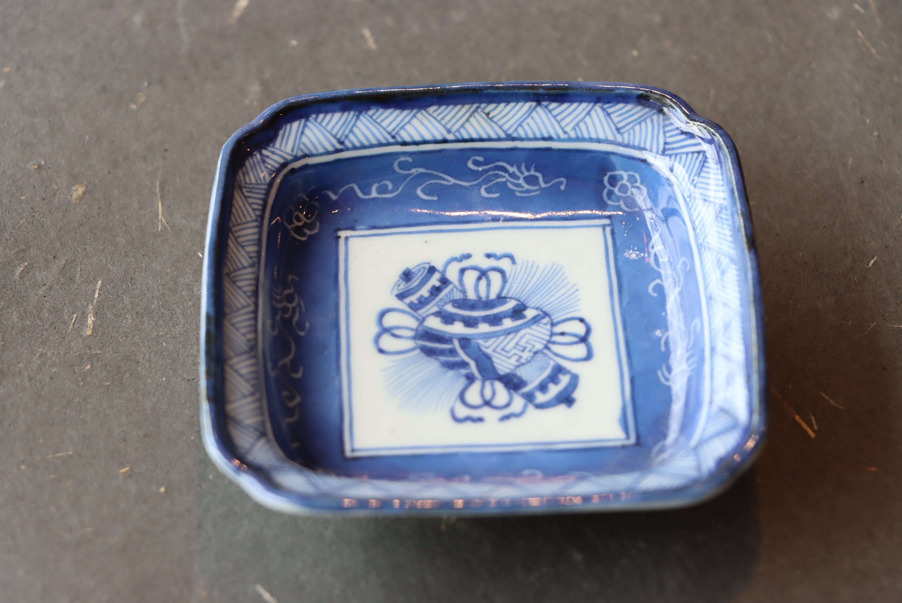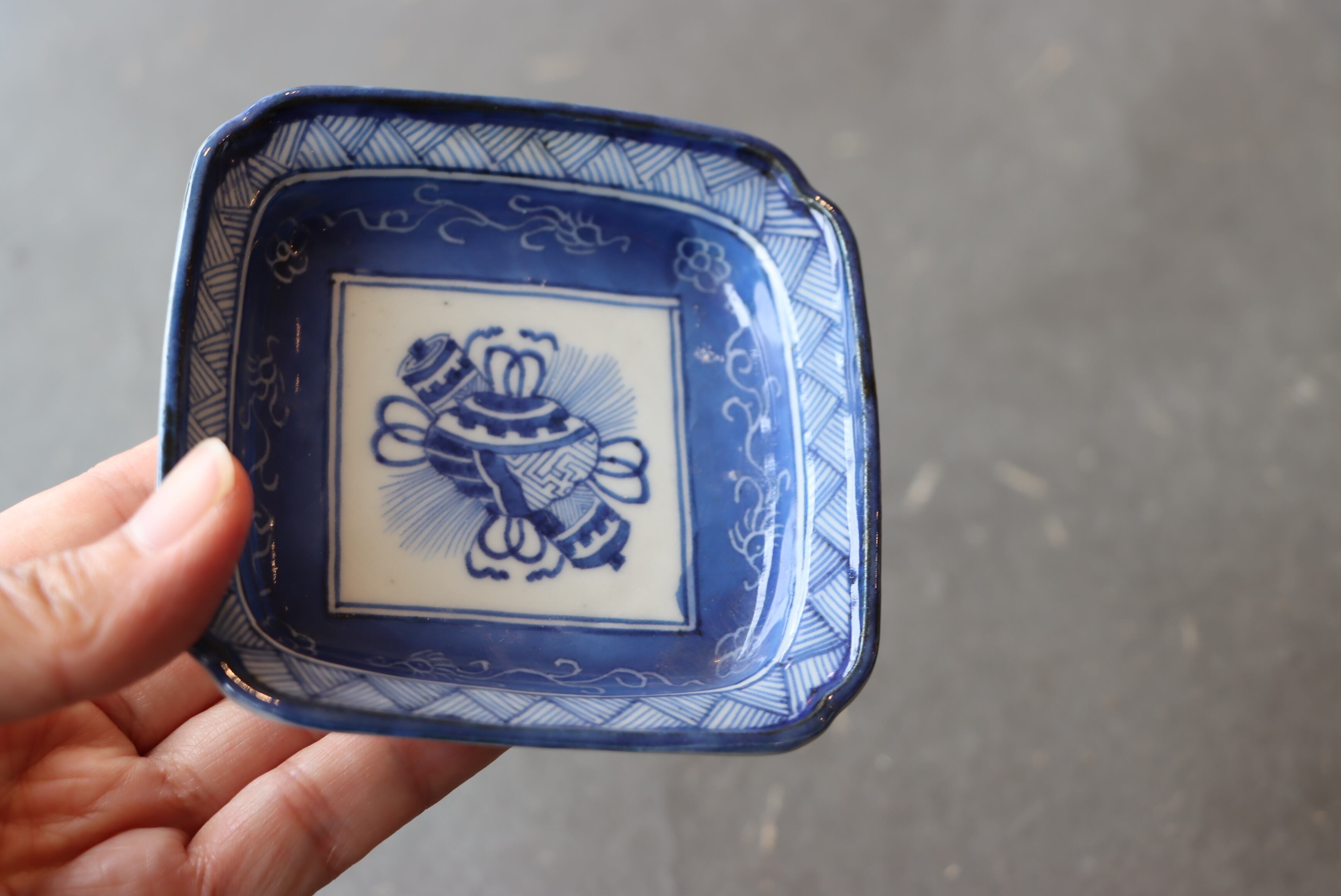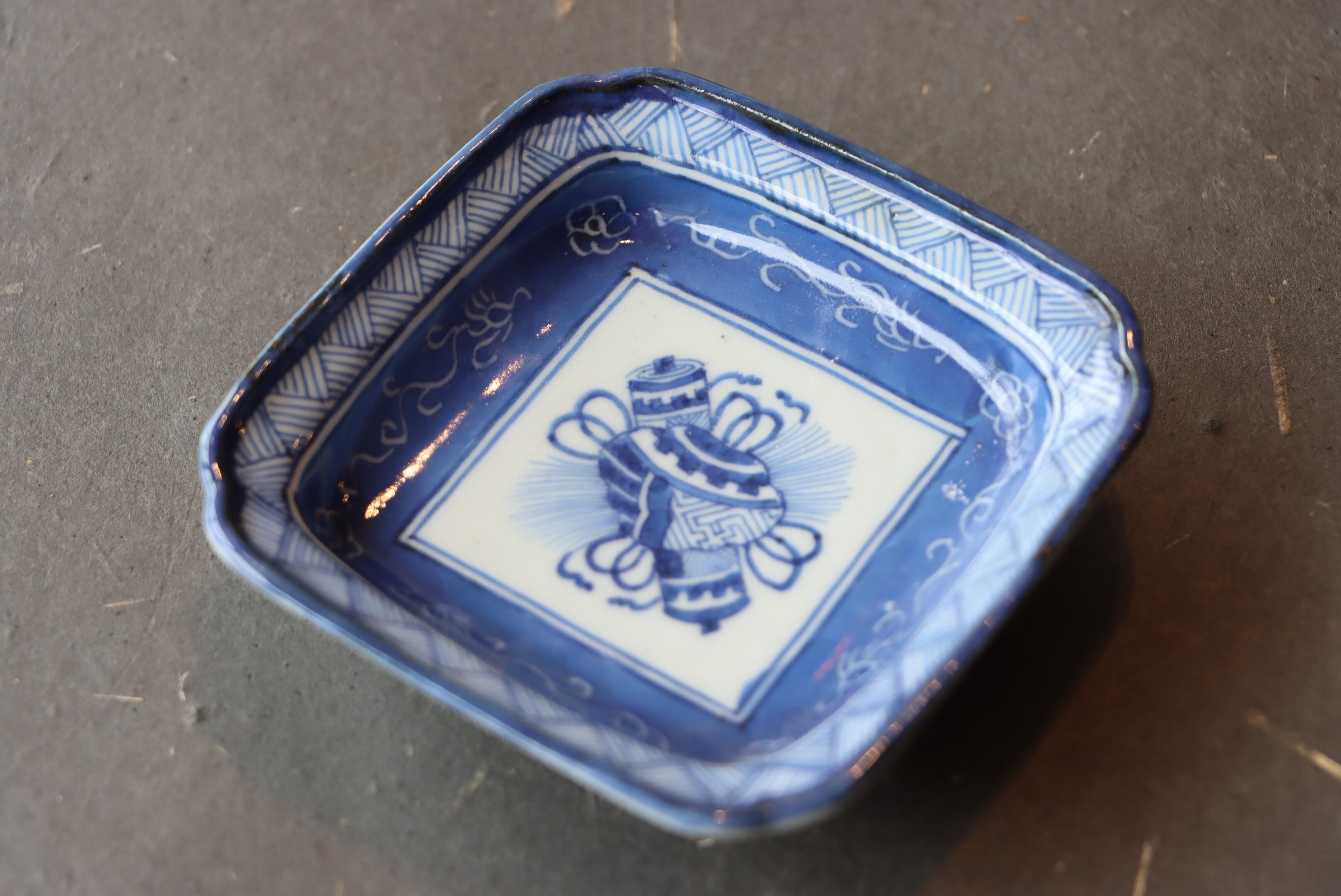 古伊万里 染付 宝巻文 隅切 四方皿/Imari square shaped plate