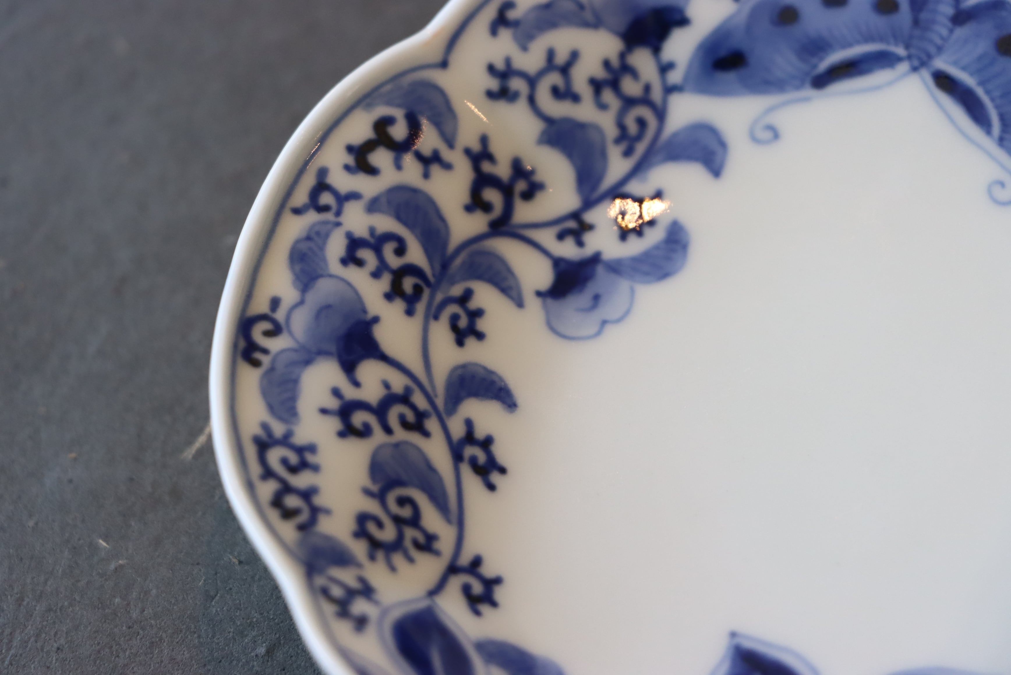 【Hirado ware blue and white small plate with chrysanthemum and butterfly design.】