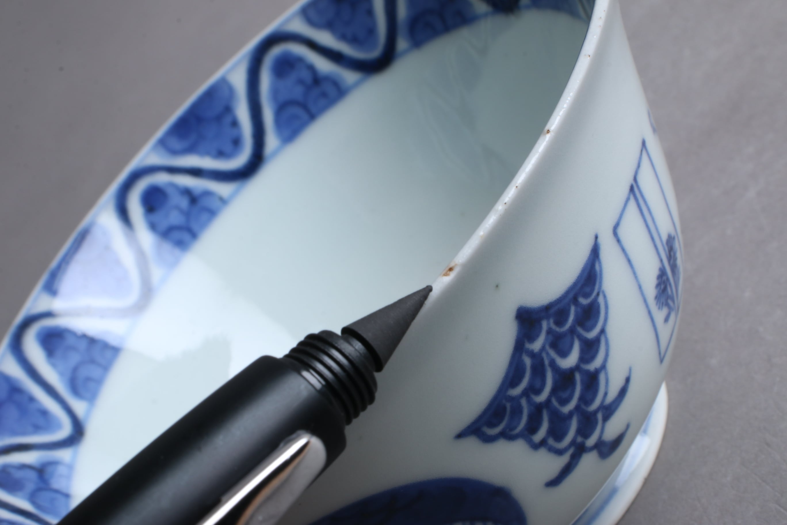 焼成時に窯の中でできる鉄分、くっつき、かまきず、ピンホール、経年による釉薬の薄れがございます。また、一枚一枚手描き、手作りですので器のサイズ(ミリ)、色味、描かれている文様の大きさなど個体差があり、ひとつとして同じものはございません。そういった時代感、個性をご理解いただき、楽しんでくだされば幸いです。電子レンジや食器洗い乾燥機のご使用はお控えください。