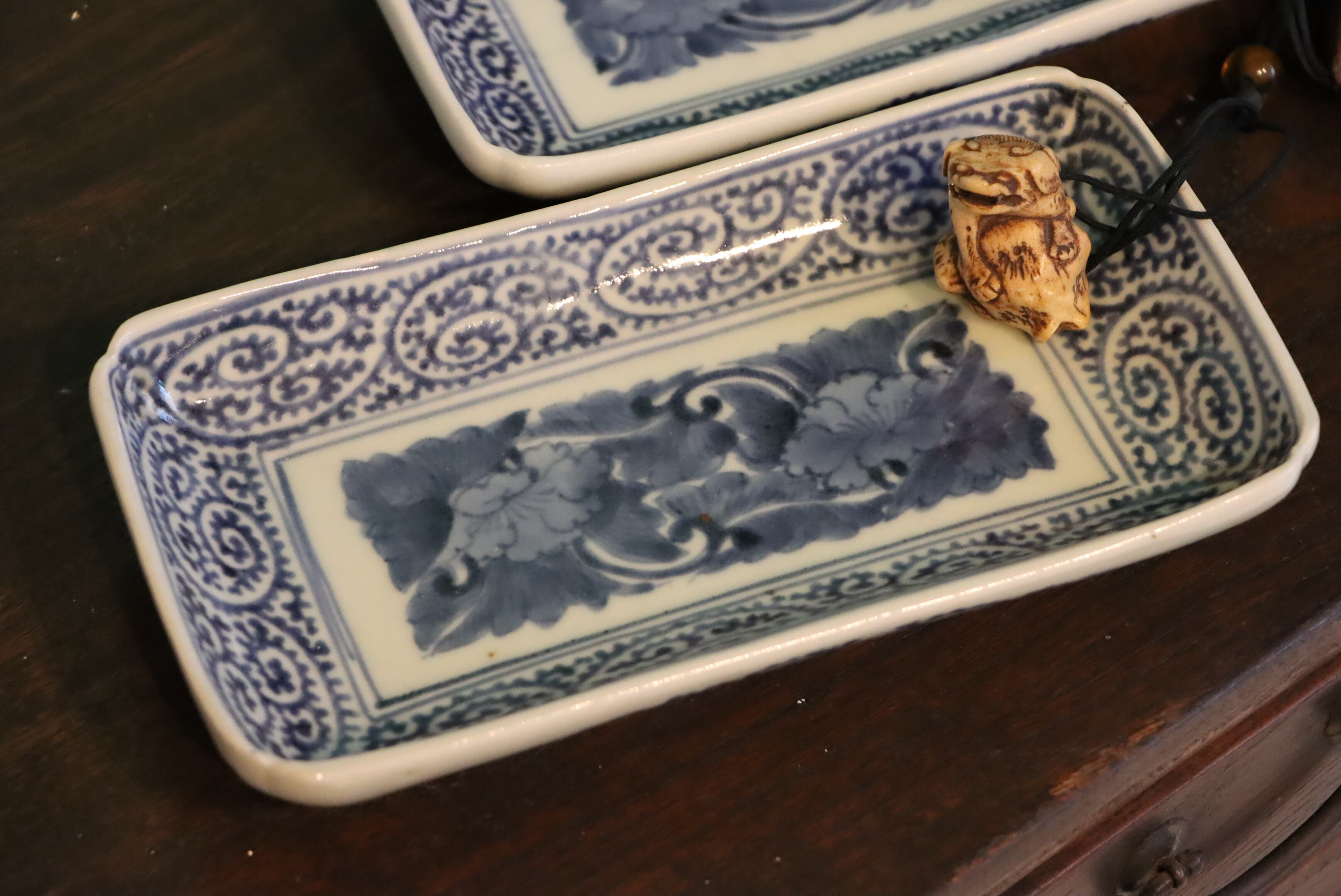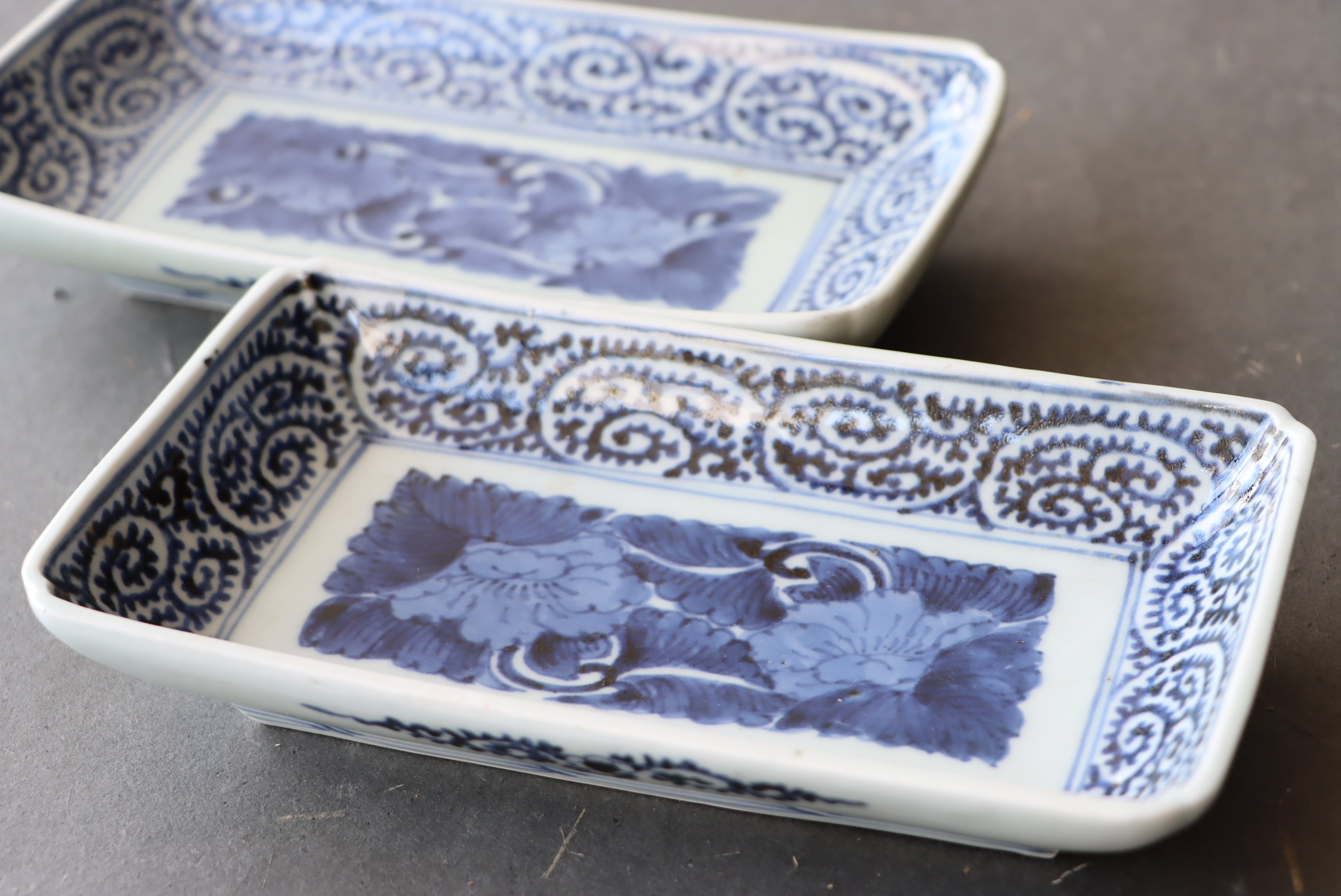 【Old Imari blue and white rectangular plate with arabesque design.】