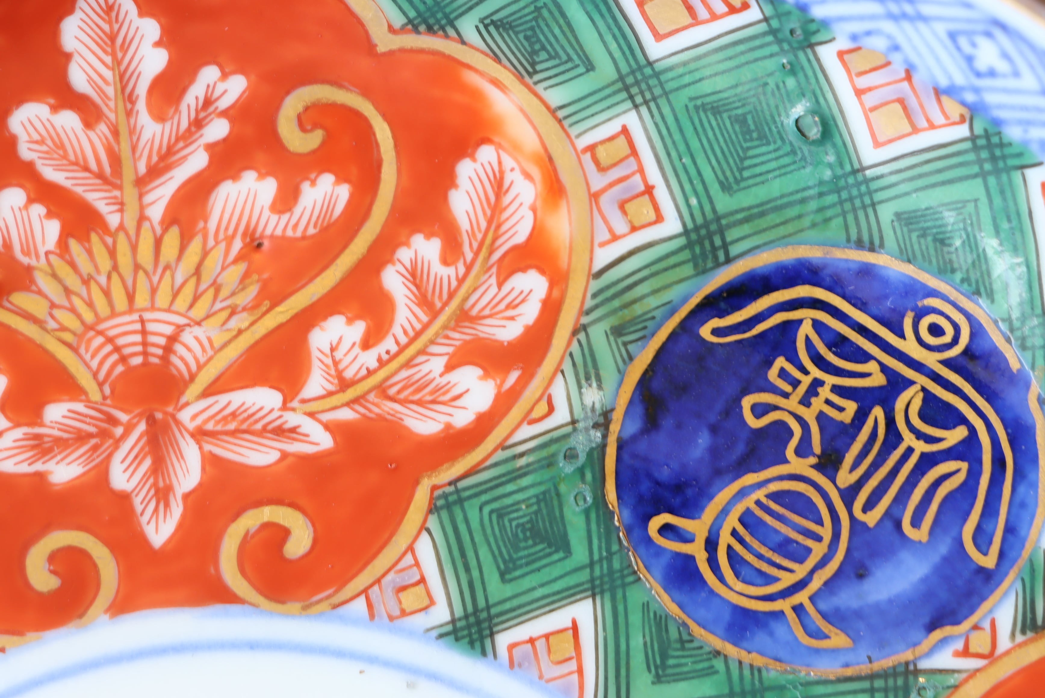 【Imari medium size plate with flower design and diamond pattern in overglaze enamels.】