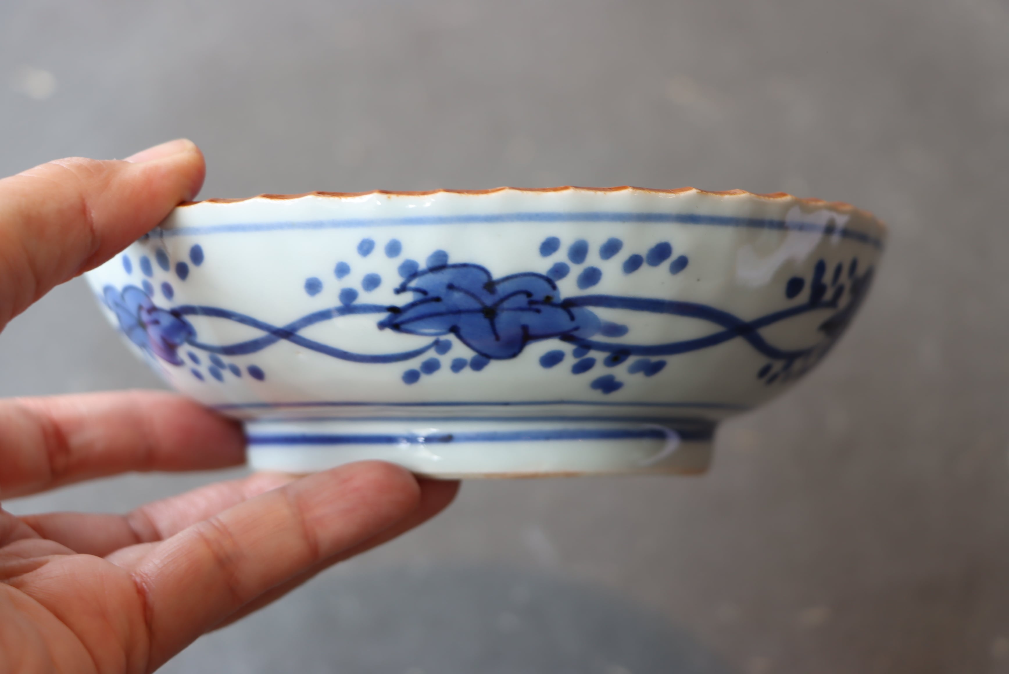 焼成時に窯の中でできる鉄分、くっつき、かまきず、経年による釉薬の薄れがございます。また、一枚一枚手描き、手作りです焼ので器のサイズ(ミリ)、色味、描かれている文様の大きさなど個体差があり、ひとつとして同じものはございません。そういった時代感、個性をご理解いただき、楽しんでくだされば幸いです。電子レンジや食器洗い乾燥機のご使用はお控えください。