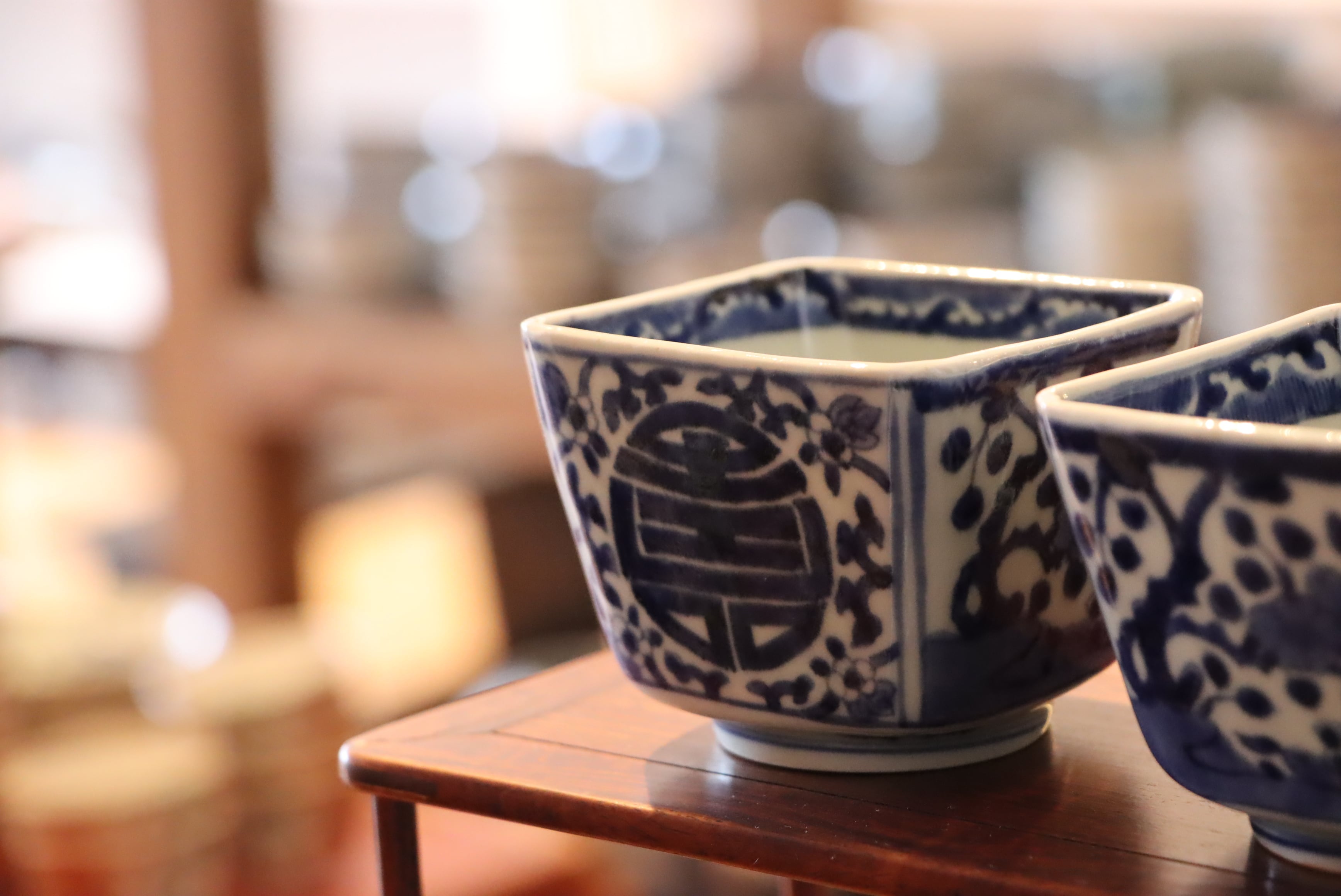 藍の濃淡が映える、古伊万里の角向付。