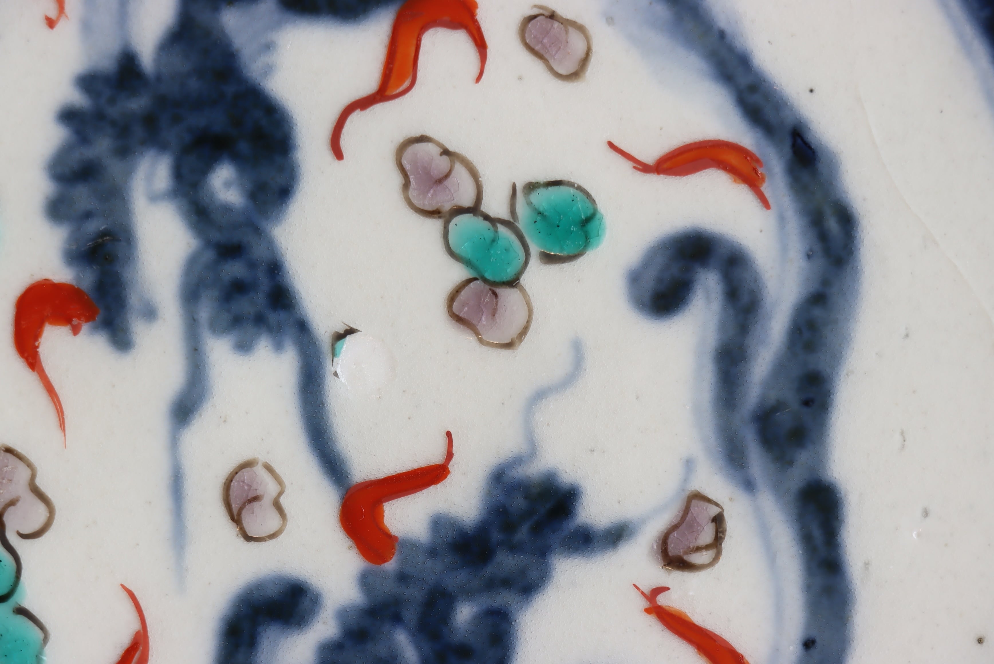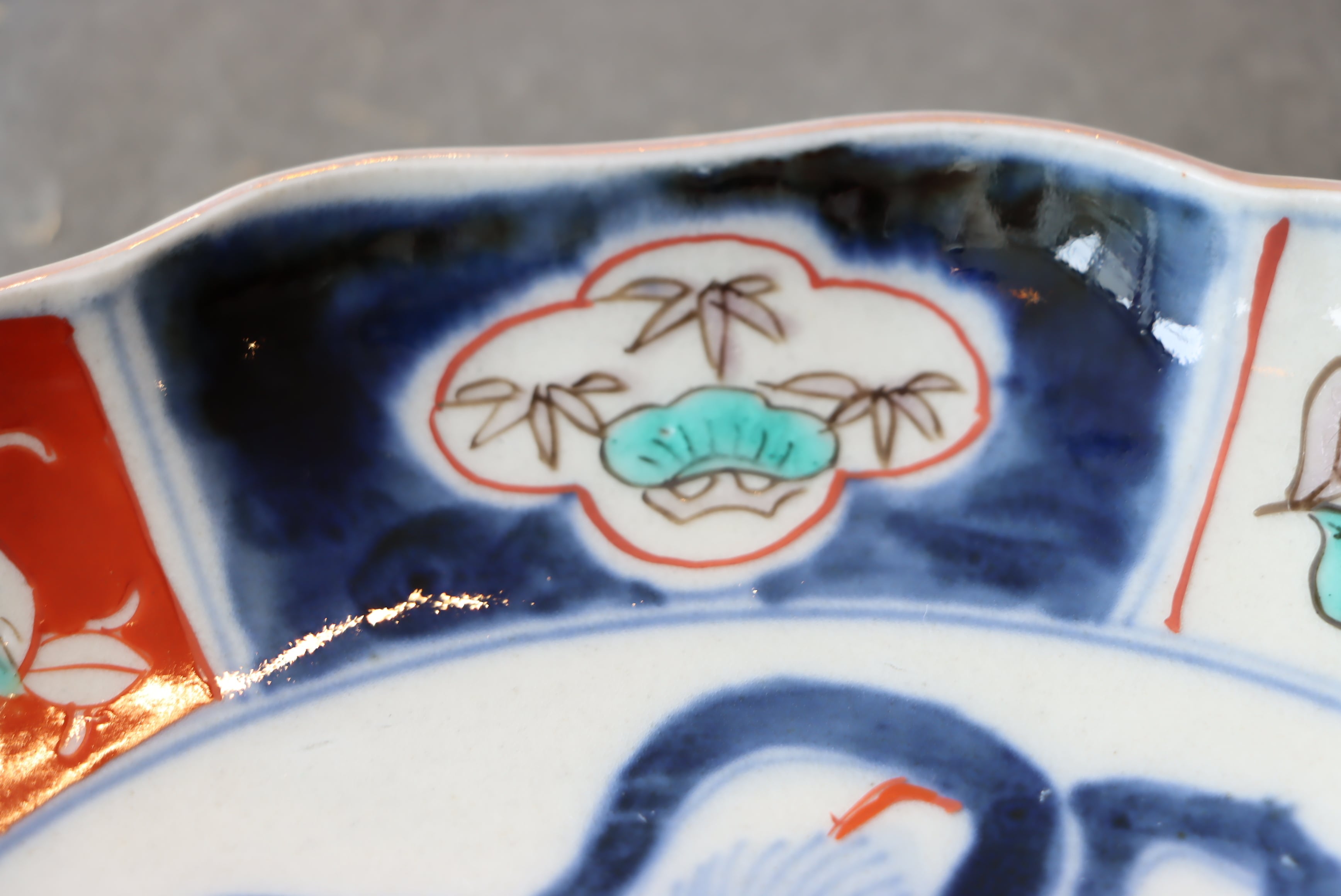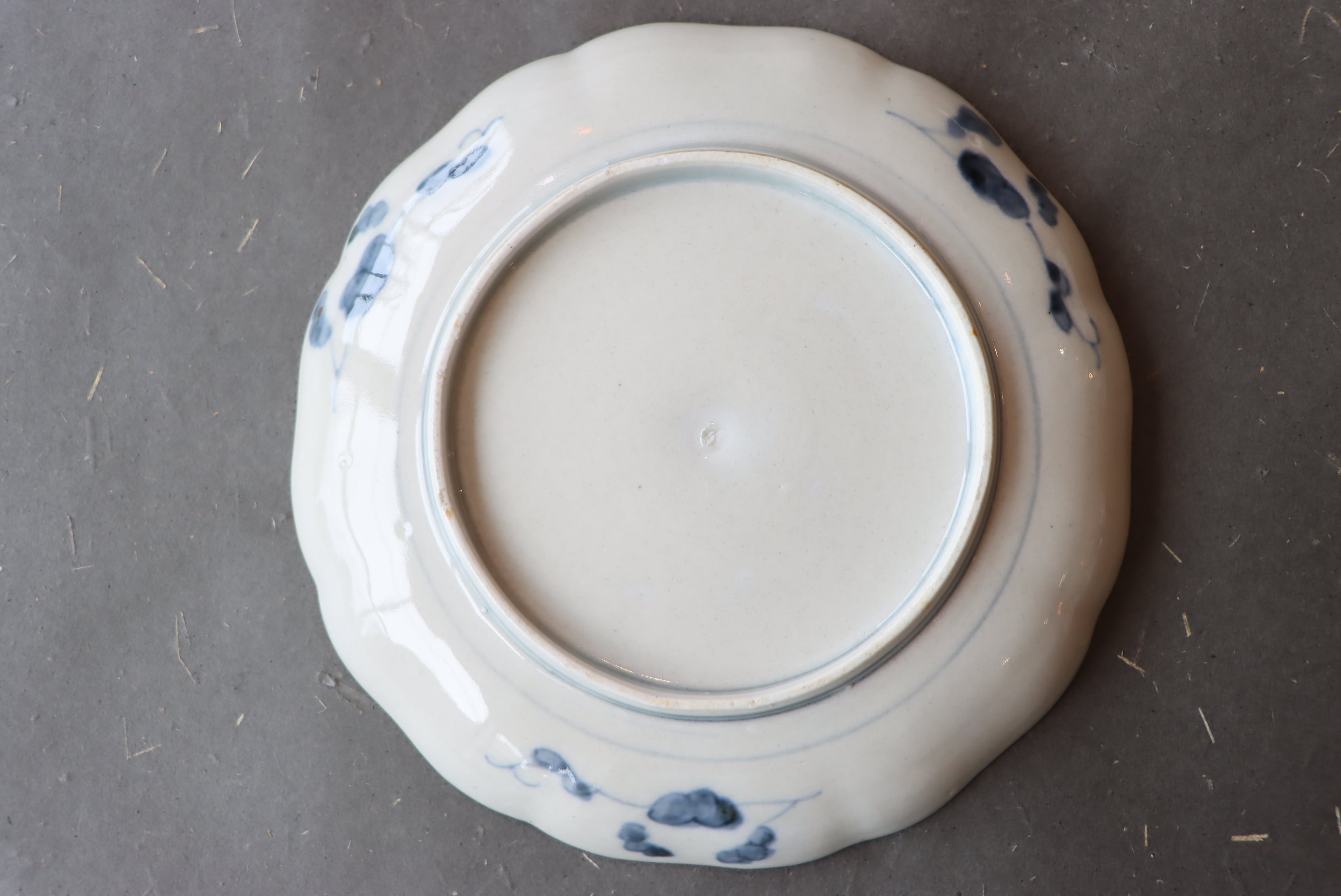 柔らかな輪花の縁が、迫力ある絵付けに優雅さを添え、