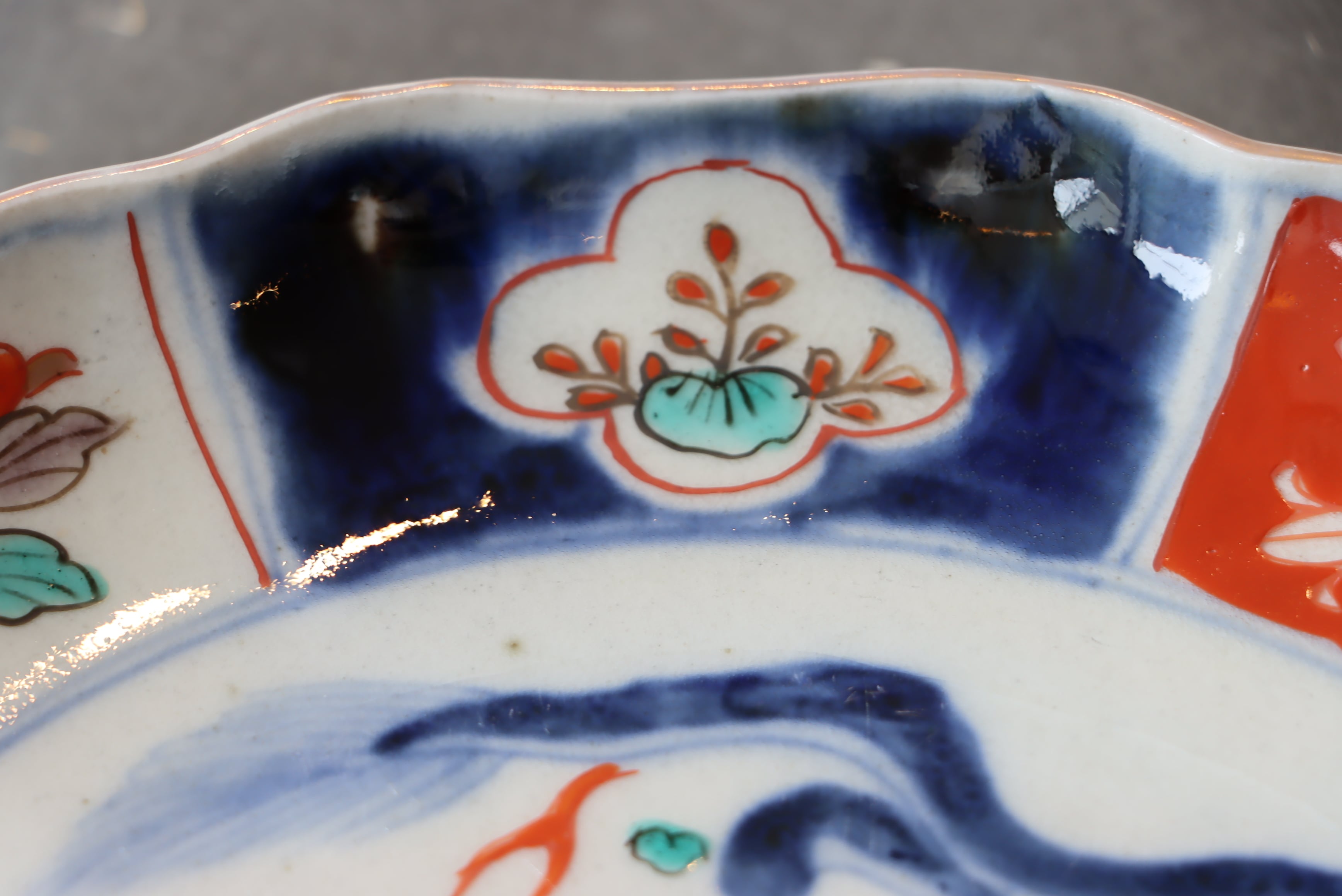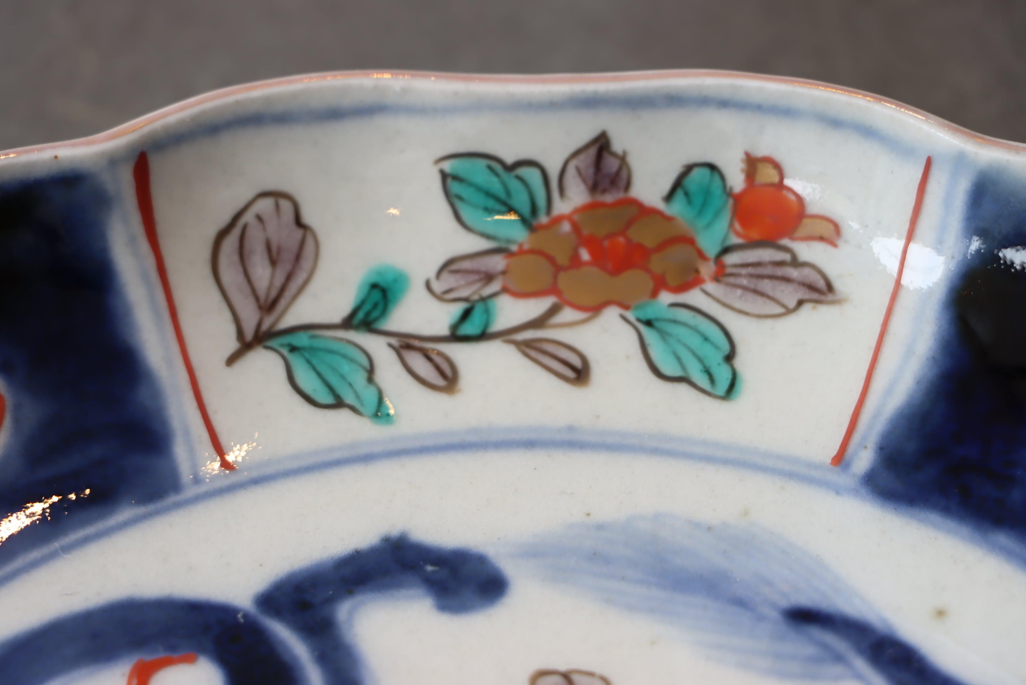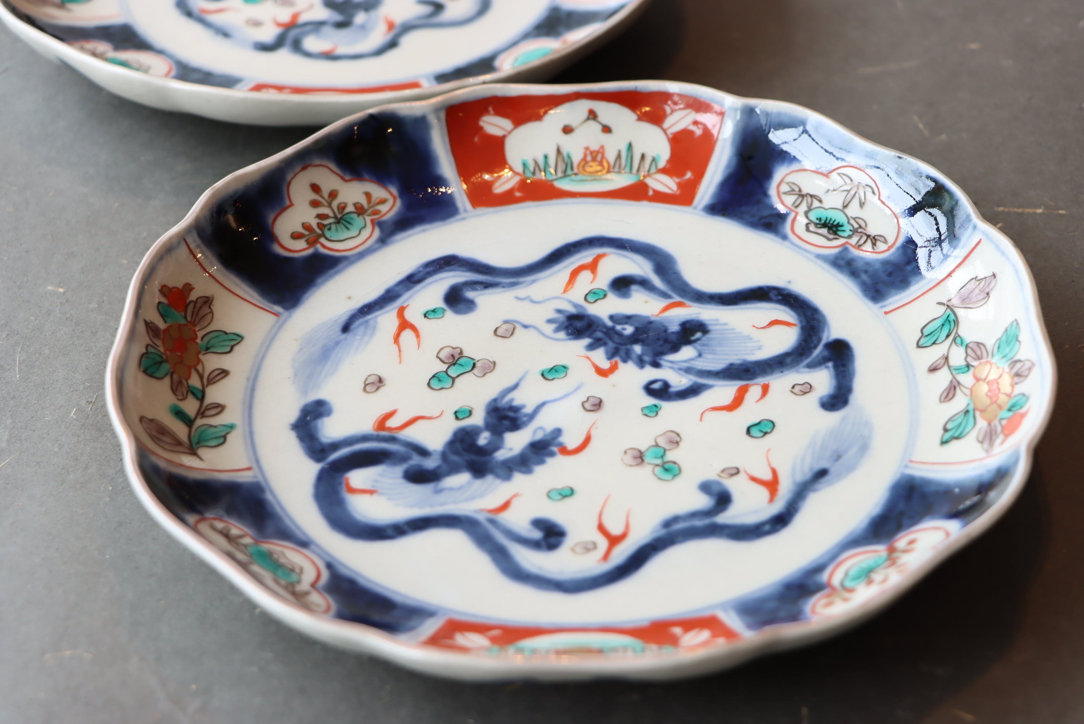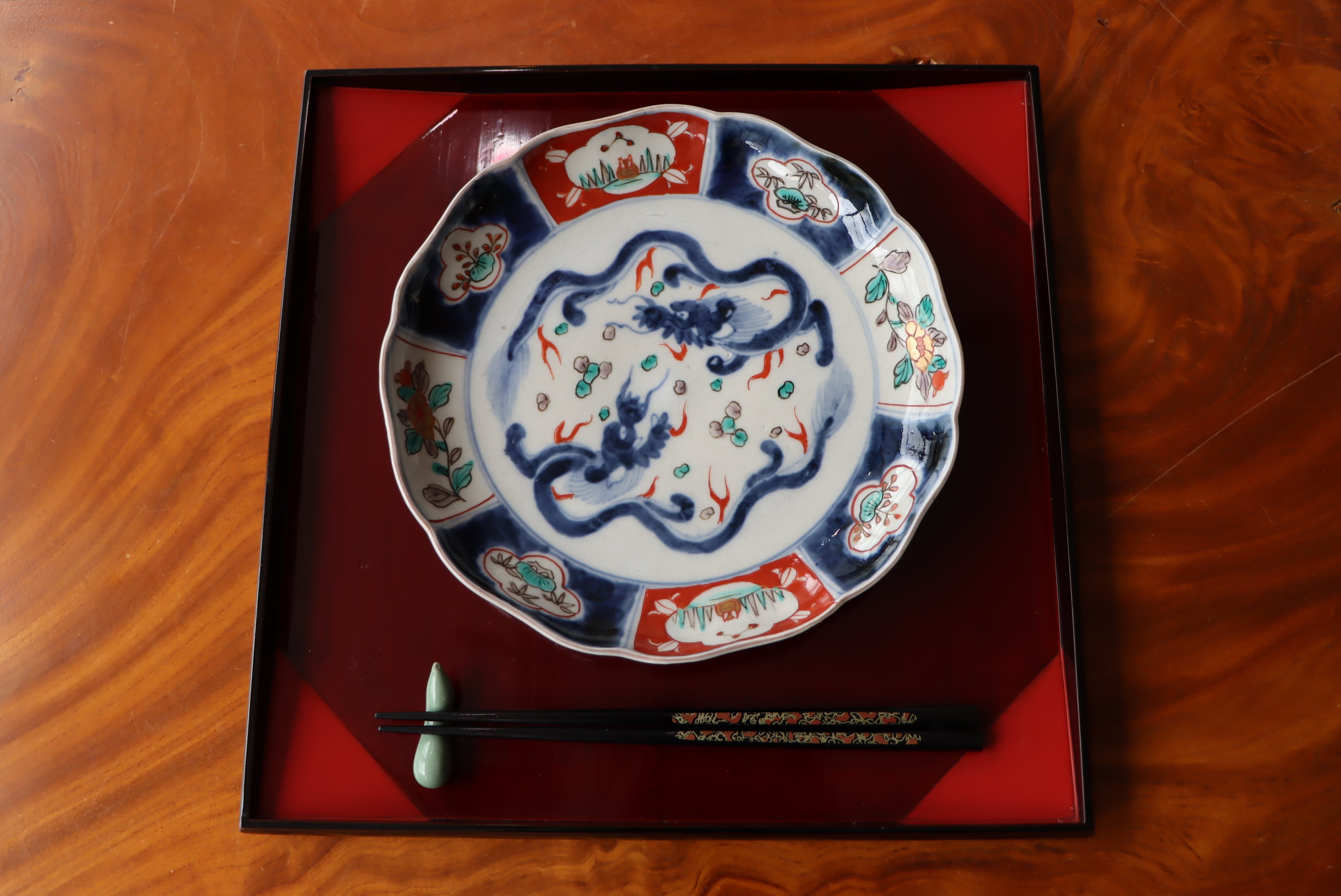 伊万里焼 色絵 双龍文 輪花 中皿 七寸/Imari medium size plate