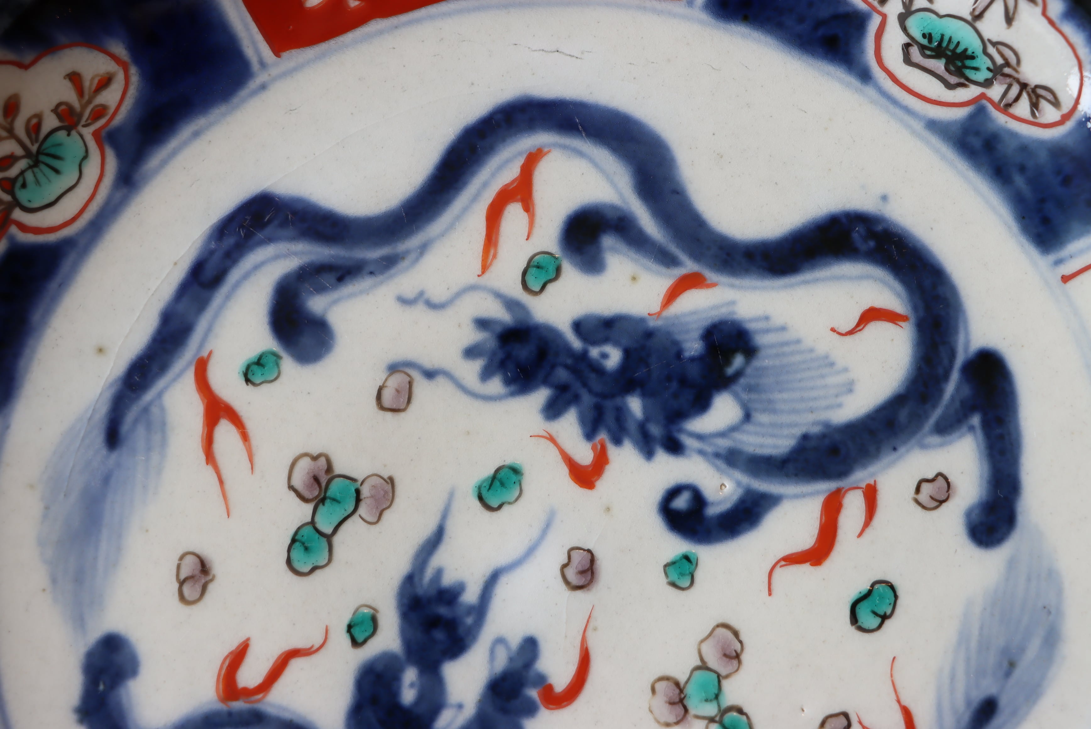 【Imari medium size plate with twin dragons design in overglaze enamels.】