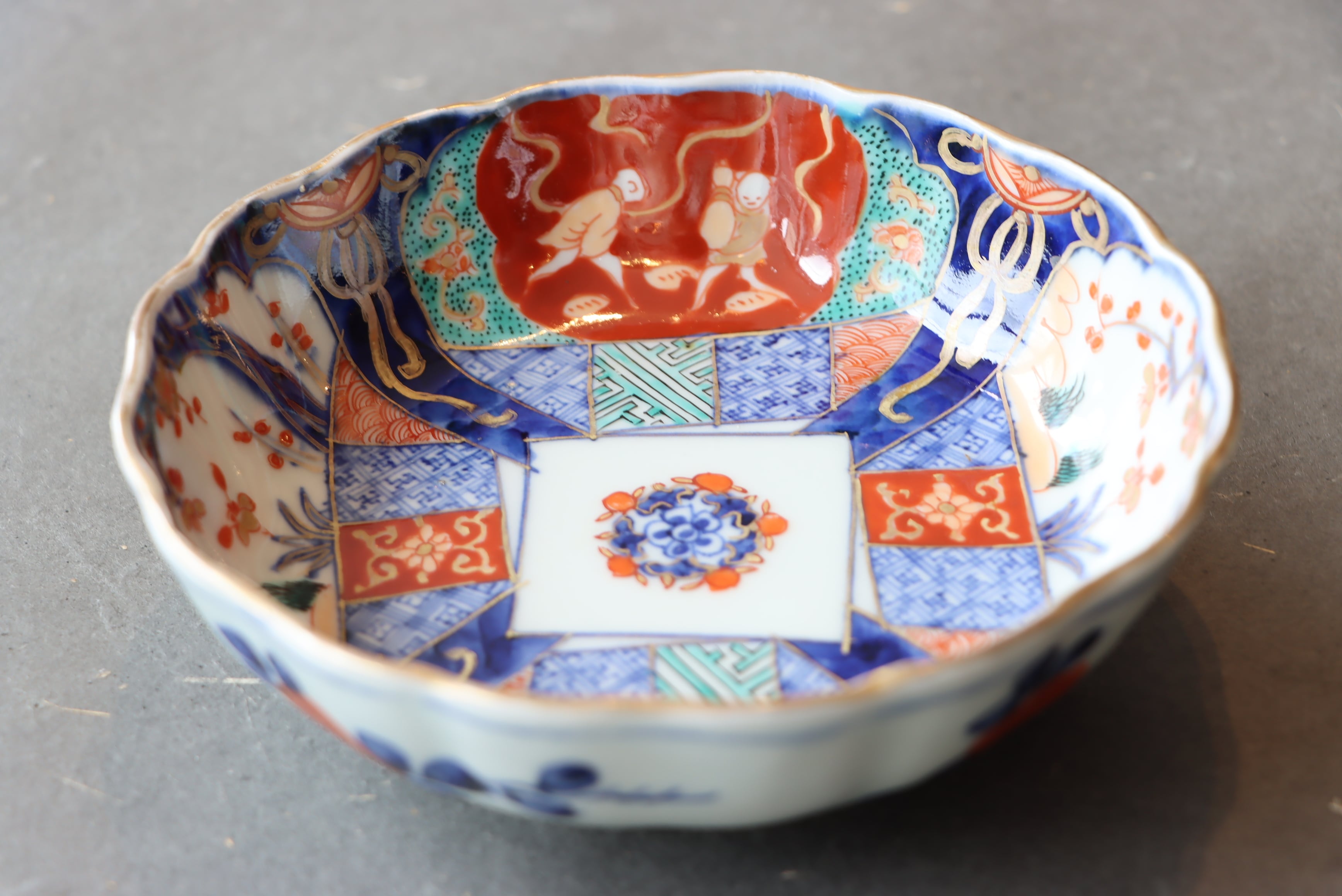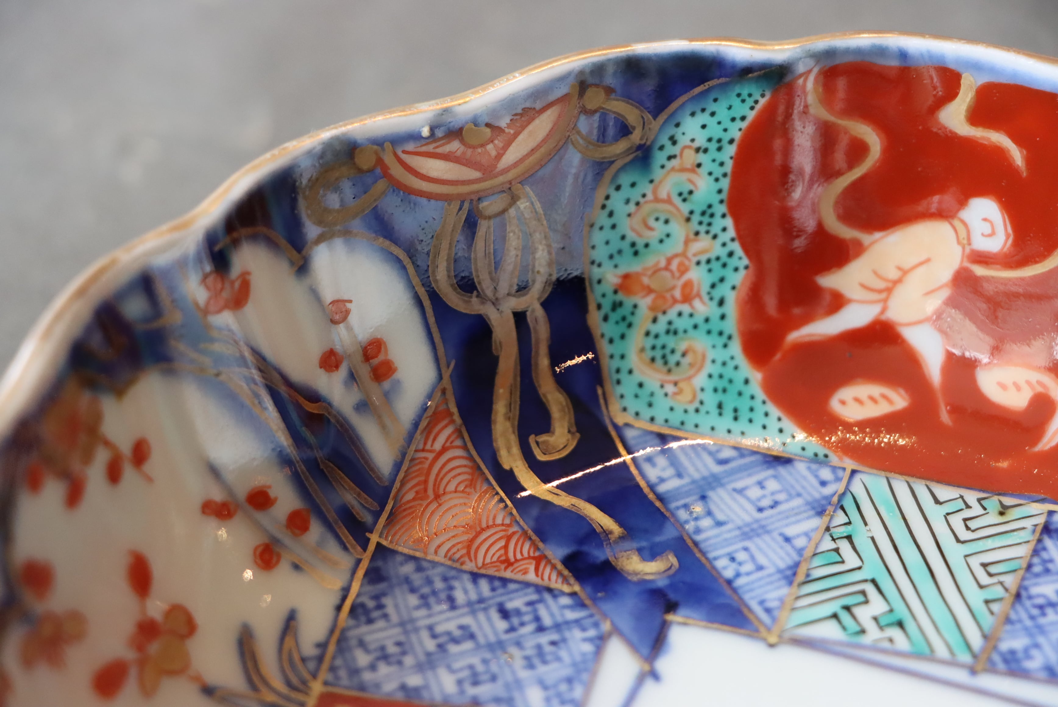 伊万里焼 色絵 人物花文 輪花 膾皿/Imari "Namasu" bowl