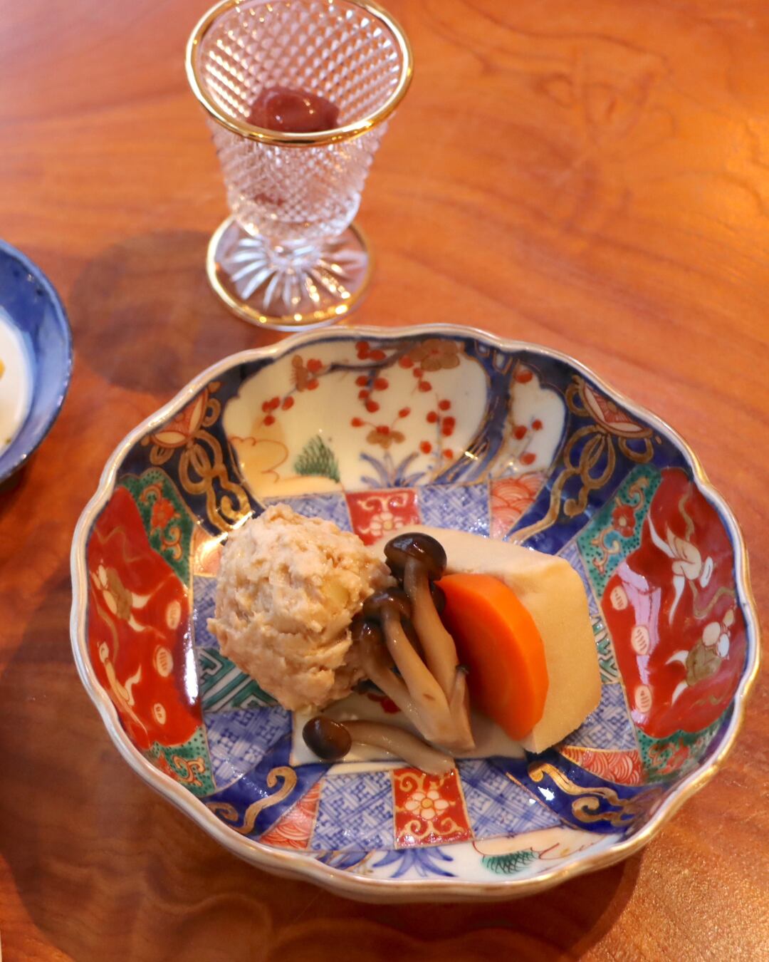 【Imari "Namasu" bowl with figure and flower design in overglaze enamels.】