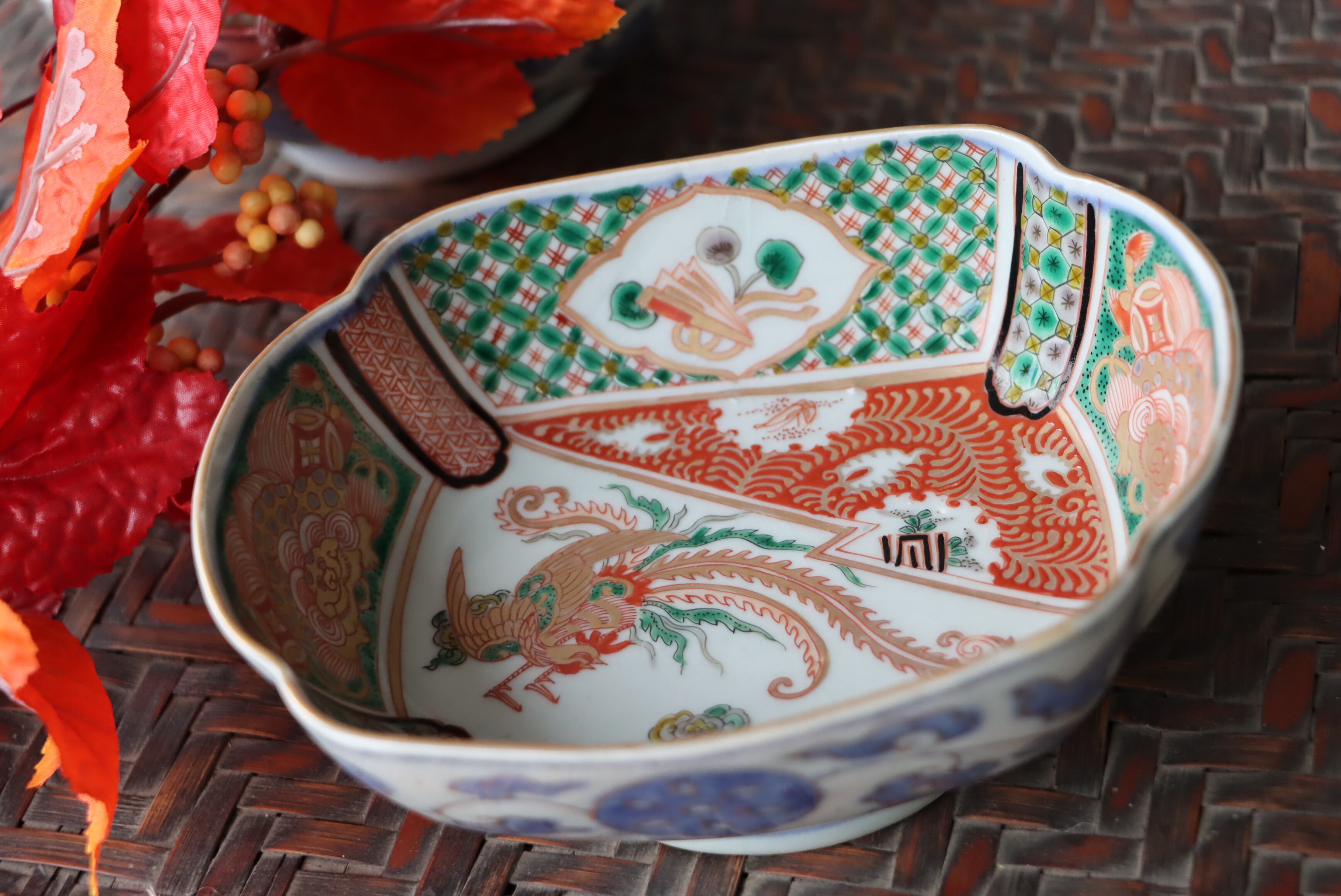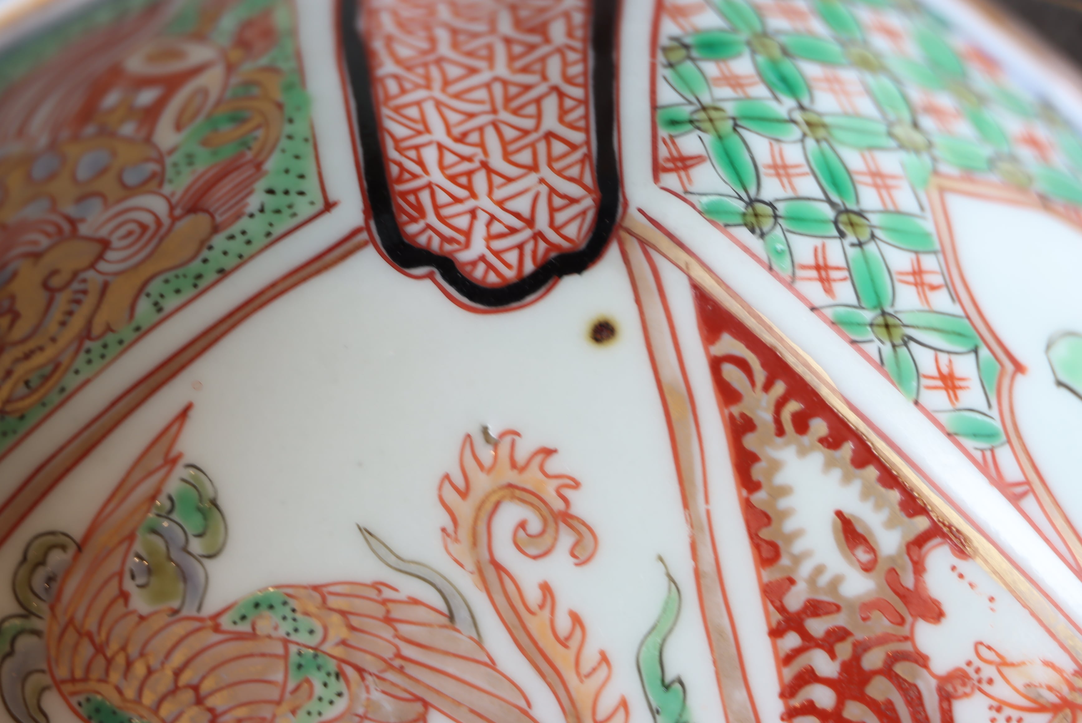 【Imari "Mukouzuke" bowl with phoenix and lion design in overglaze enamels.】