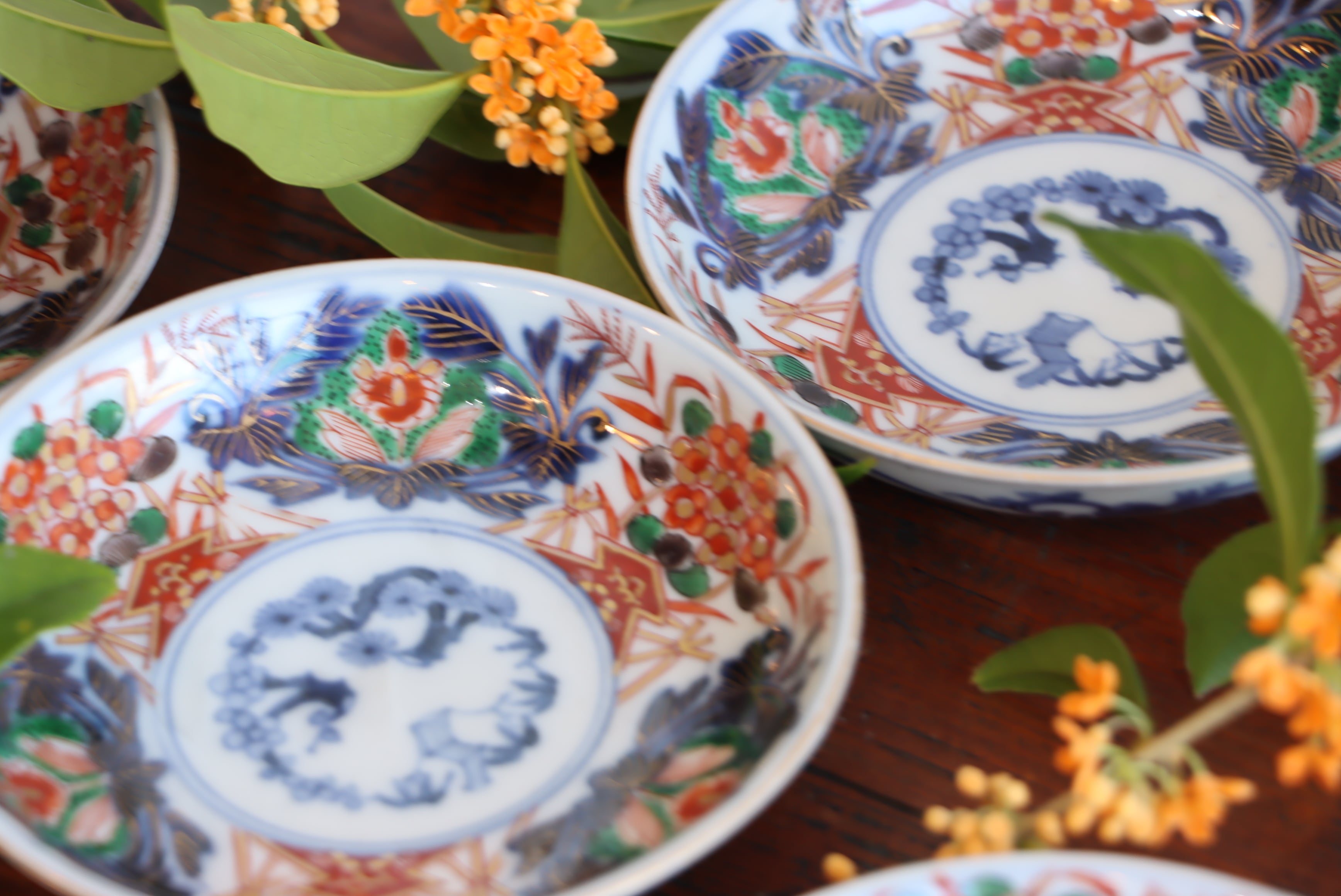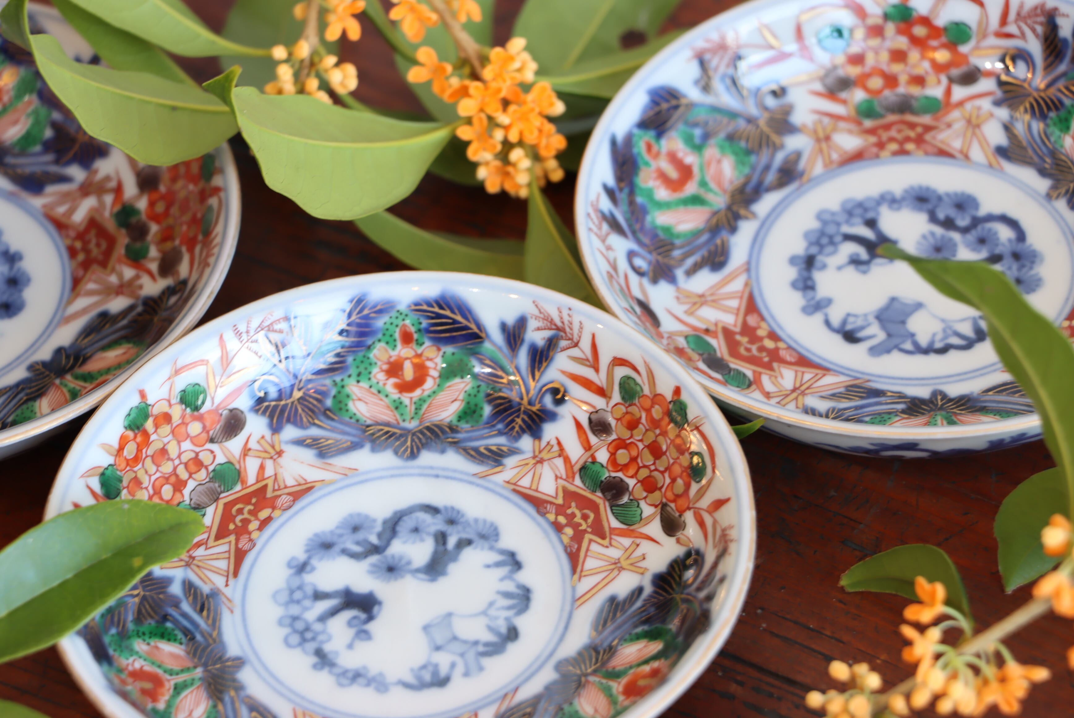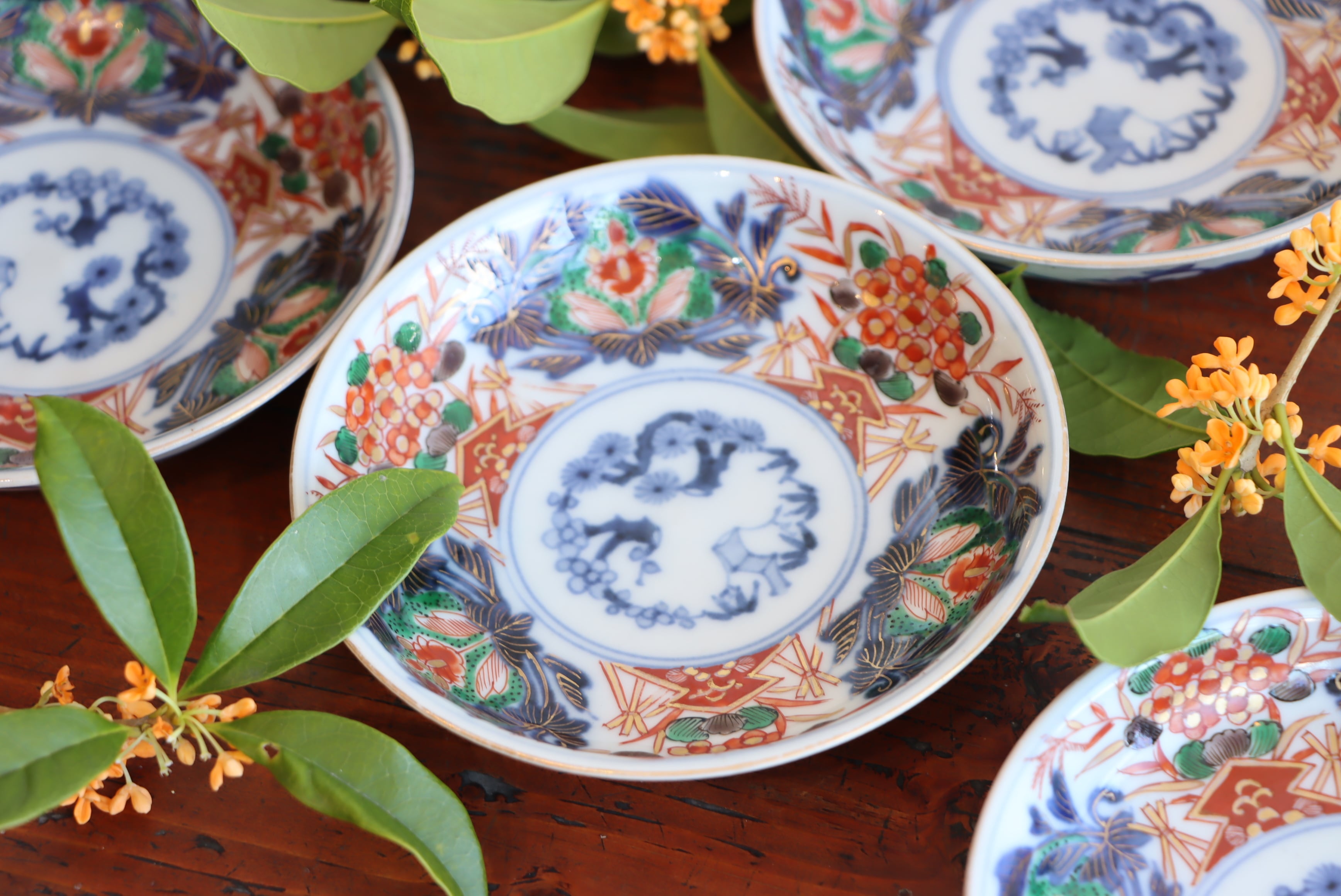【Daisyo-ji Imari small plate with flower design in overglaze enamels.】