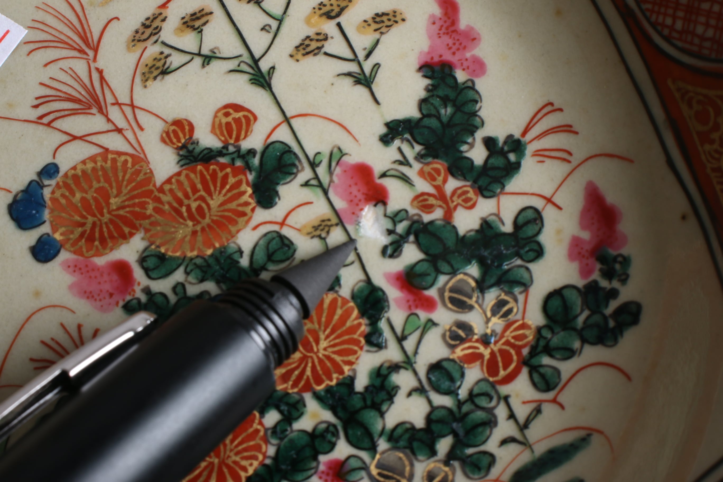 焼成時に窯の中でできる鉄分、くっつき、かまきず、ピンホール、経年による釉薬の薄れがございます。また、一枚一枚手描き、手作りですので器のサイズ(ミリ)、色味、描かれている文様の大きさなど個体差があり、ひとつとして同じものはございません。そういった時代感、個性をご理解いただき、楽しんでくだされば幸いです。電子レンジや食器洗い乾燥機のご使用はお控えください。