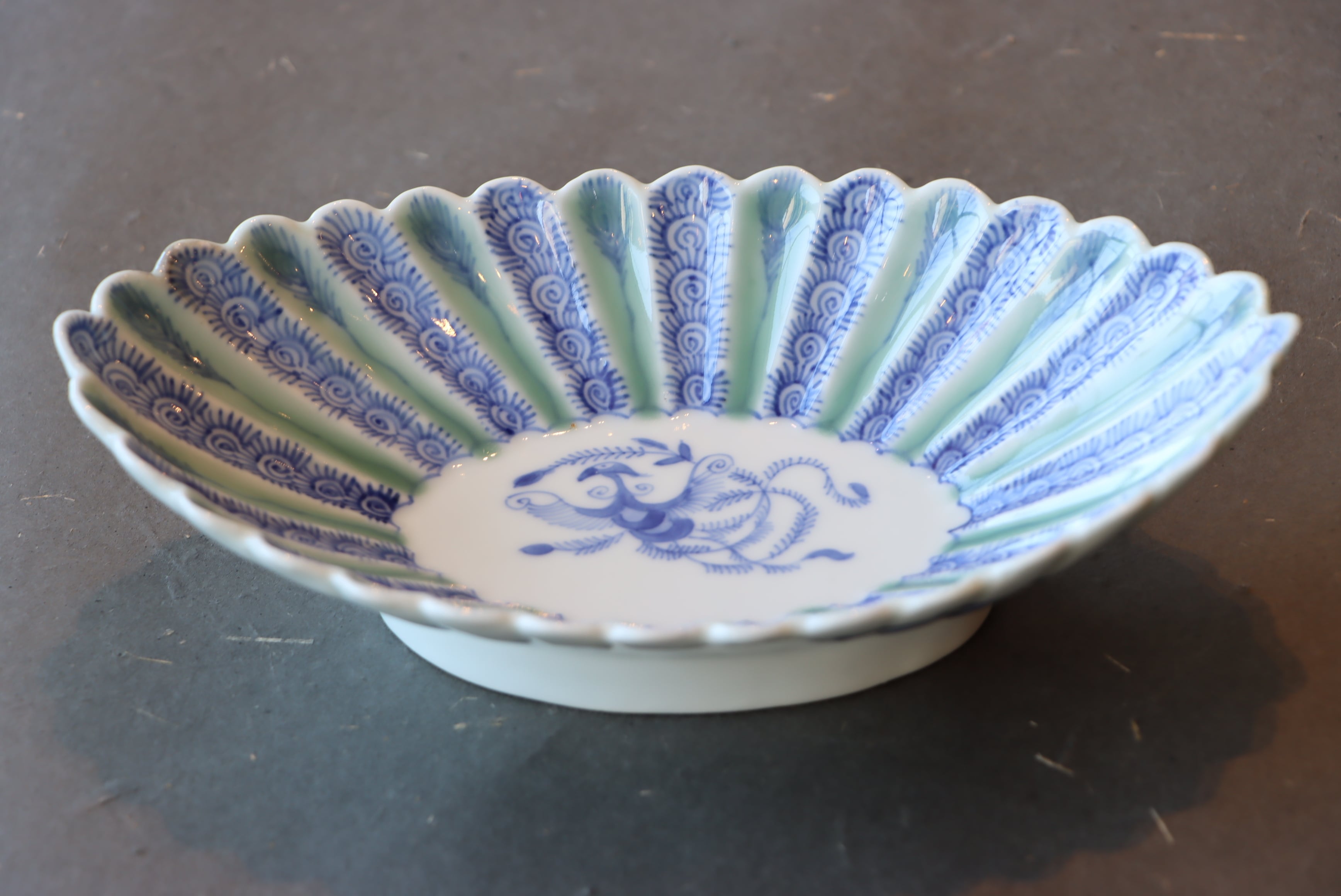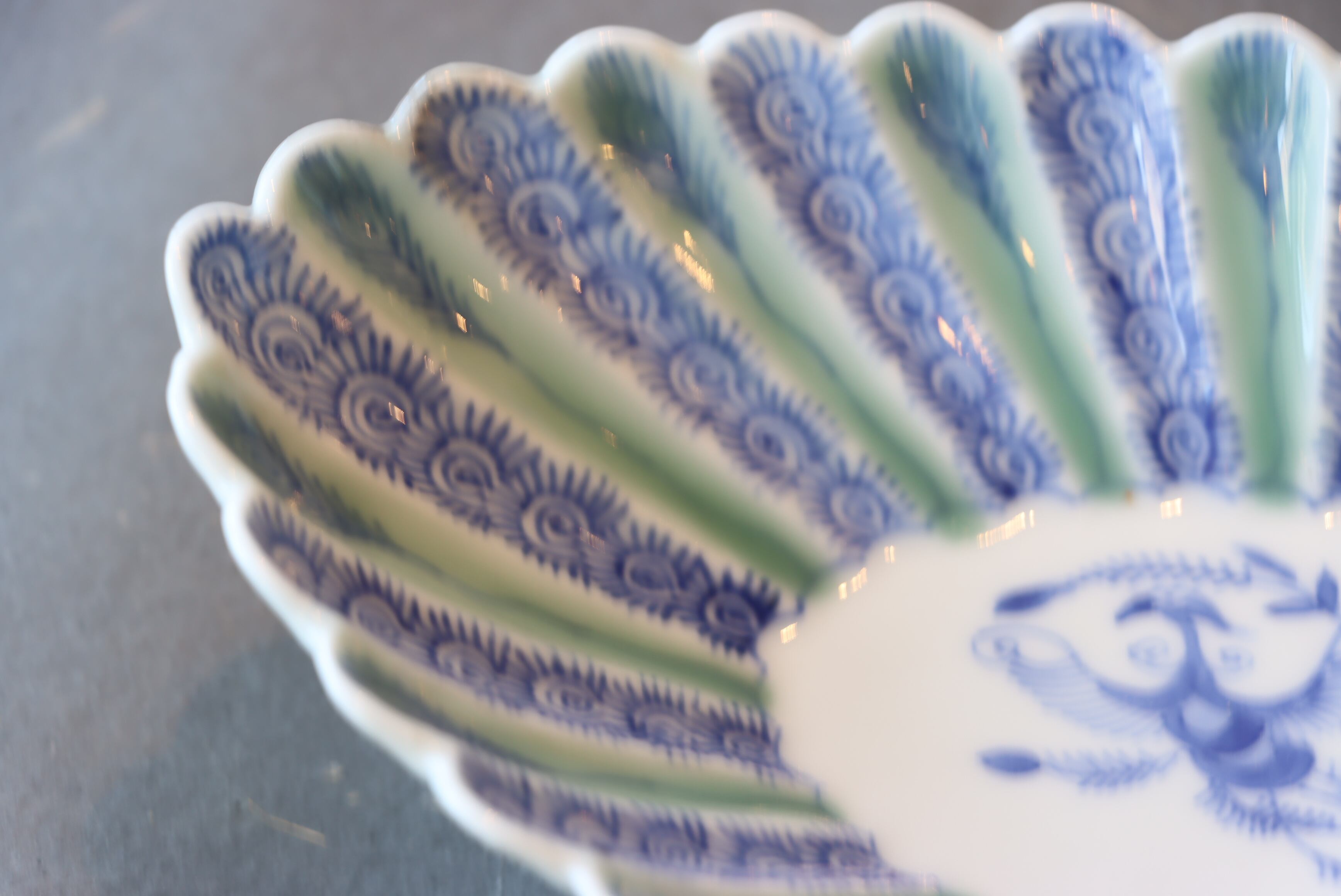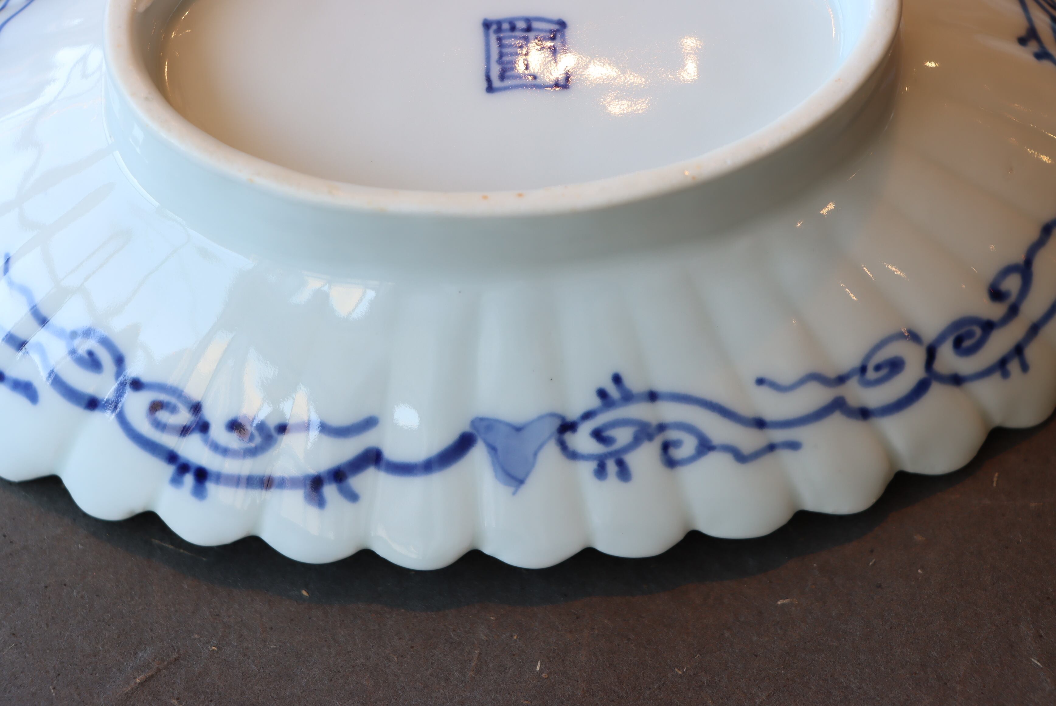 【Imari chrysanthemum shaped plate with phoenix design in overglaze enamels.】