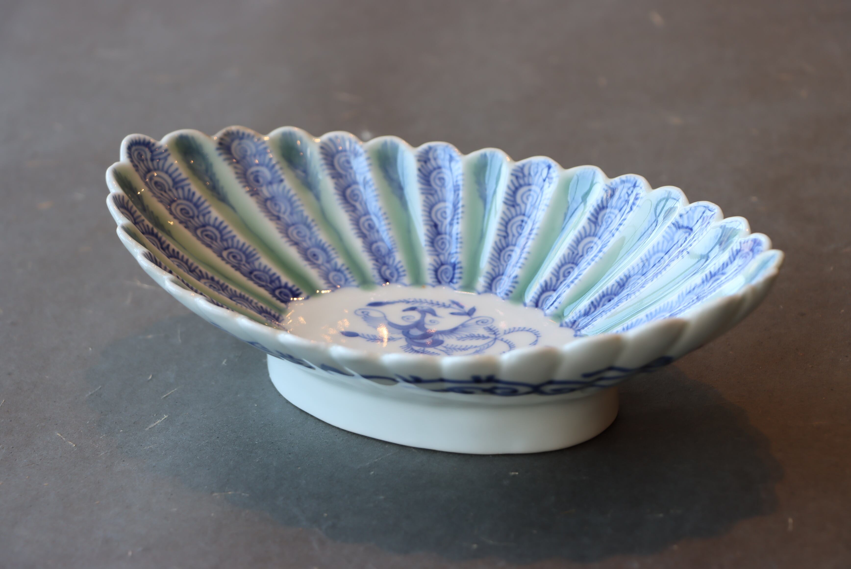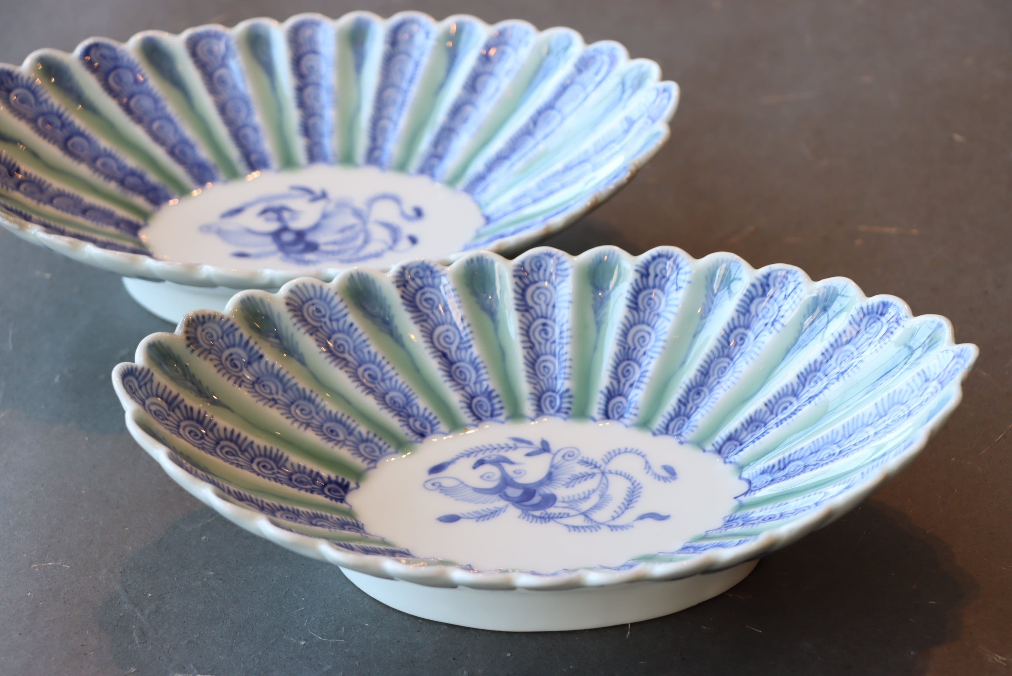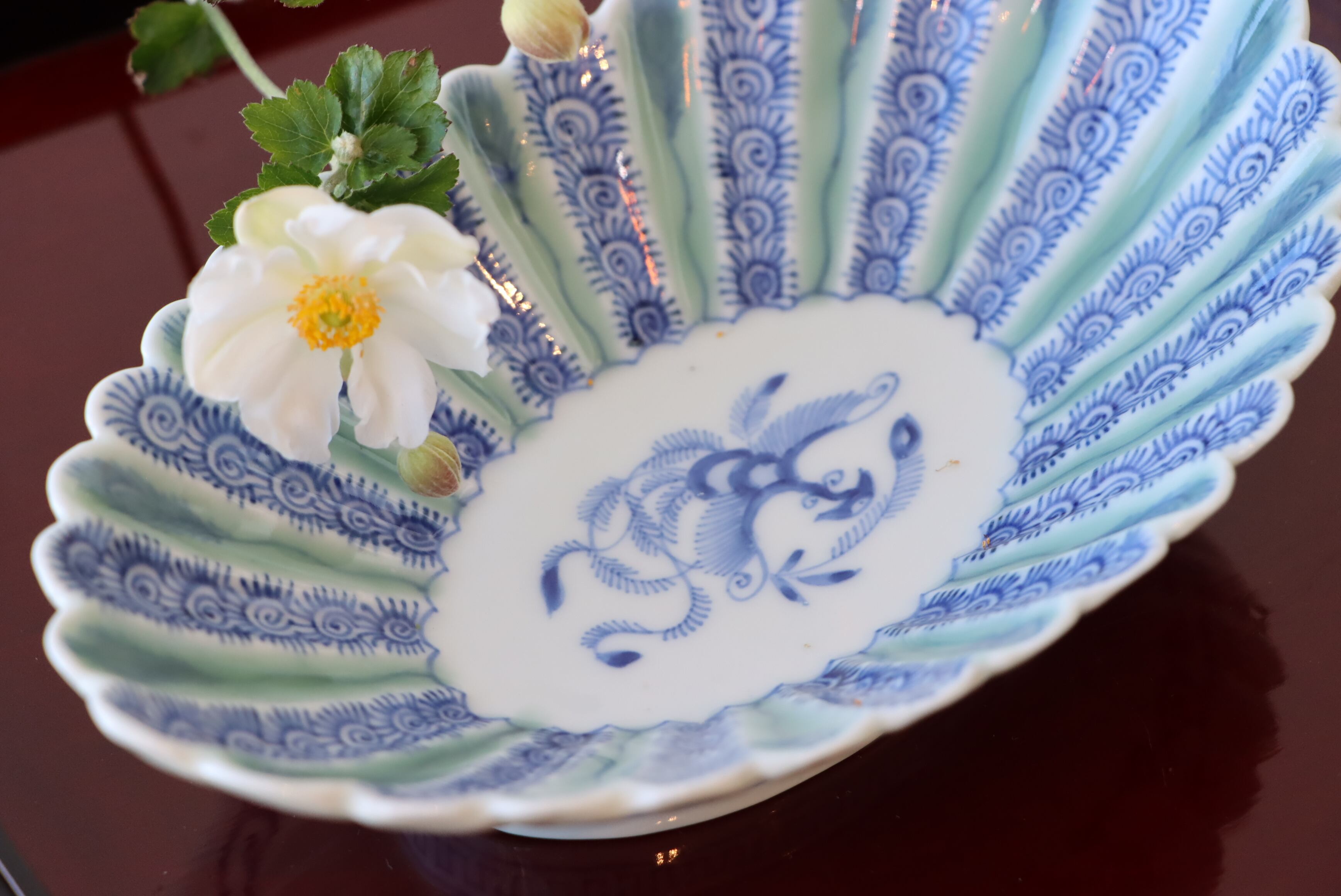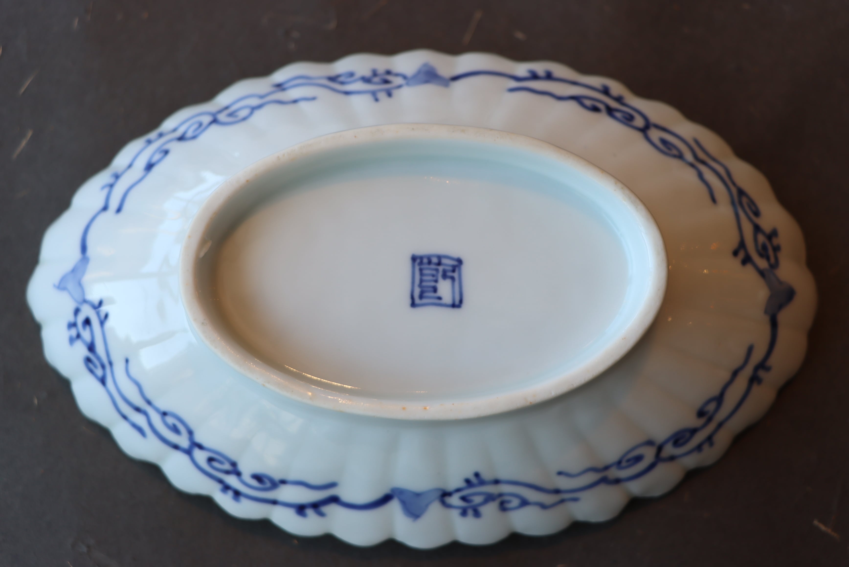 【Imari chrysanthemum shaped plate with phoenix design in overglaze enamels.】