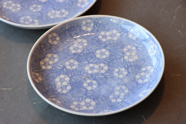 染付 印判手 花文 中皿 五寸/Blue and white medium size plate