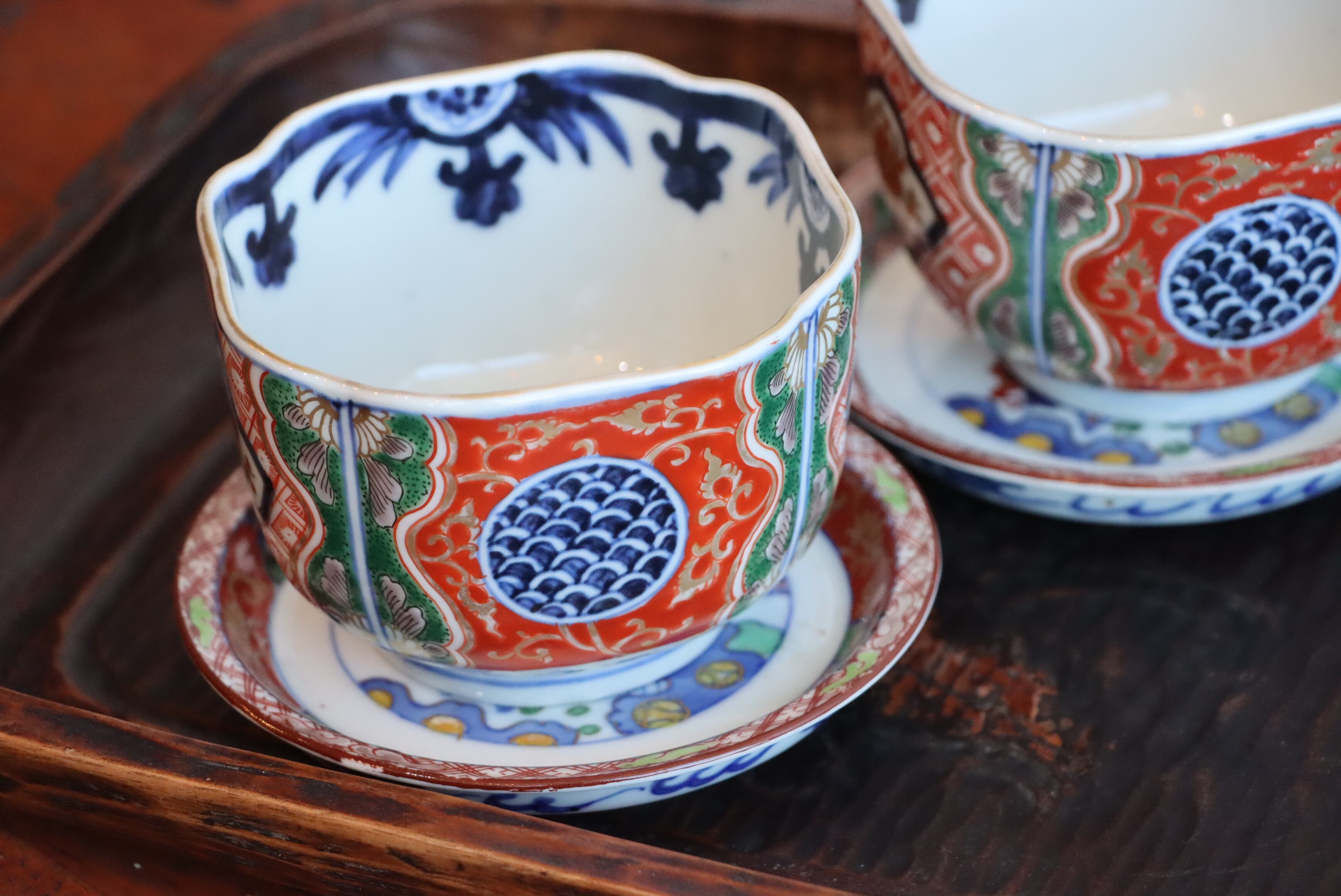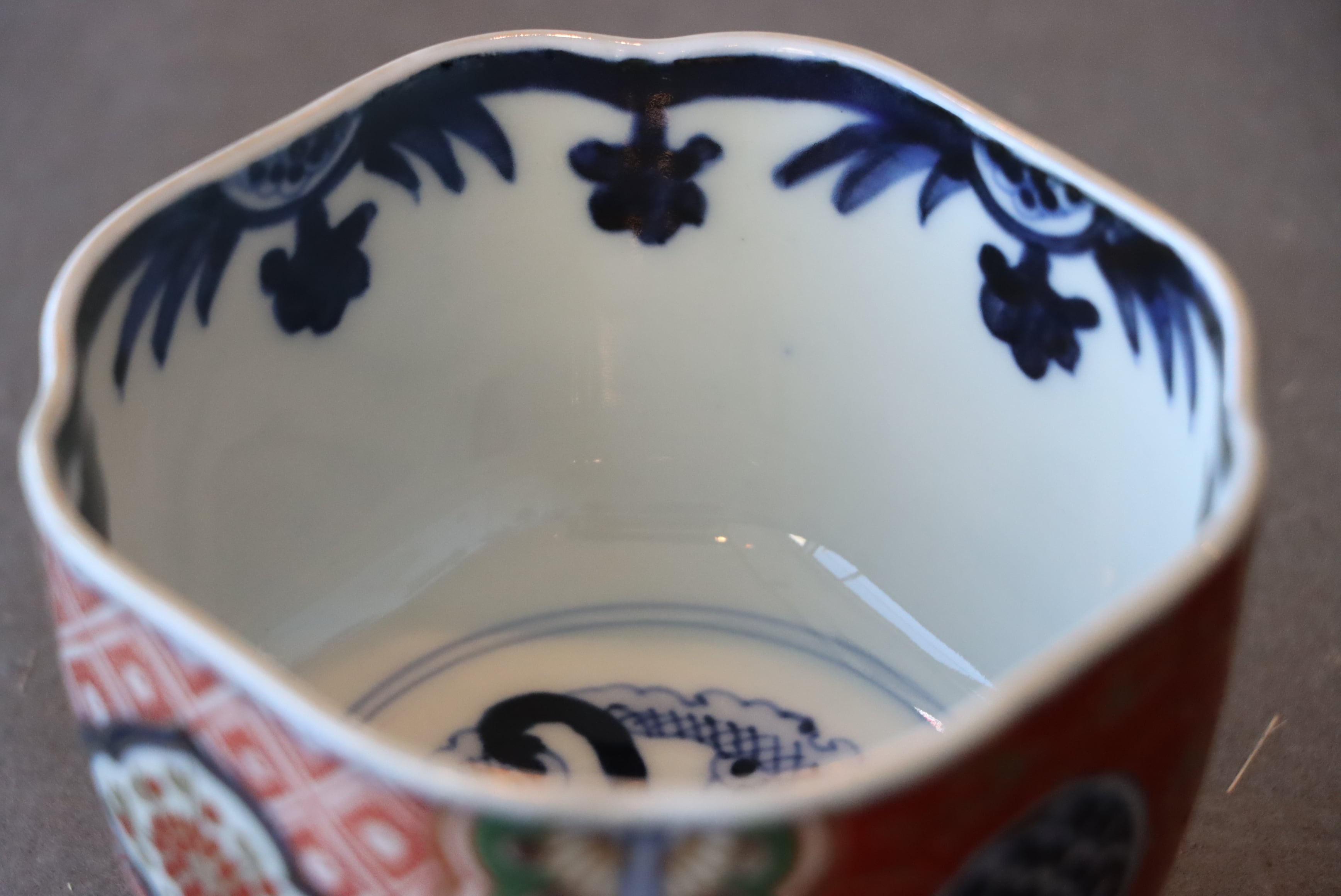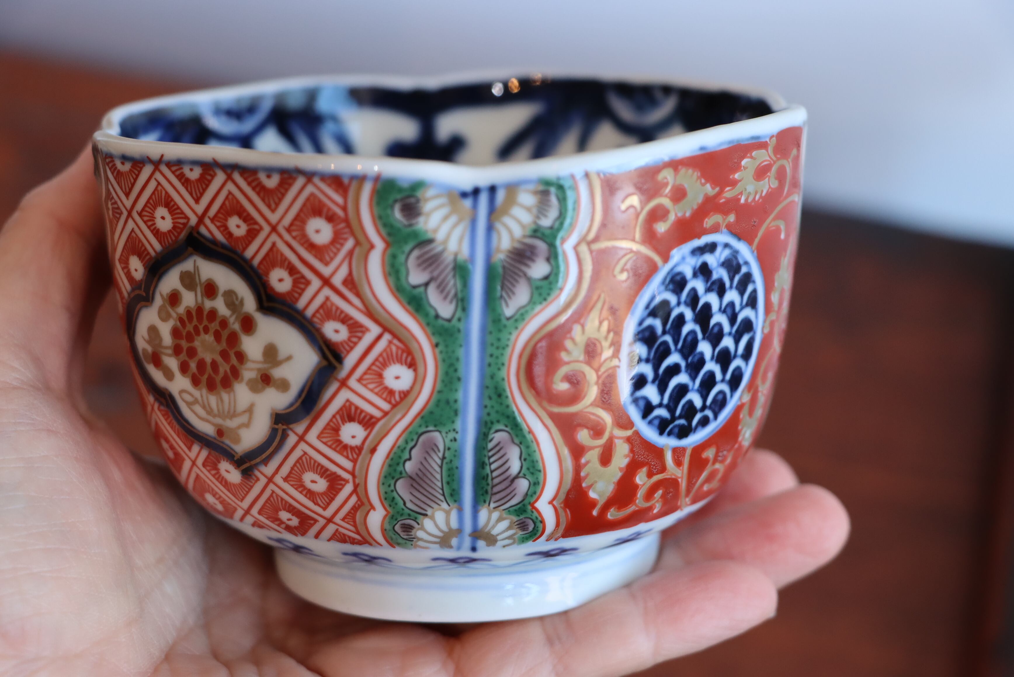 大聖寺伊万里 色絵 花丸文 角向付/Daisyo-ji Imari "Mukouzuke" cup